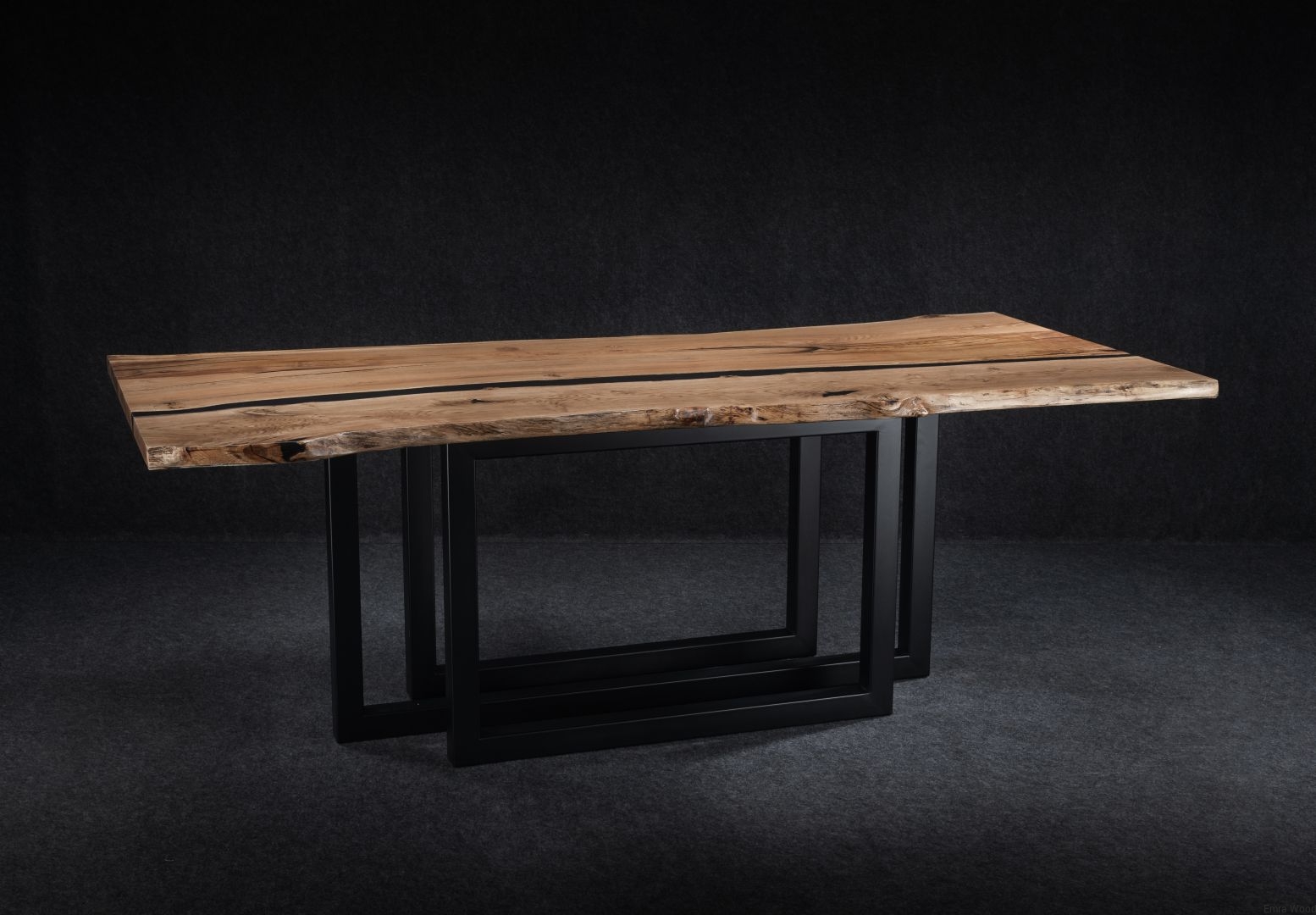 DREWNIANY STÓŁ INDUSTRIALNY / Stelaż Stal Czarna Malowana Proszkowo / Model ST-62 produkowany w rozmiarach od 140 cm do 290 cm
