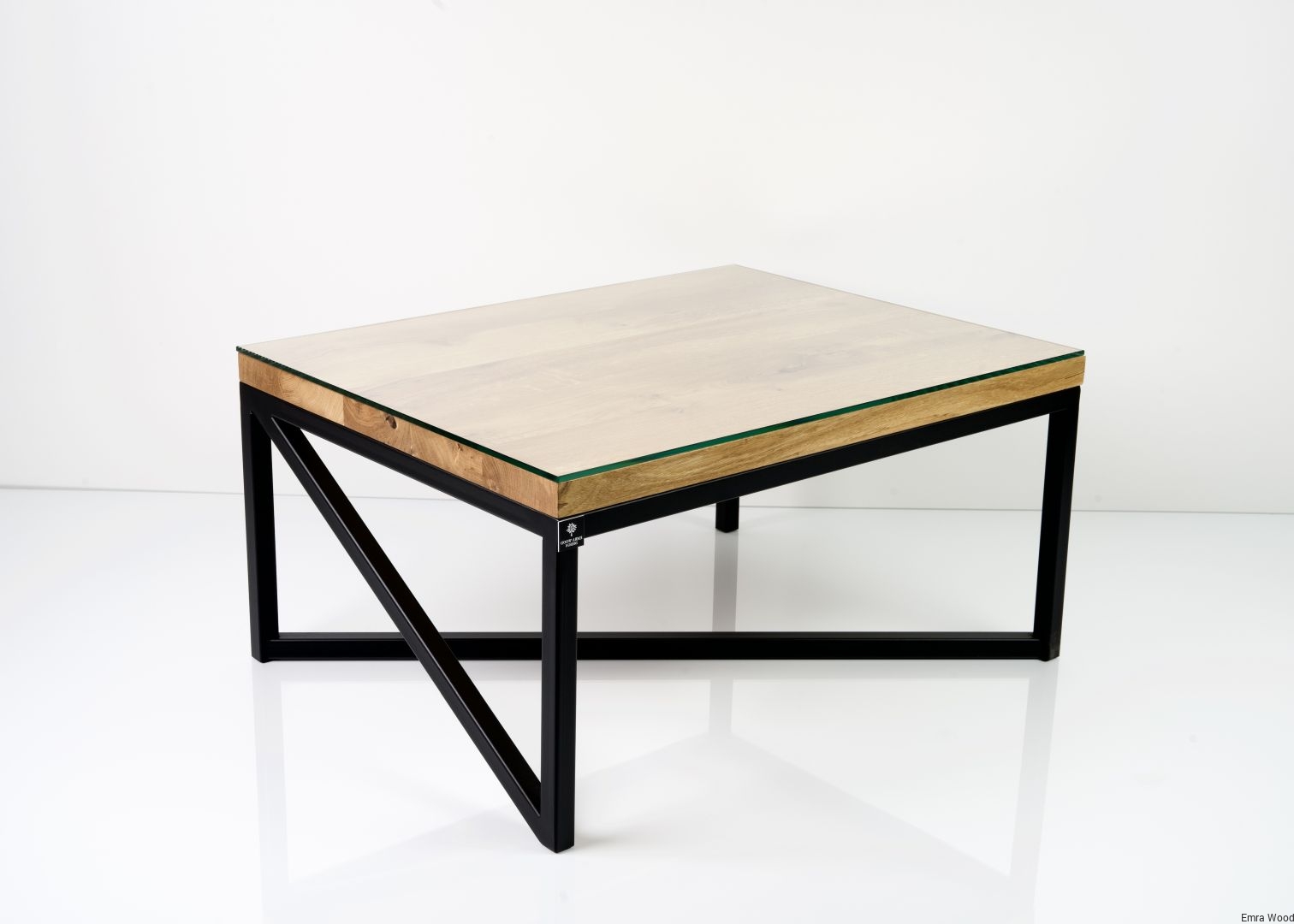 STOLIK KAWOWY / Stelaż Stal Czarna Malowana Proszkowo / Blat Lite Drewno DĄB z Szybą model STK-101