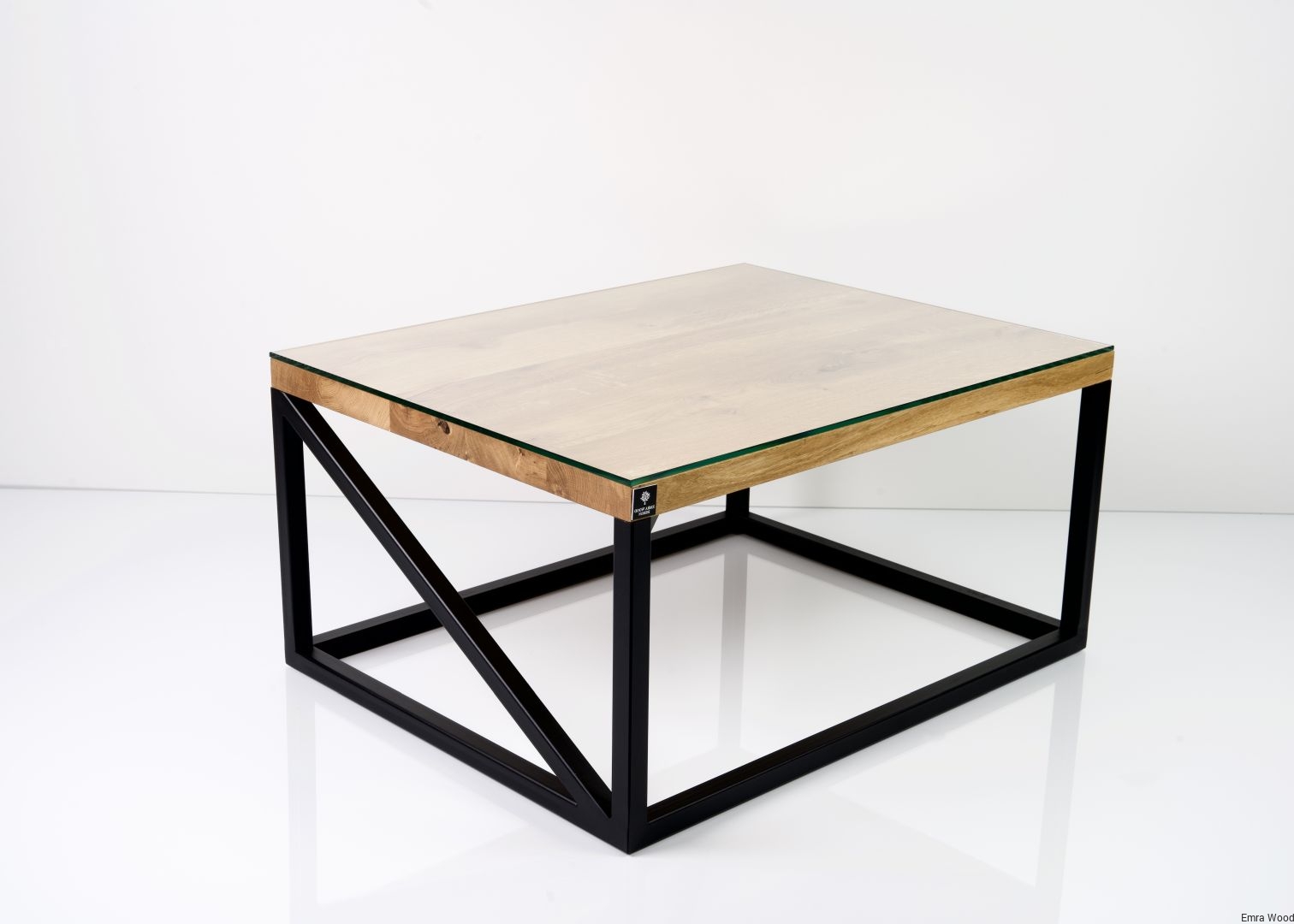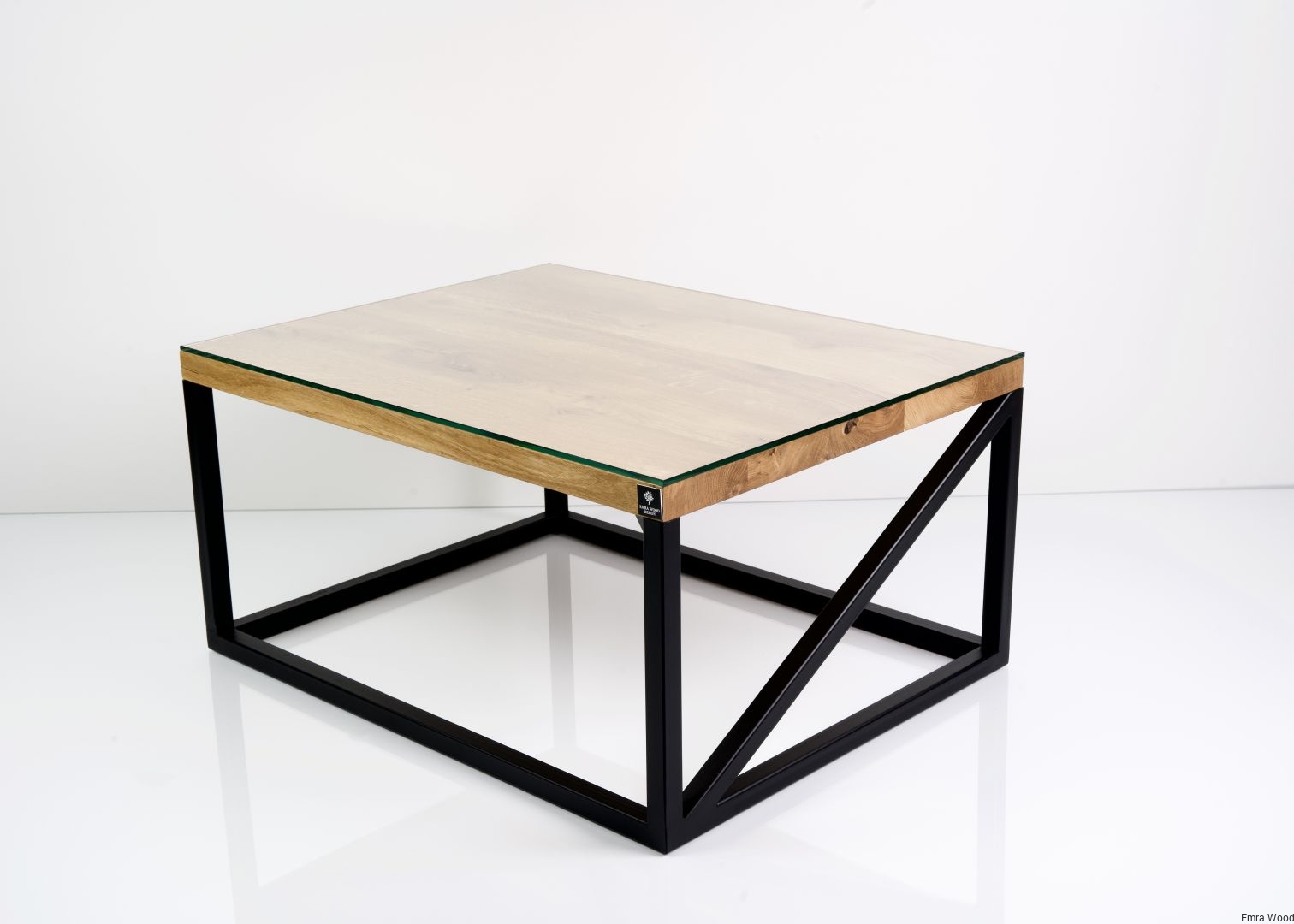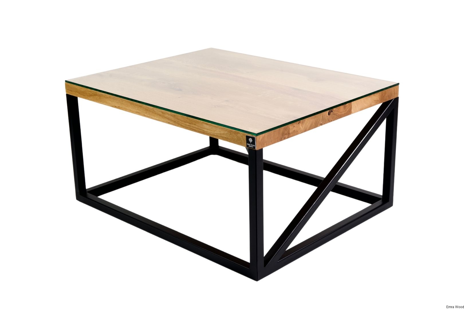 STOLIK KAWOWY / Stelaż Stal Czarna Malowana Proszkowo / Blat Lite Drewno DĄB z Szybą model STK-102