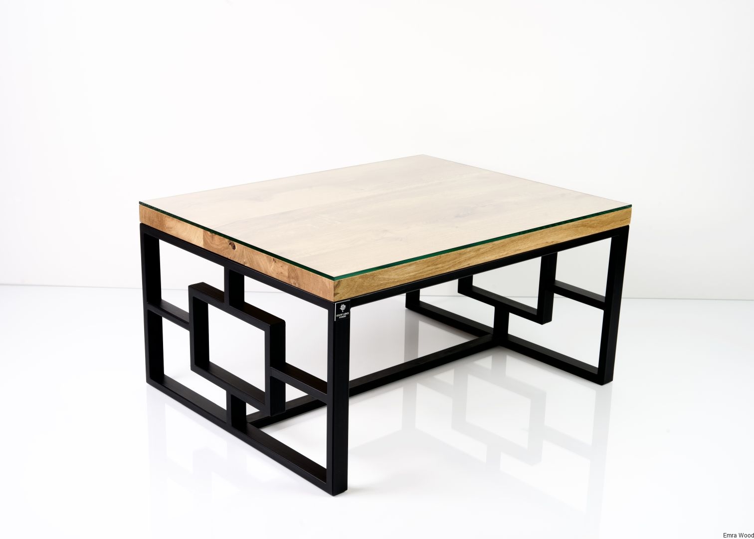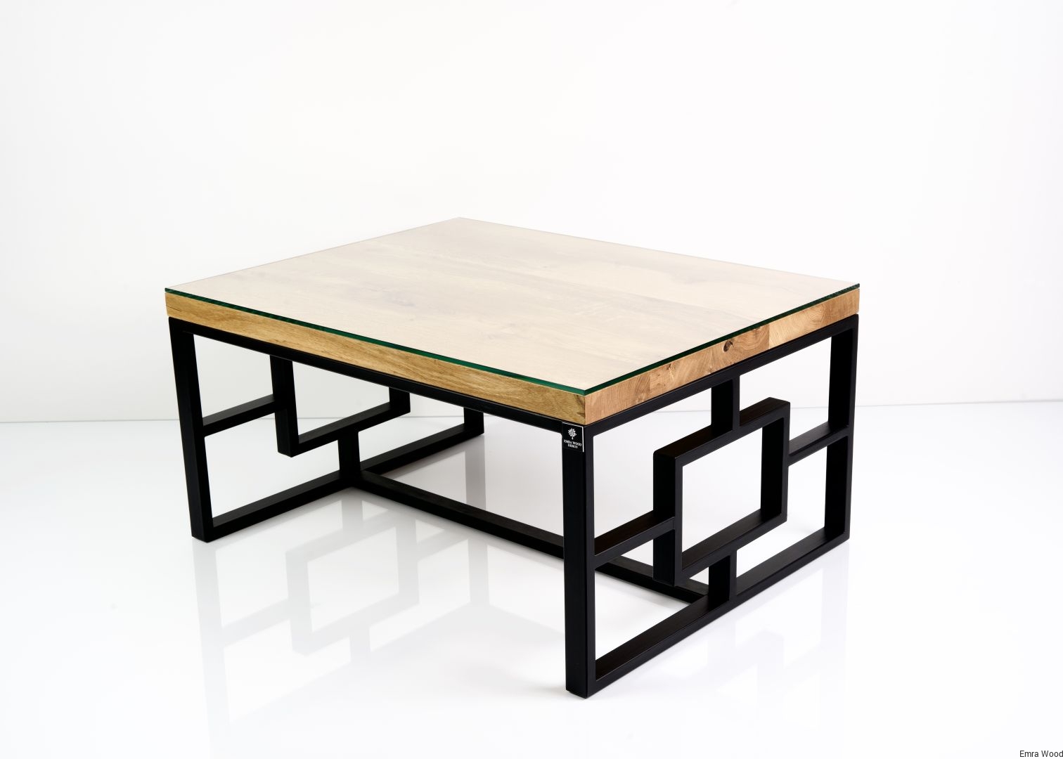 STOLIK KAWOWY / Stelaż Stal Czarna Malowana Proszkowo / Blat Lite Drewno DĄB z Szybą model STK-103