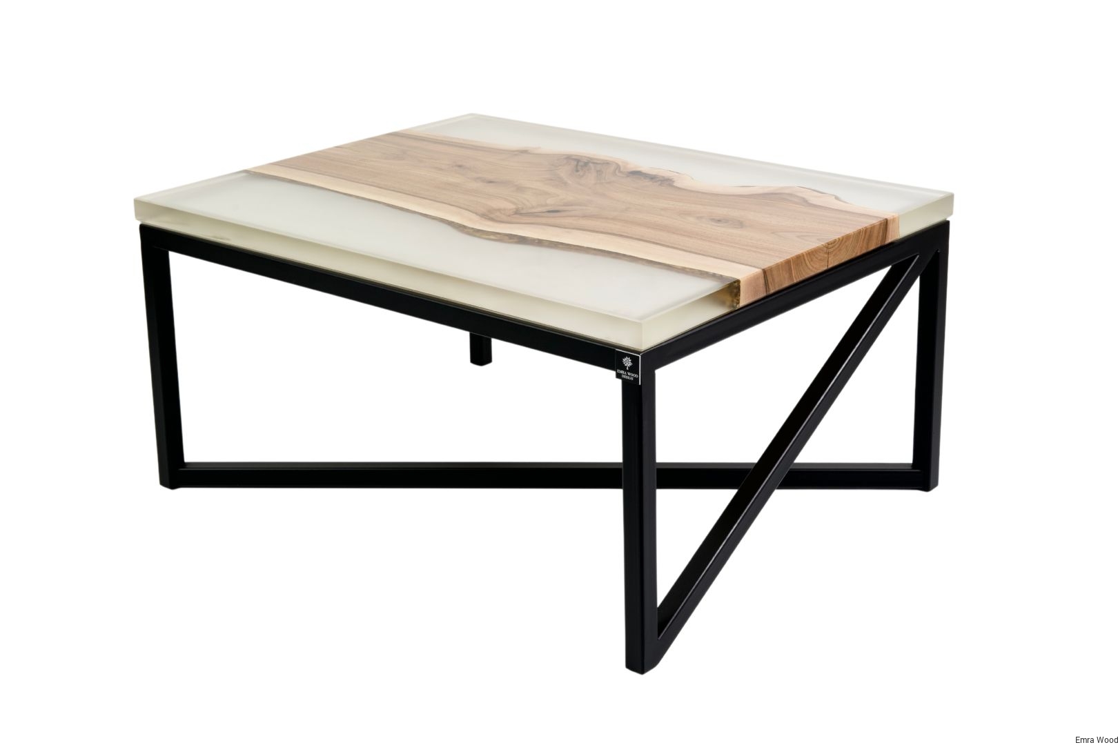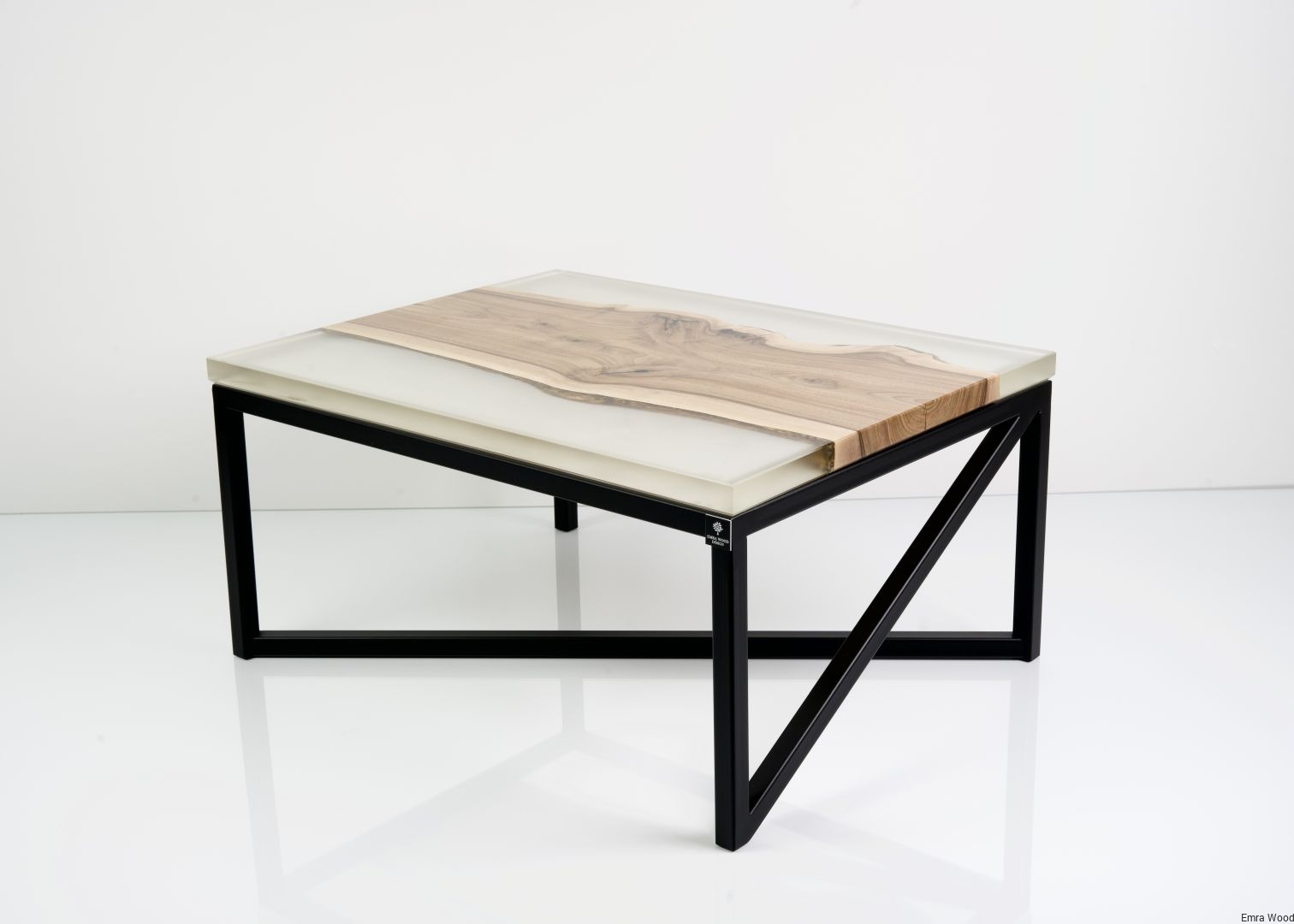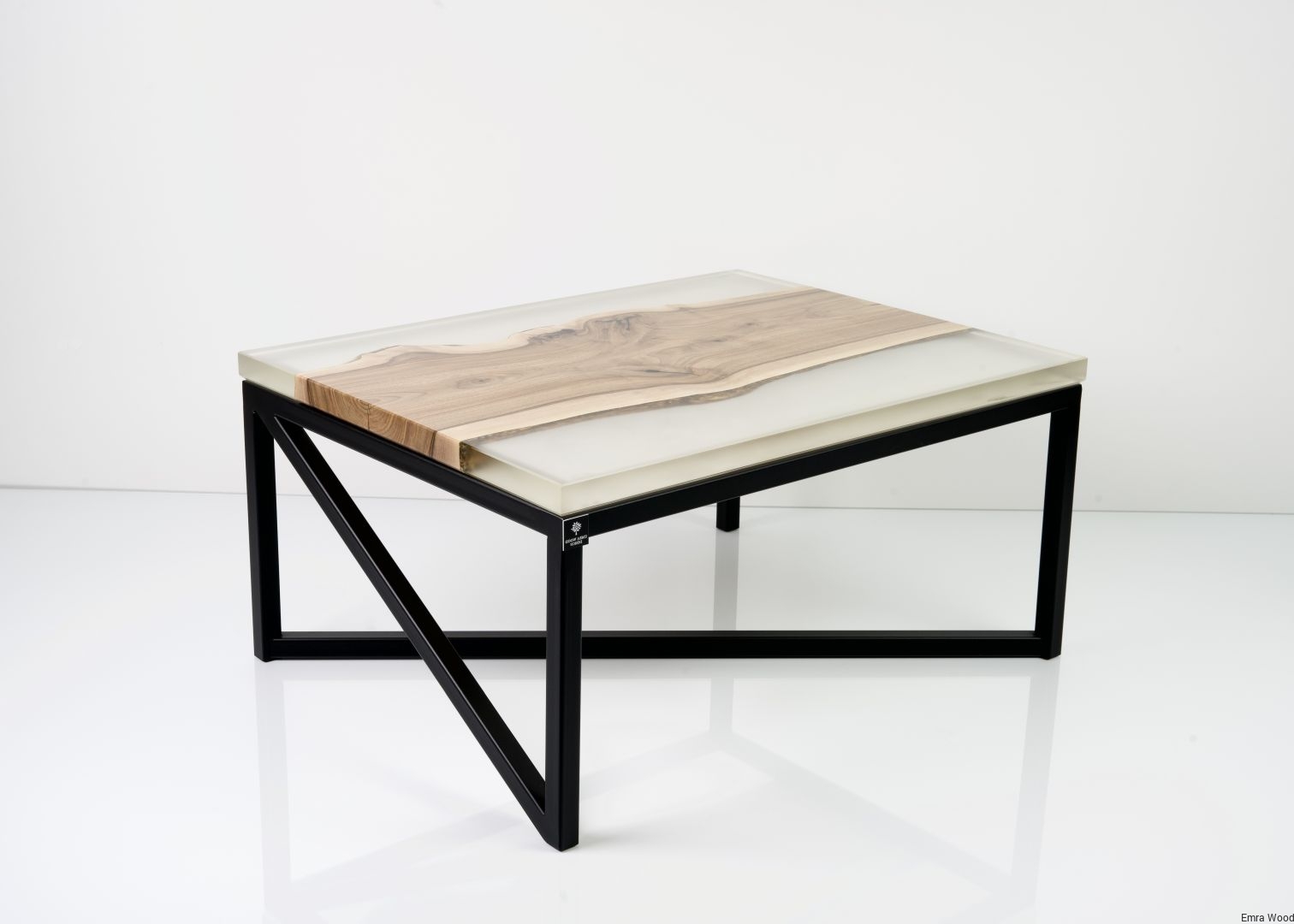 STOLIK KAWOWY / Stelaż Stal Czarna Malowana Proszkowo / Blat Lite Drewno DĄB z Żywicą model STK-106
