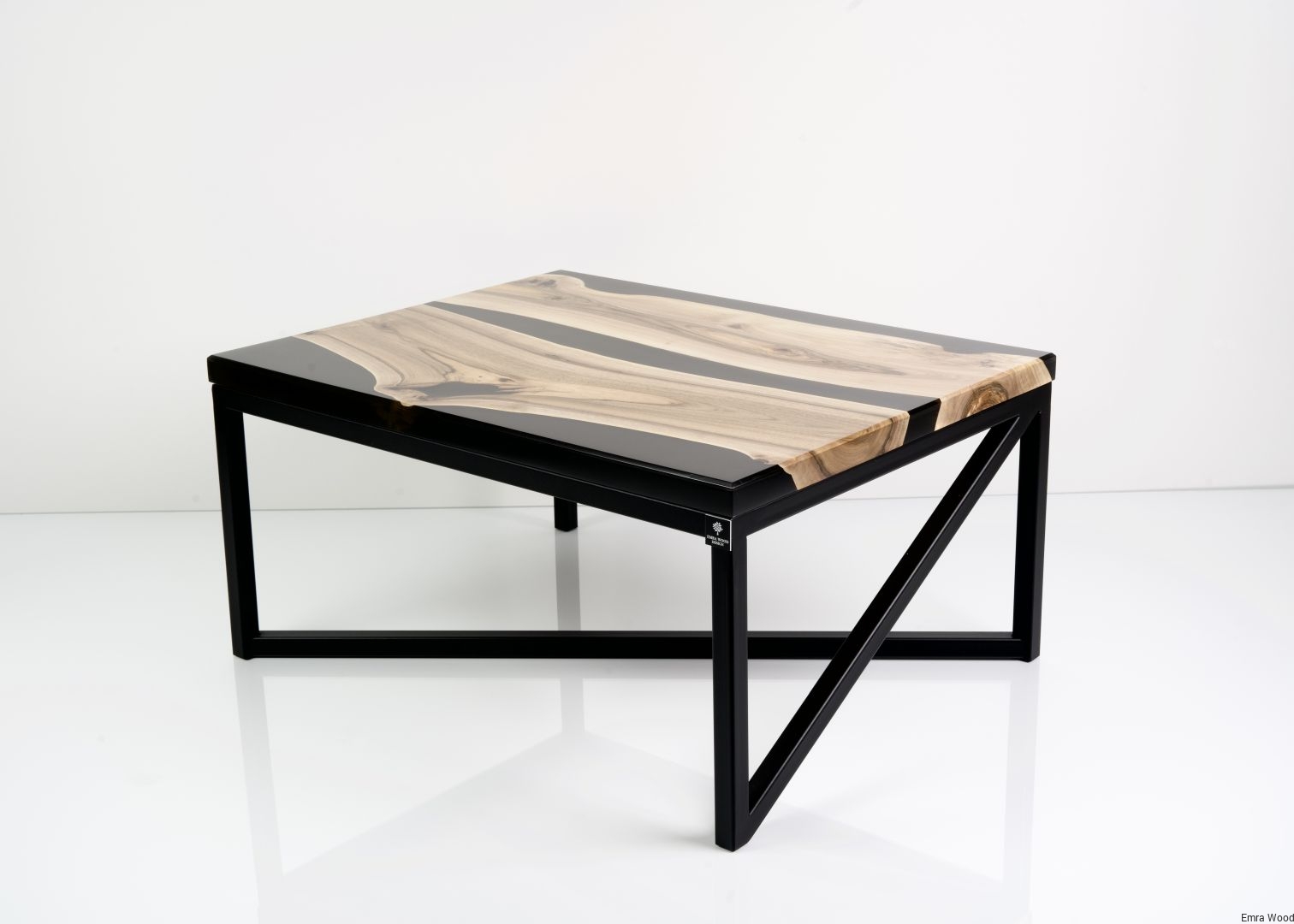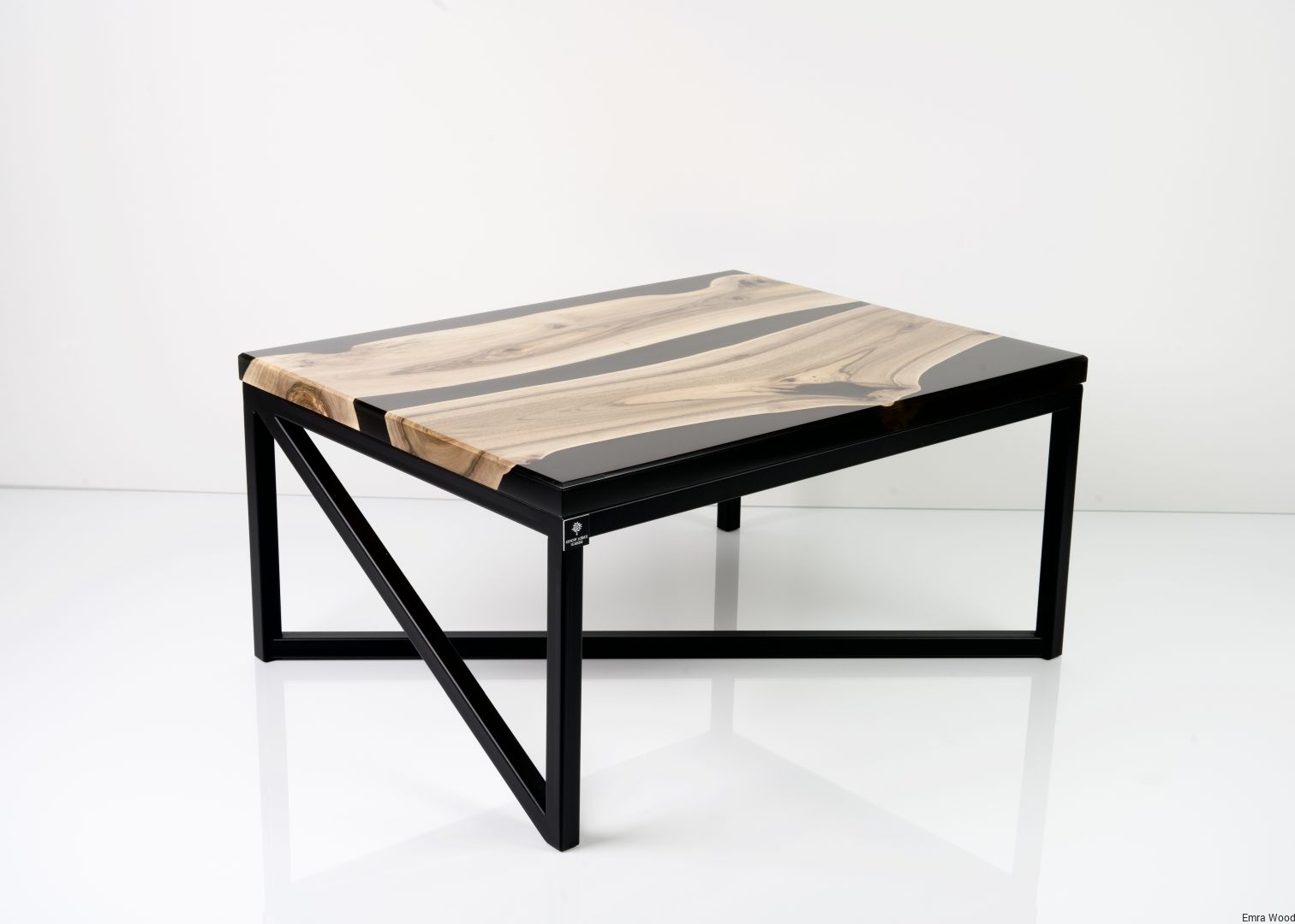 STOLIK KAWOWY / Stelaż Stal Czarna Malowana Proszkowo / Blat Lite Drewno DĄB z Żywicą model STK-107
