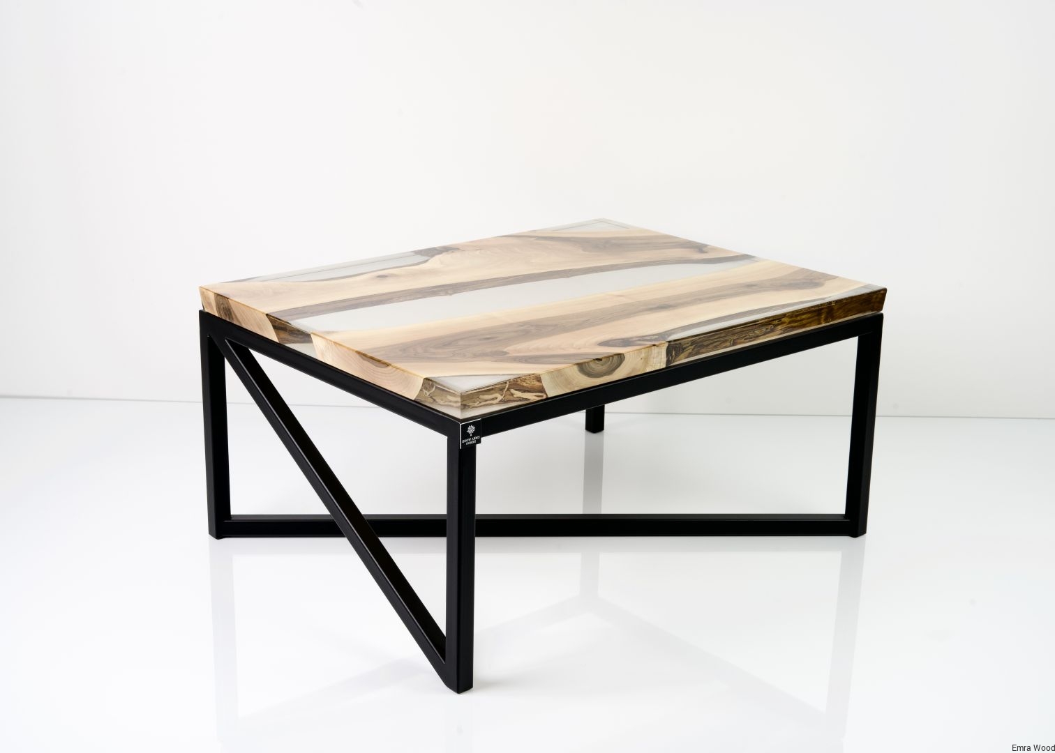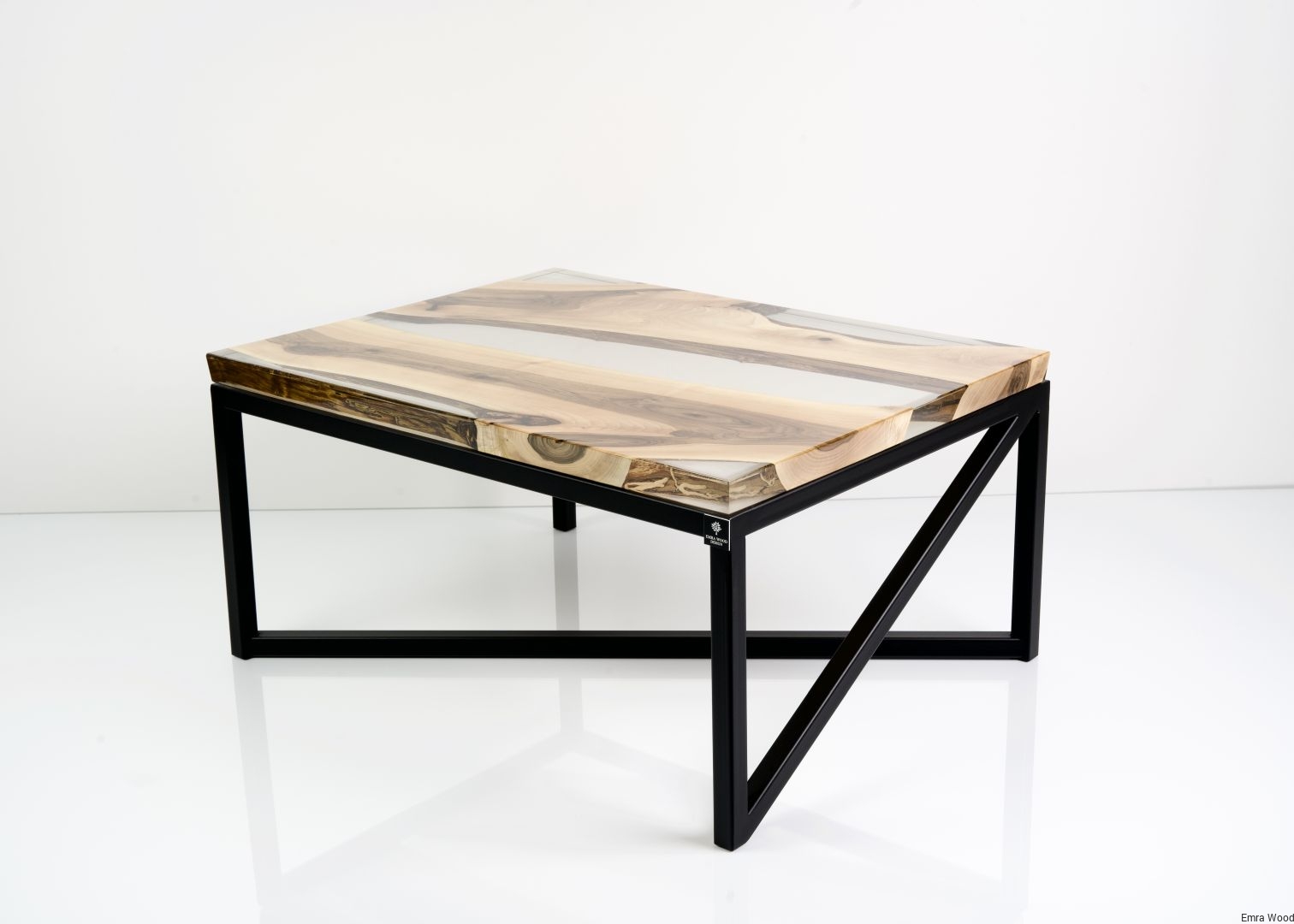 STOLIK KAWOWY / Stelaż Stal Czarna Malowana Proszkowo / Blat Lite Drewno DĄB z Żywicą model STK-109