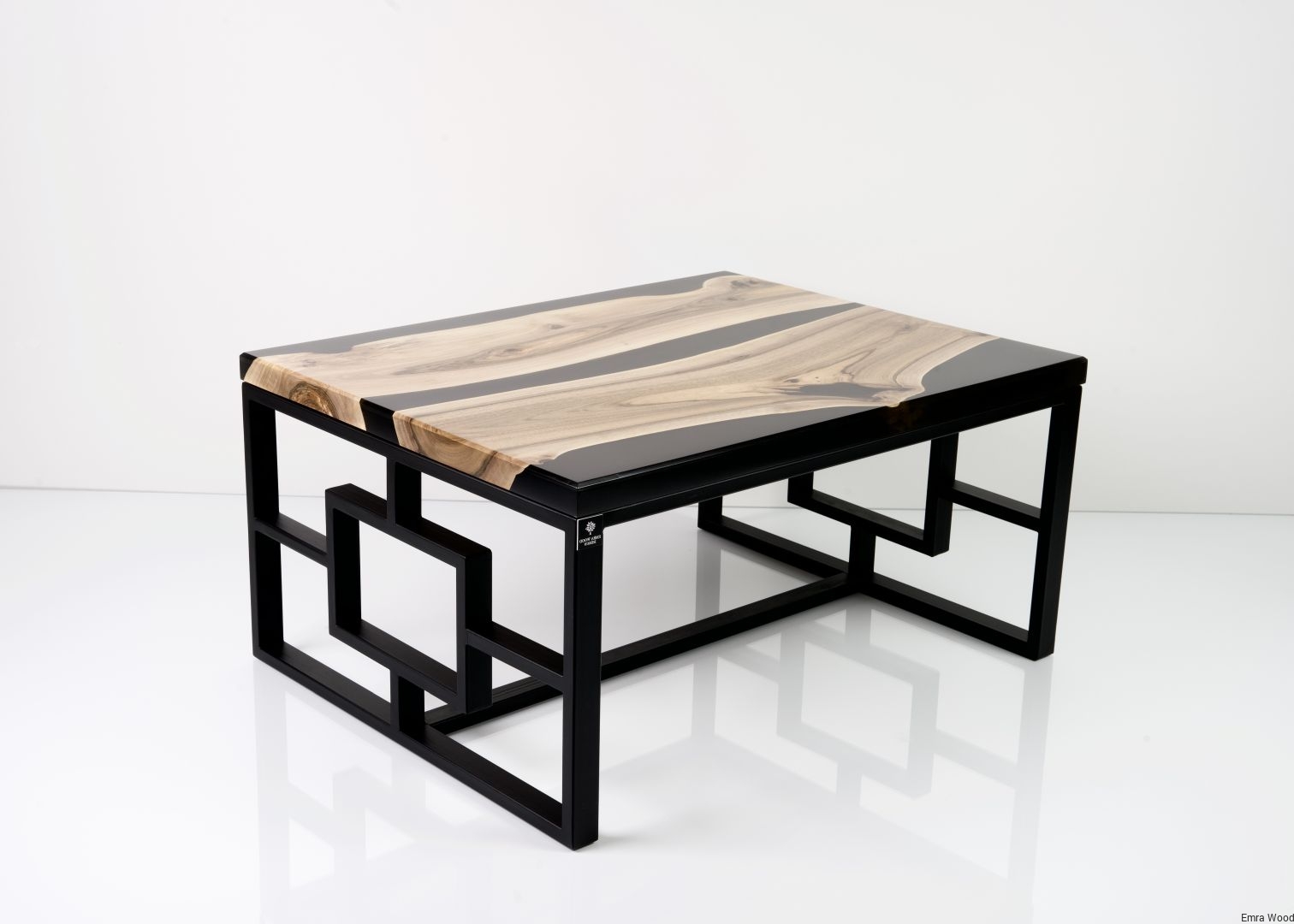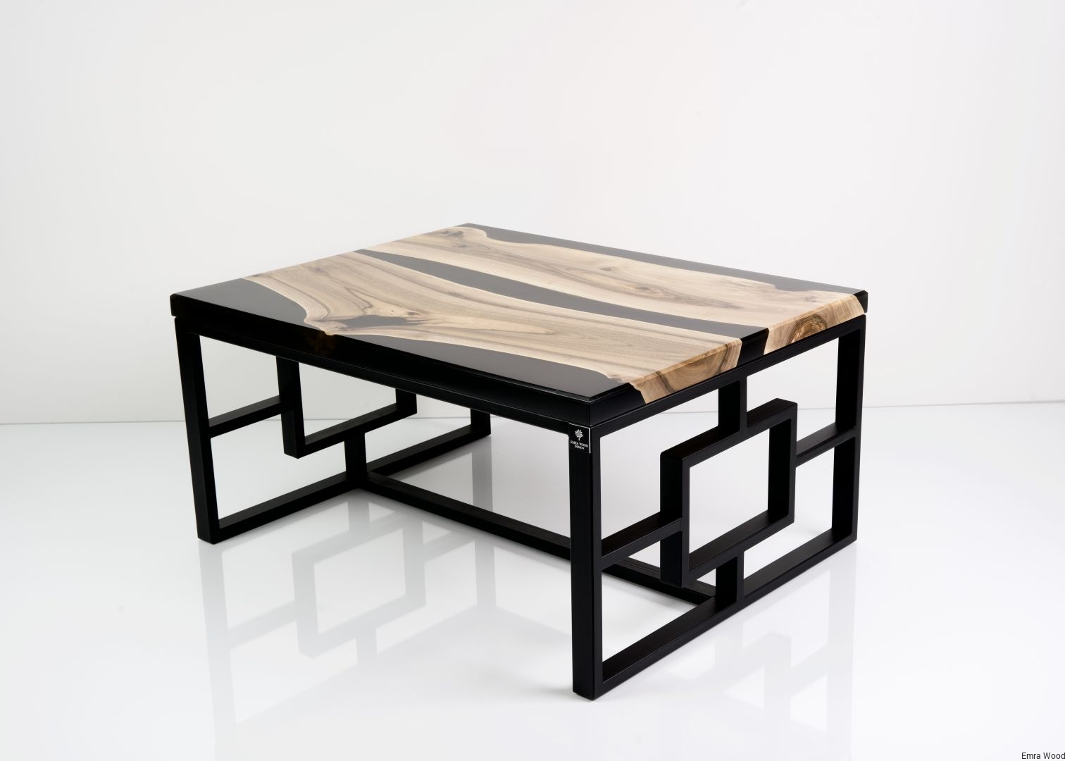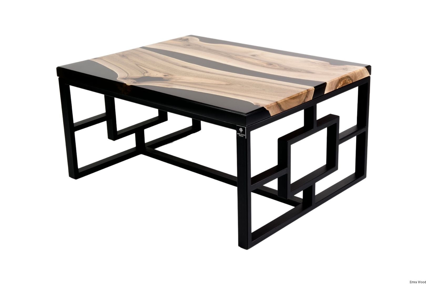 STOLIK KAWOWY / Stelaż Stal Czarna Malowana Proszkowo / Blat Lite Drewno DĄB z Żywicą model STK-111