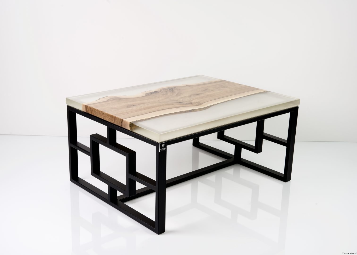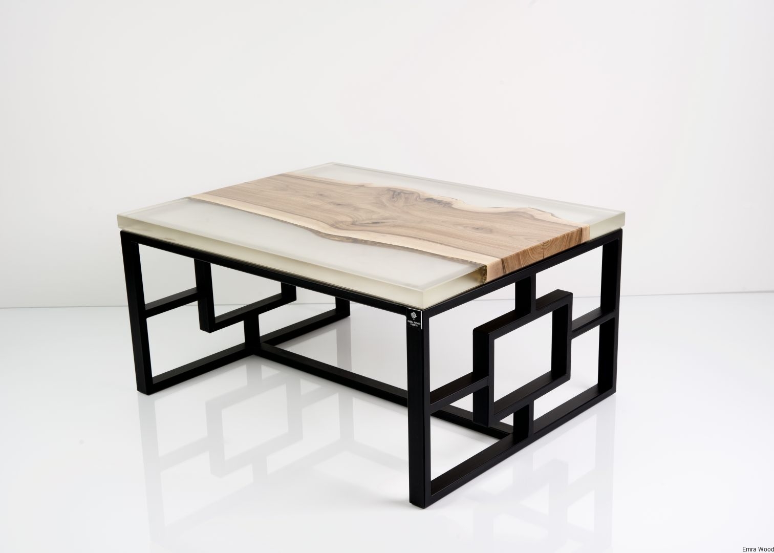 STOLIK KAWOWY / Stelaż Stal Czarna Malowana Proszkowo / Blat Lite Drewno DĄB z Żywicą model STK-112