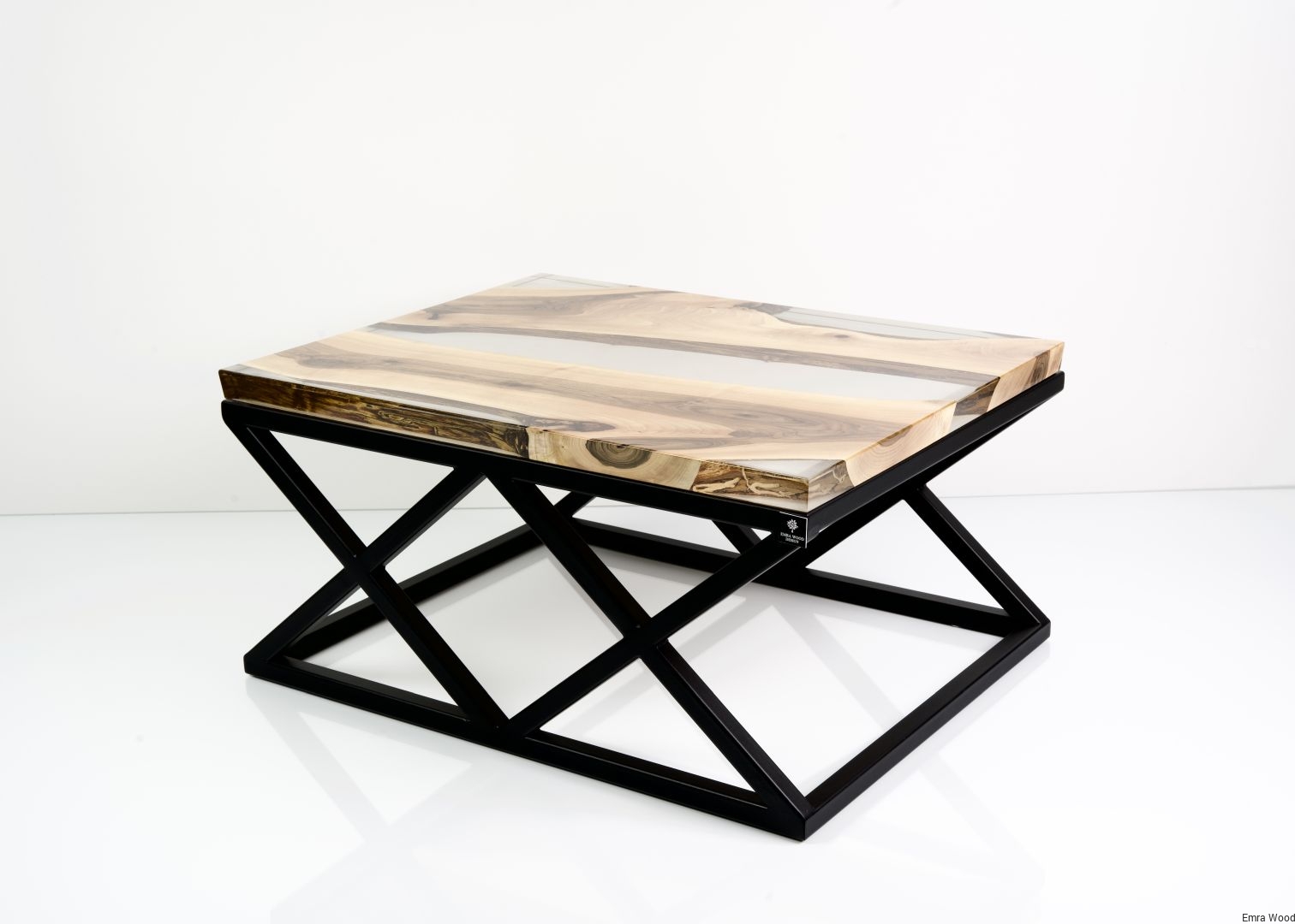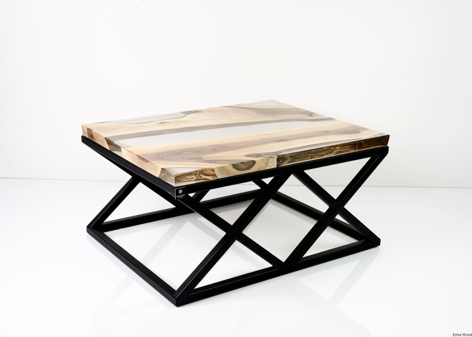 STOLIK KAWOWY / Stelaż Stal Czarna Malowana Proszkowo / Blat Lite Drewno DĄB z Żywicą model STK-116