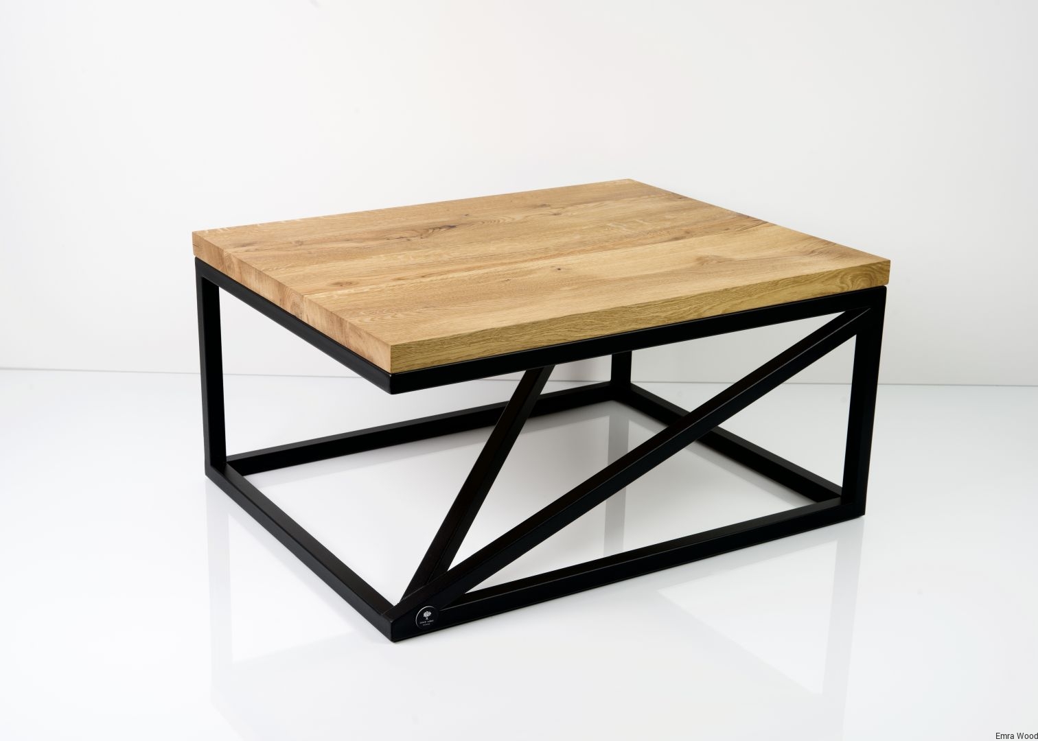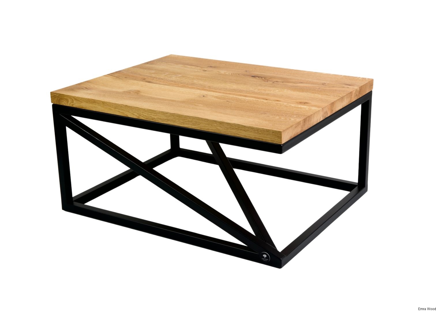 STOLIK KAWOWY / Stelaż Stal Czarna Malowana Proszkowo / Blat Lite Drewno DĄB model STK-129