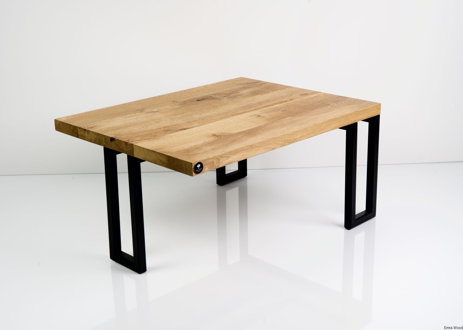 STOLIK KAWOWY / Stelaż Stal Czarna Malowana Proszkowo / Blat Lite Drewno DĄB model STK-132