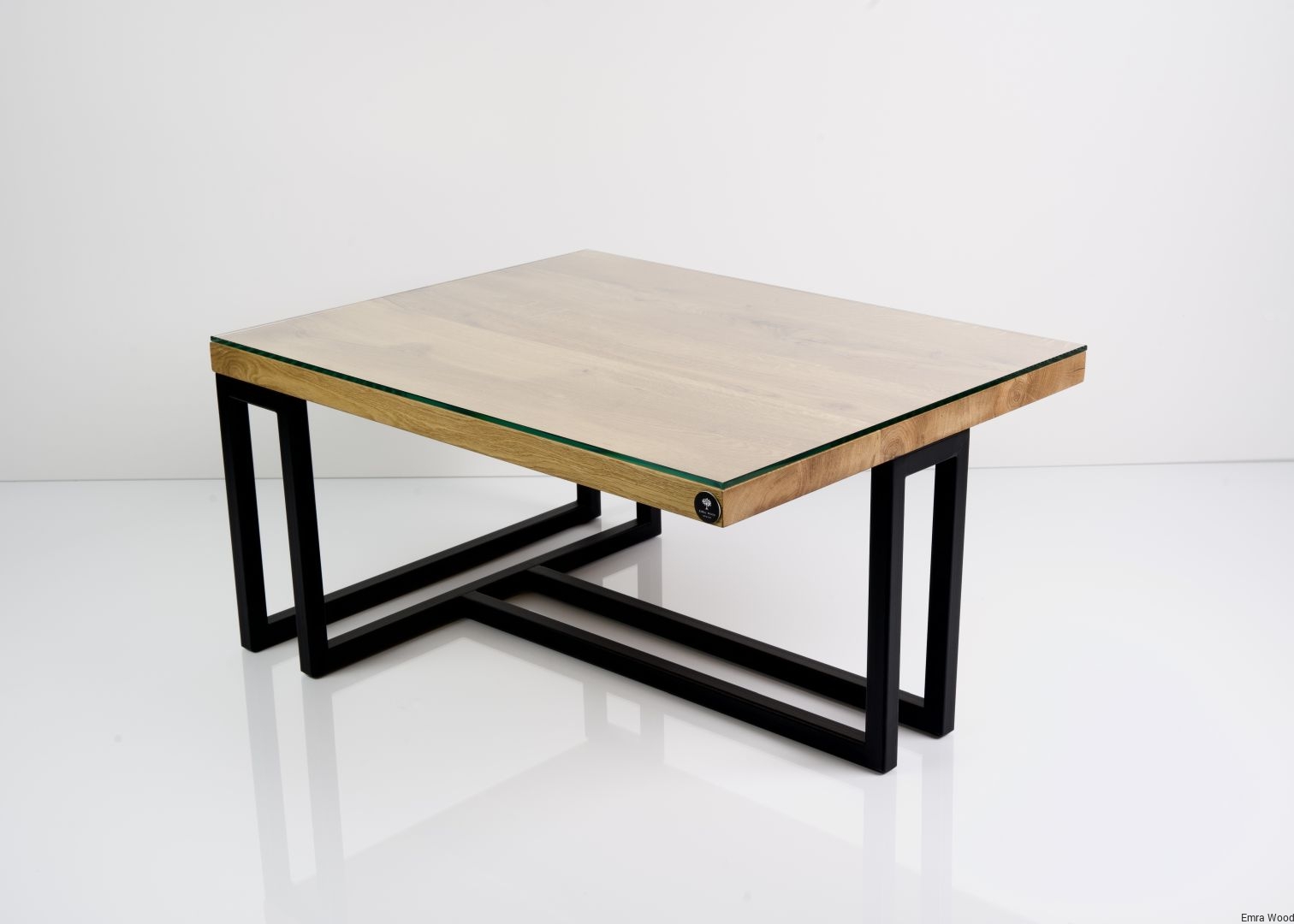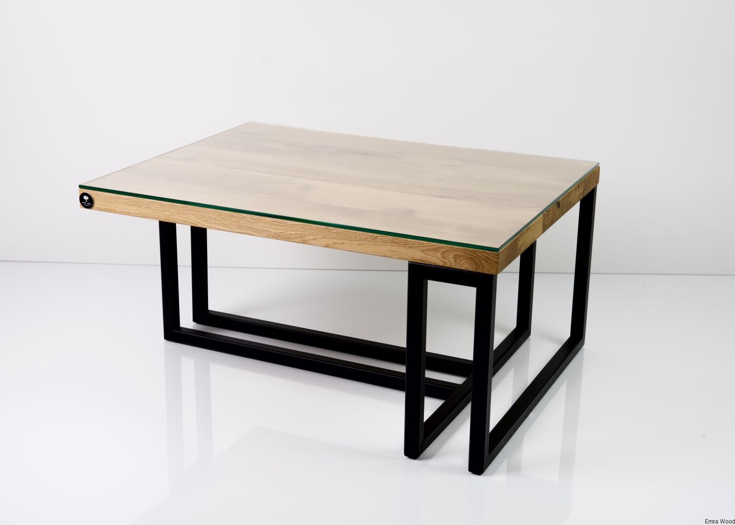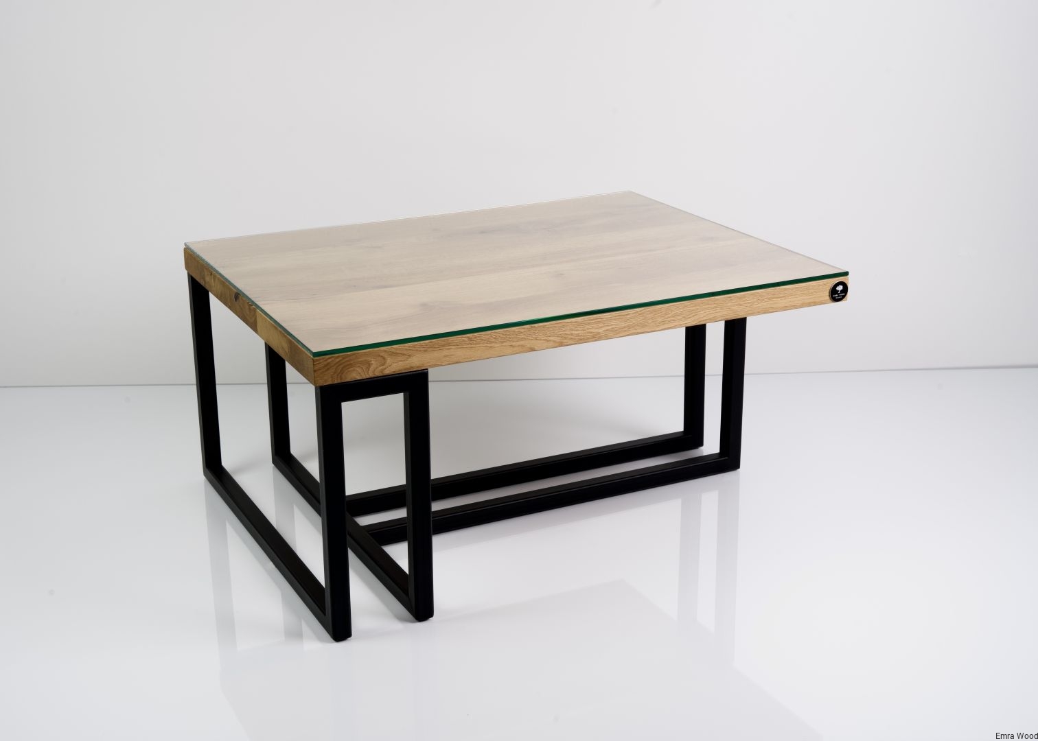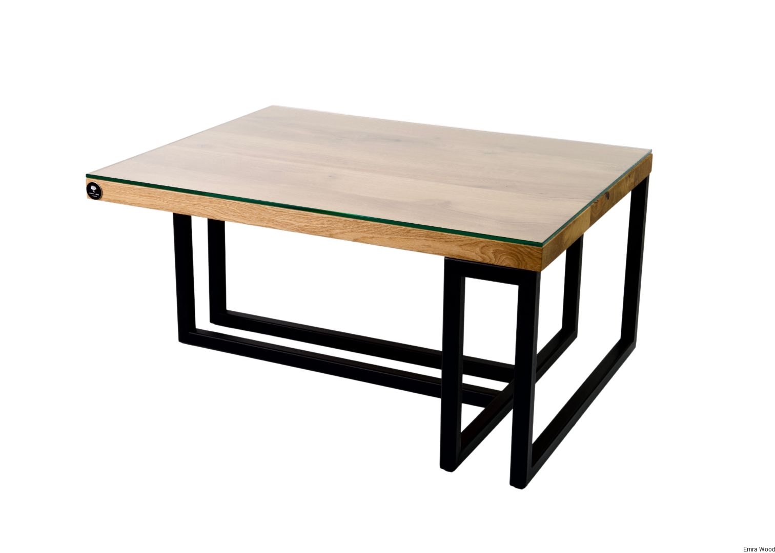 STOLIK KAWOWY / Stelaż Stal Czarna Malowana Proszkowo / Blat Lite Drewno DĄB z Szybą model STK-139