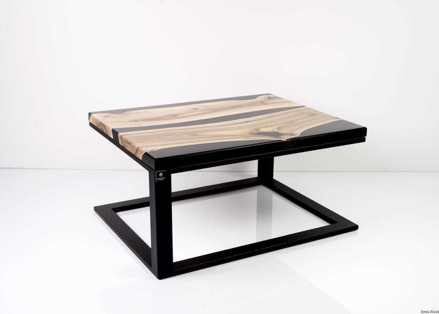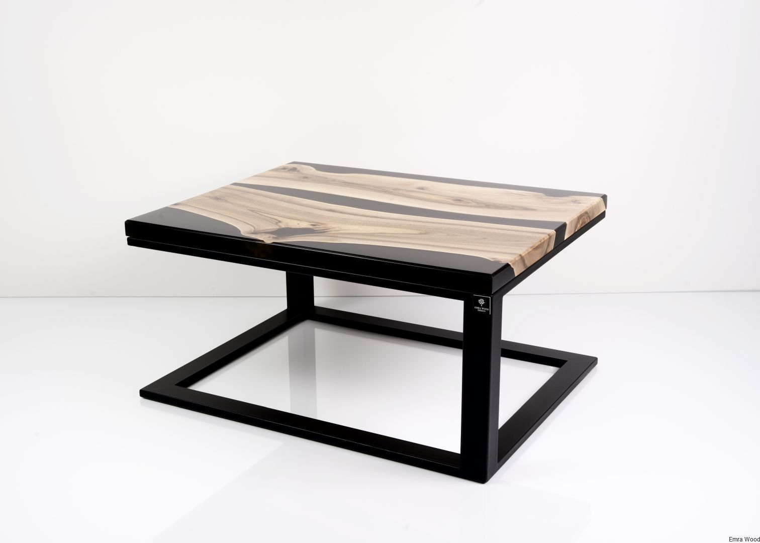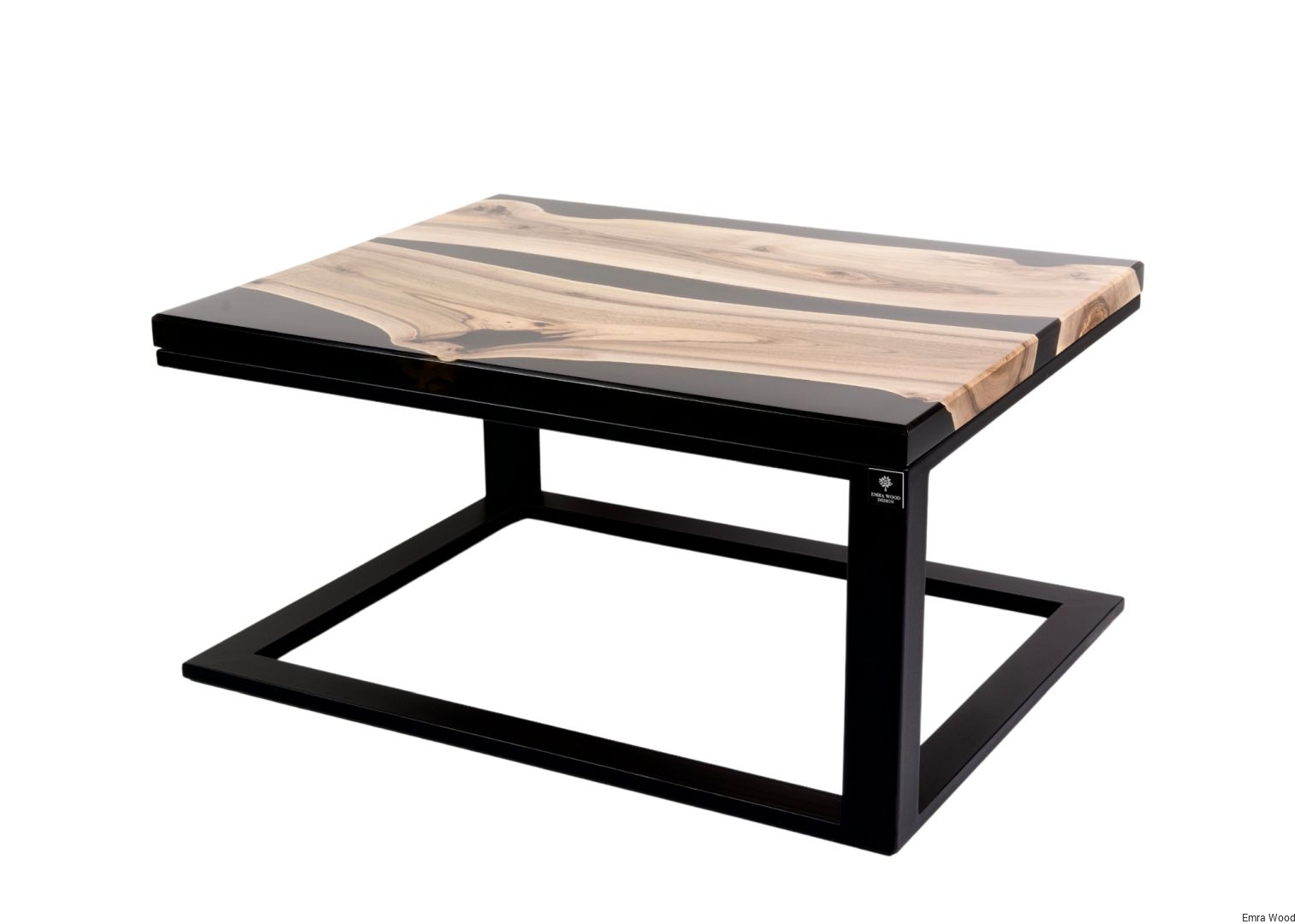 STOLIK KAWOWY / Stelaż Stal Czarna Malowana Proszkowo / Blat Lite Drewno DĄB z Żywicą model STK-140