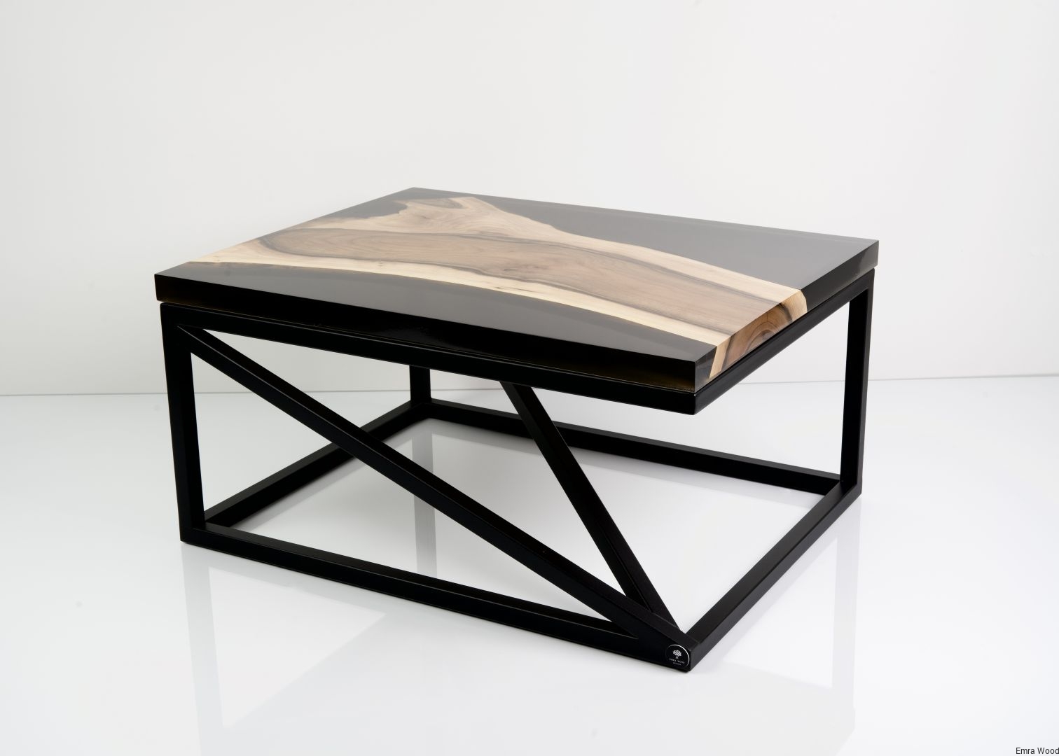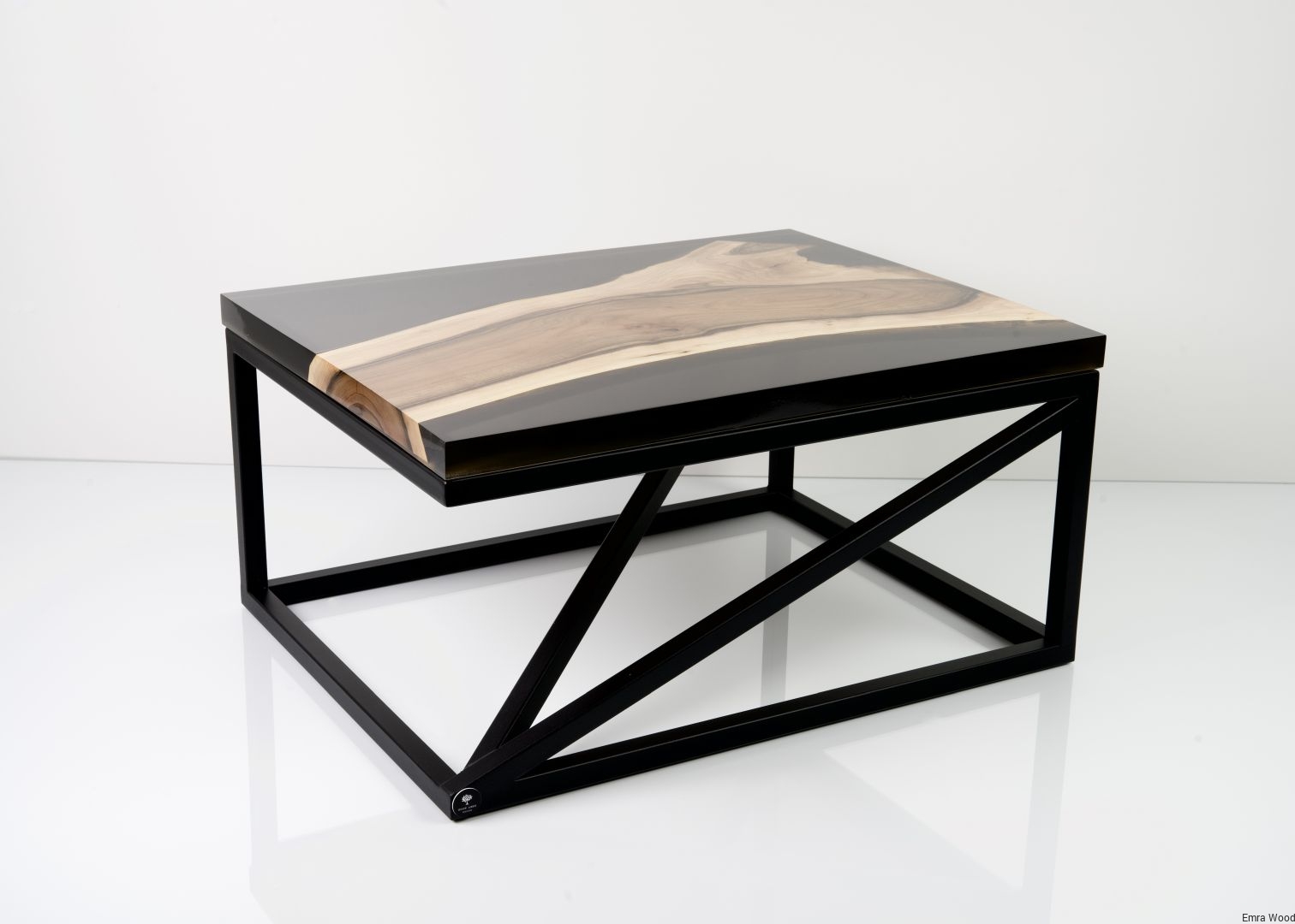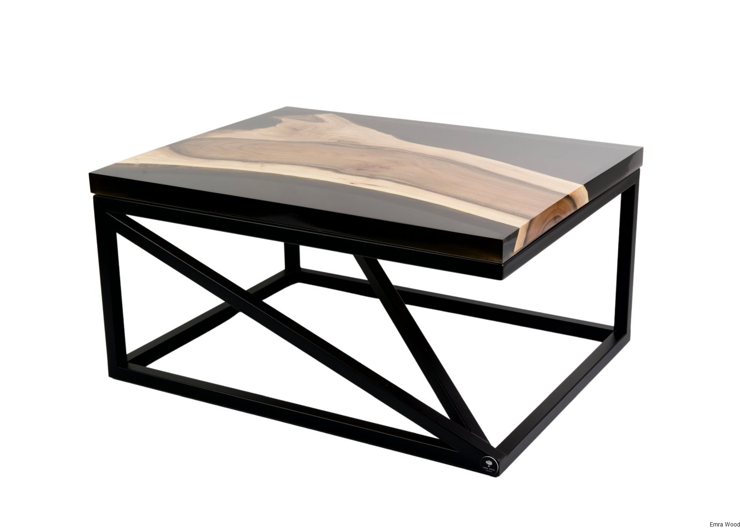 STOLIK KAWOWY / Stelaż Stal Czarna Malowana Proszkowo / Blat Lite Drewno DĄB z Żywicą model STK-145