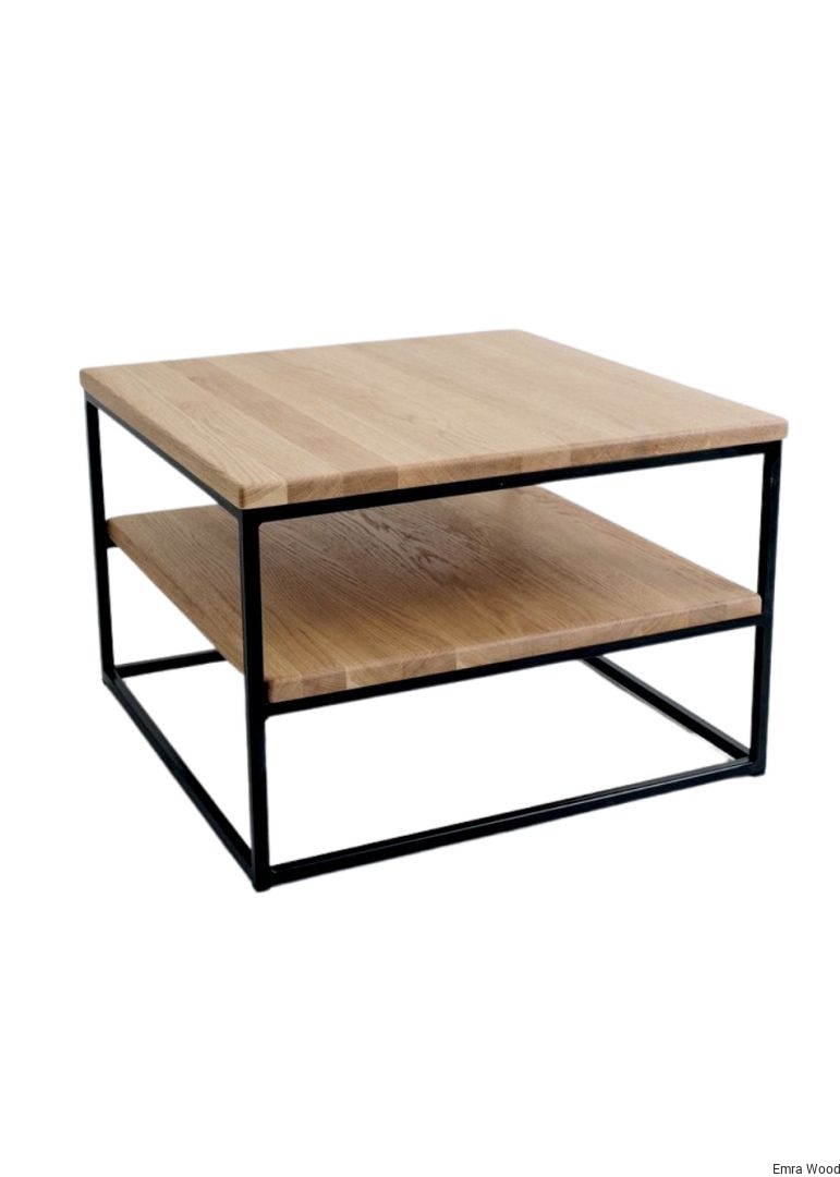 STOLIK KAWOWY / Stelaż Stal Czarna Malowana Proszkowo / Blat Lite Drewno DĄB z Żywicą model STK-148