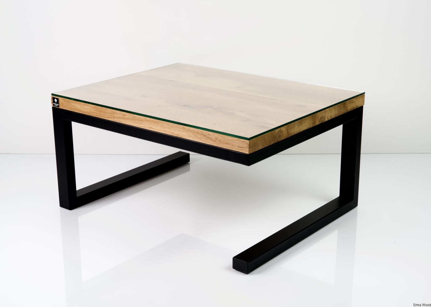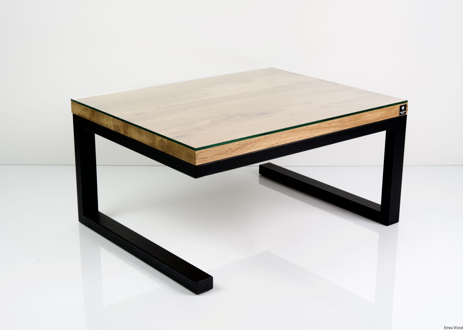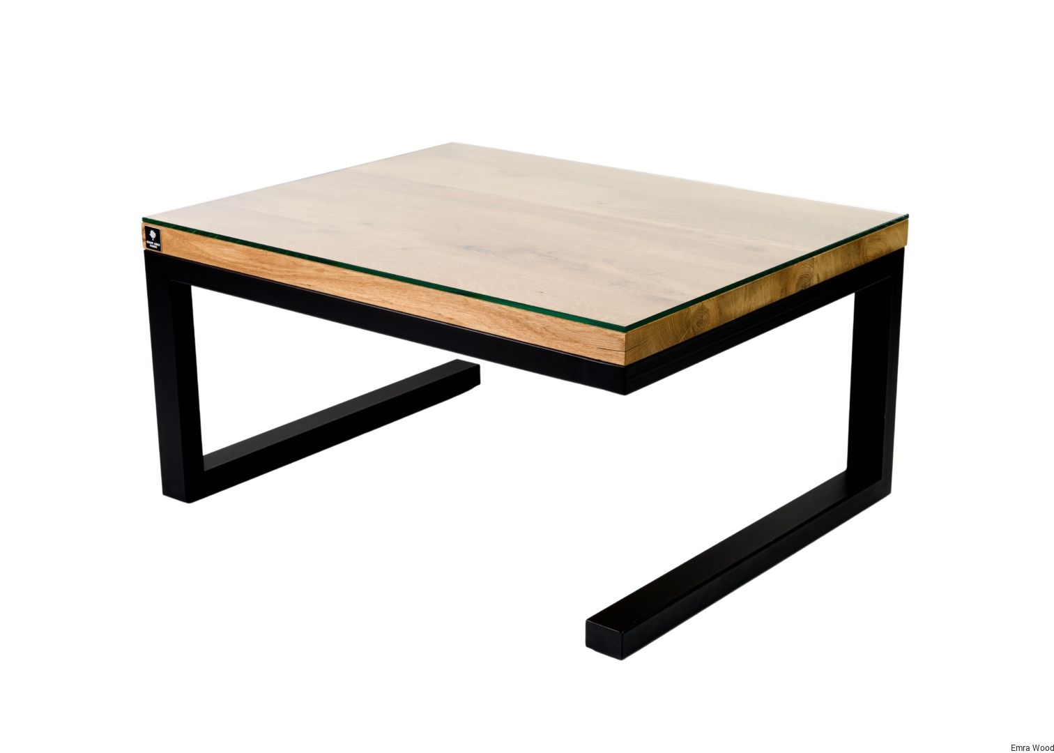 STOLIK KAWOWY / Stelaż Stal Czarna Malowana Proszkowo / Blat Lite Drewno DĄB Z Szybą model STK-18