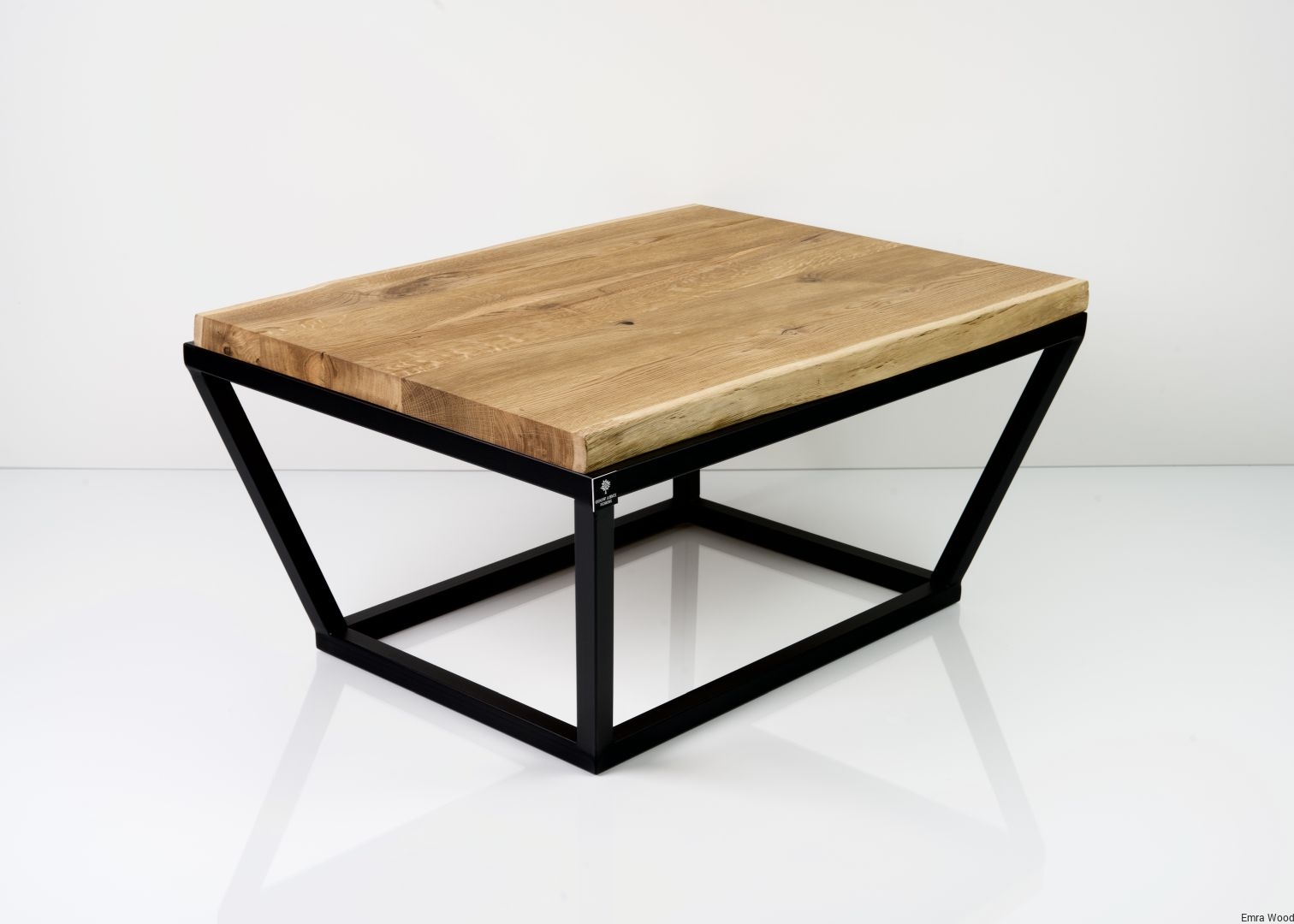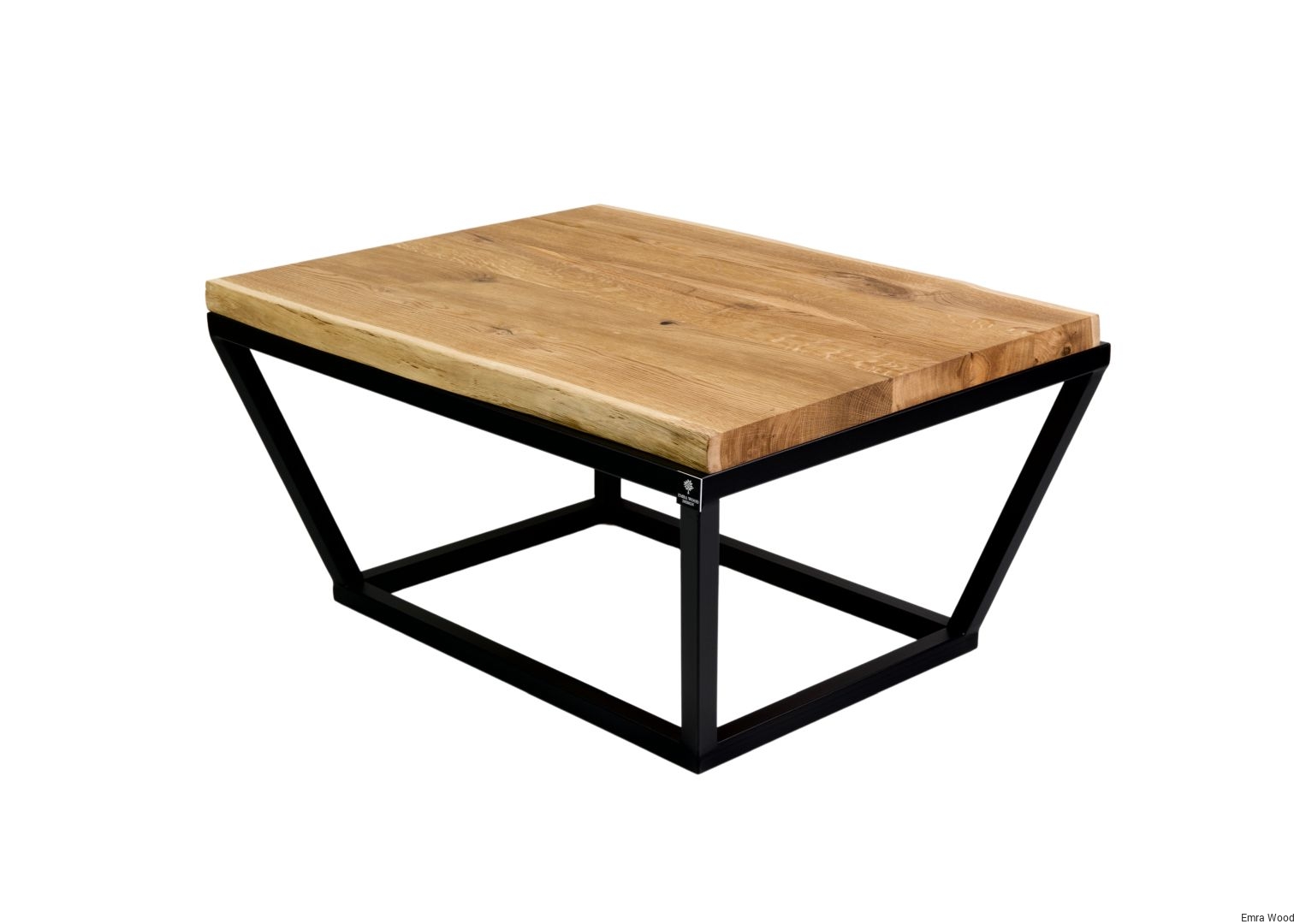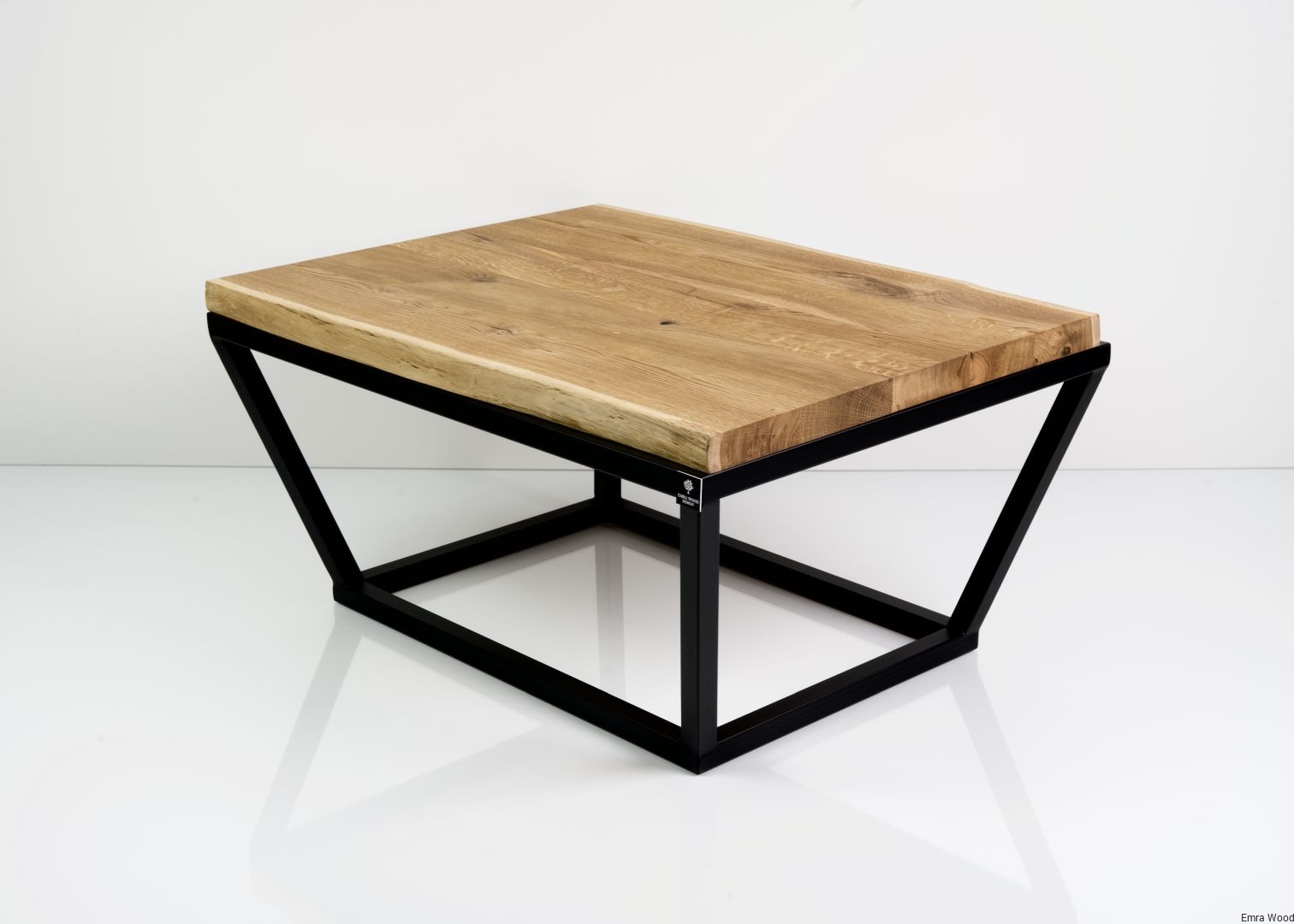STOLIK KAWOWY / Stelaż Stal Czarna Malowana Proszkowo / Blat Lite Drewno DĄB model STK-24