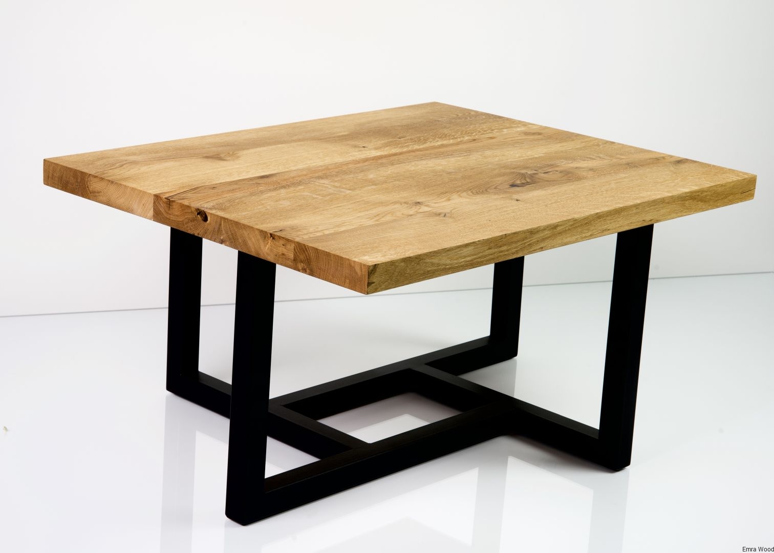 STOLIK KAWOWY / Stelaż Stal Czarna Malowana Proszkowo / Blat Lite Drewno DĄB model STK-4