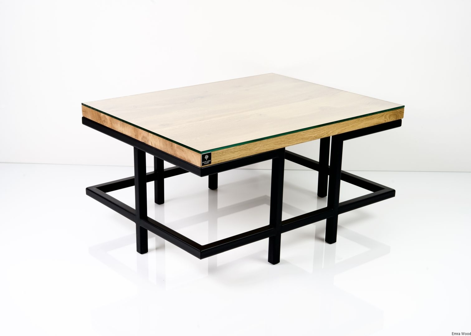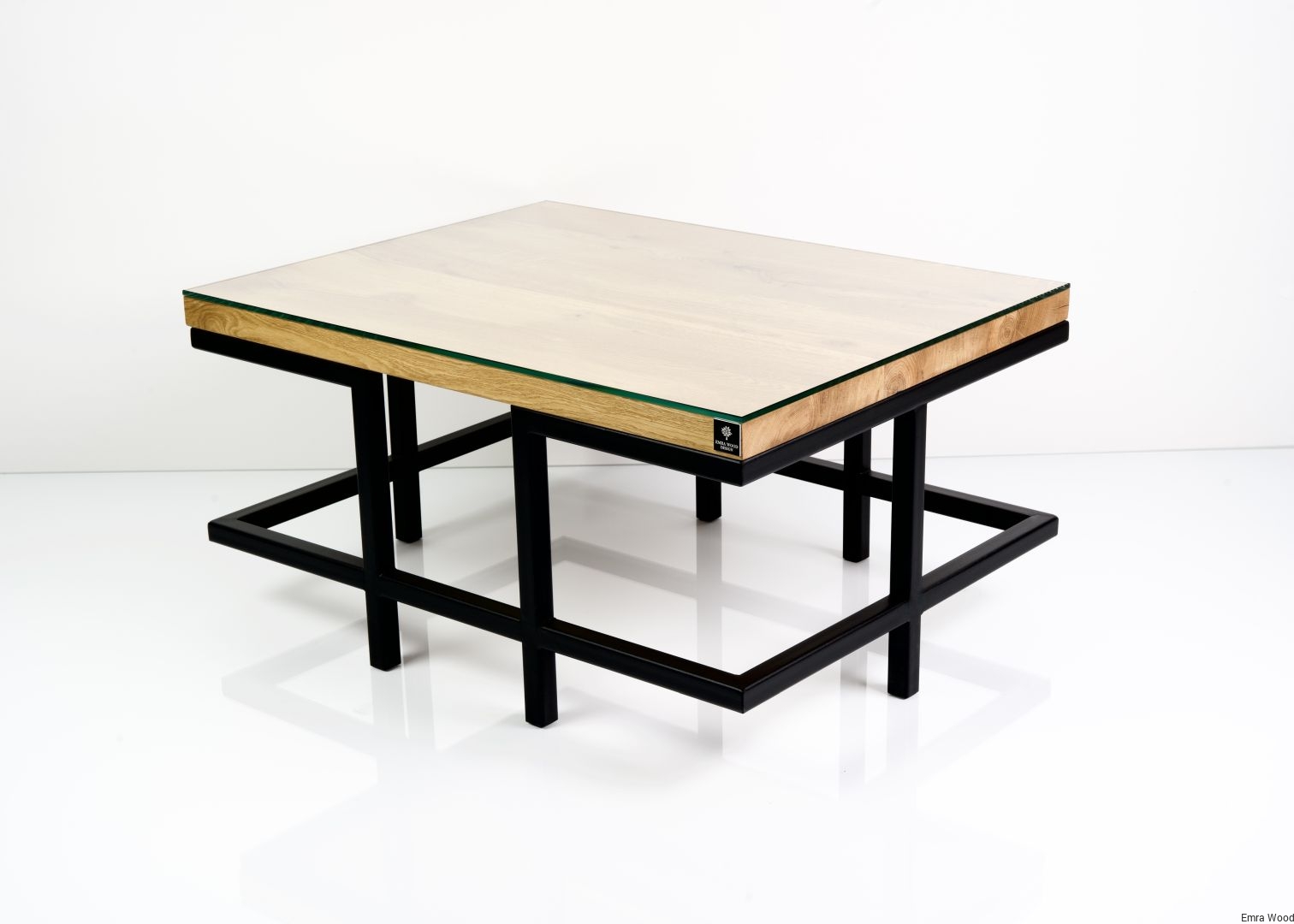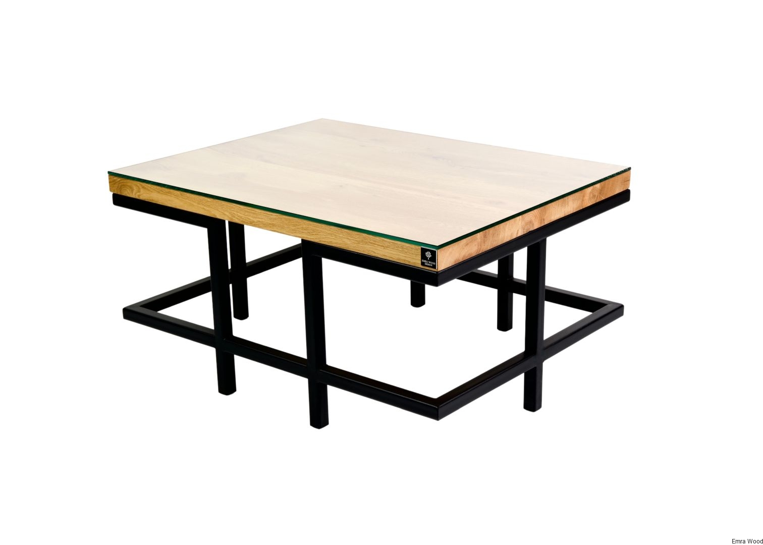 STOLIK KAWOWY / Stelaż Stal Czarna Malowana Proszkowo / Blat Lite Drewno DĄB z Szybą model STK-49