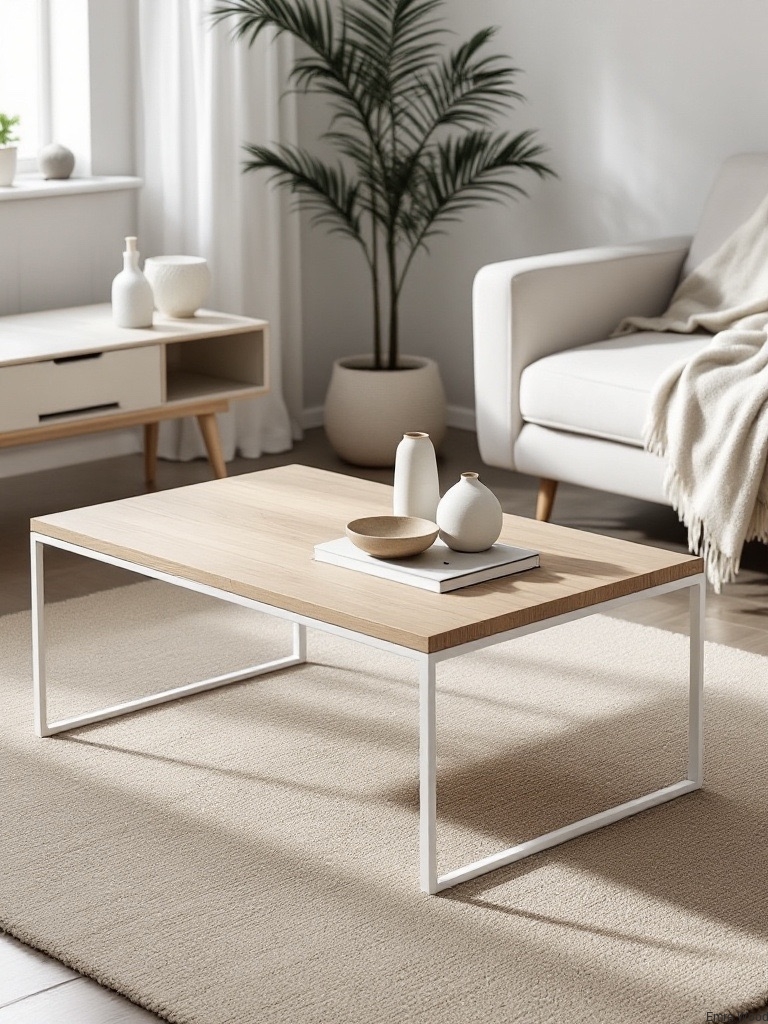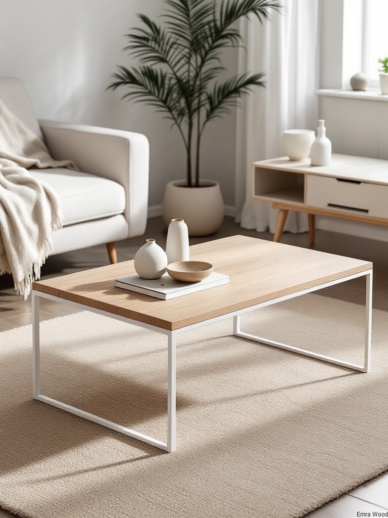 STOLIK KAWOWY / Stelaż Stal Biały Malowana Proszkowo / Blat Lite Drewno DĄB model STK-505