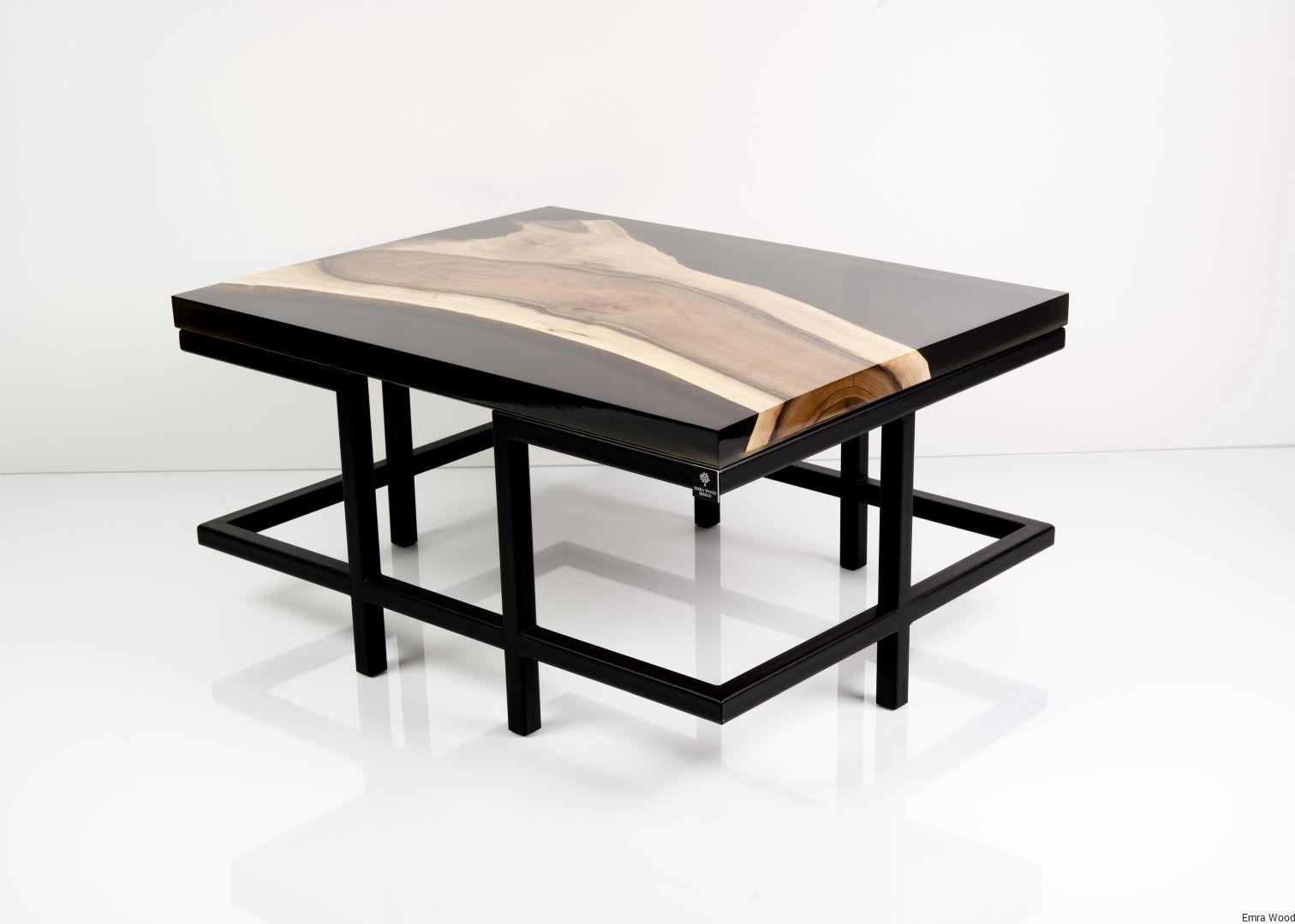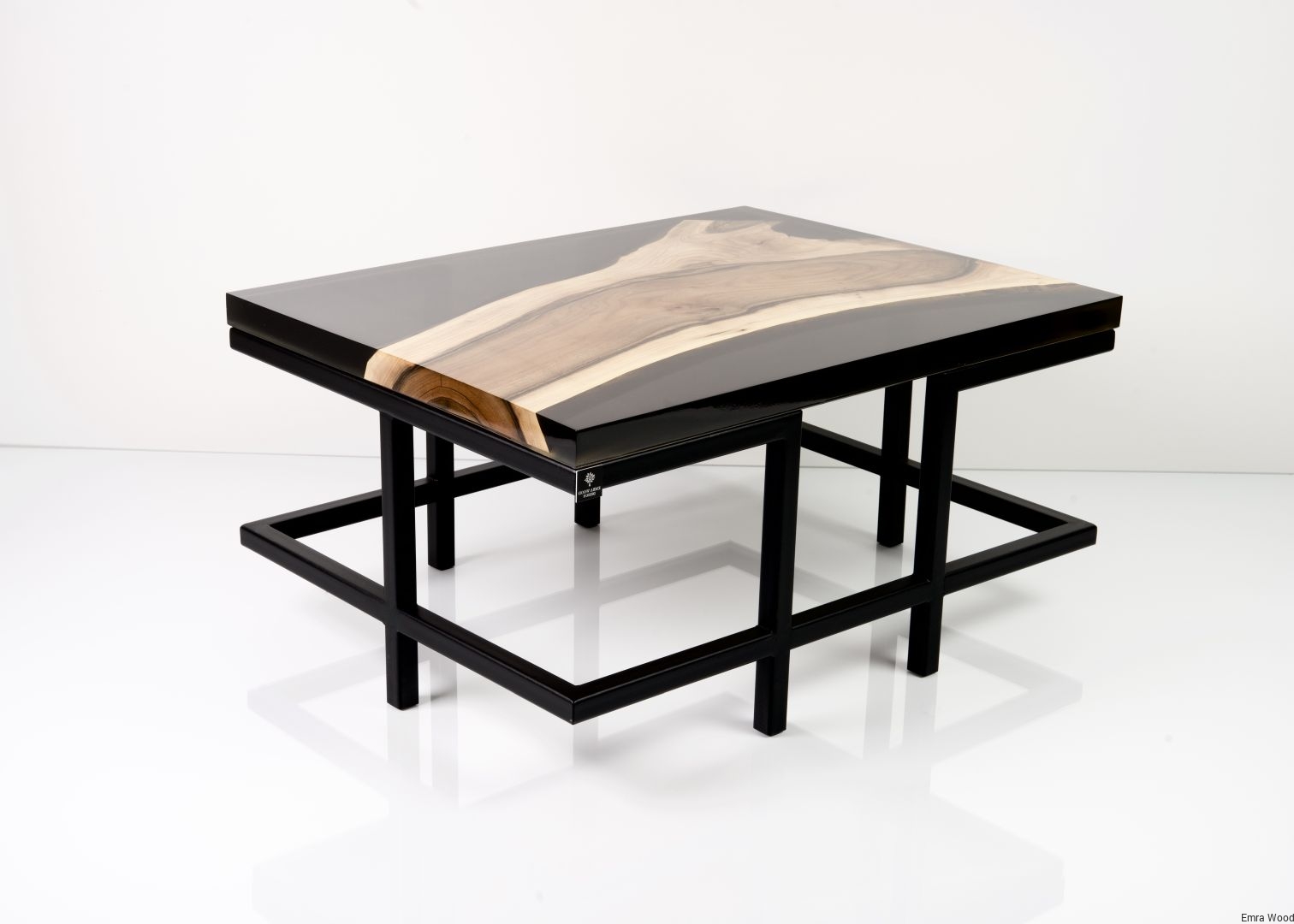 STOLIK KAWOWY / Stelaż Stal Czarna Malowana Proszkowo / Blat Lite Drewno DĄB z Żywicą model STK-51