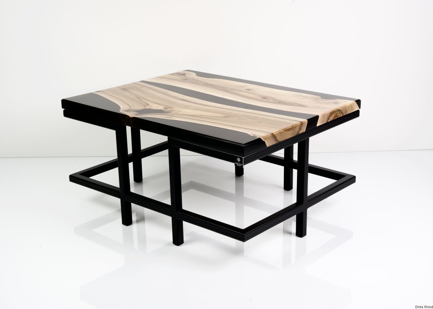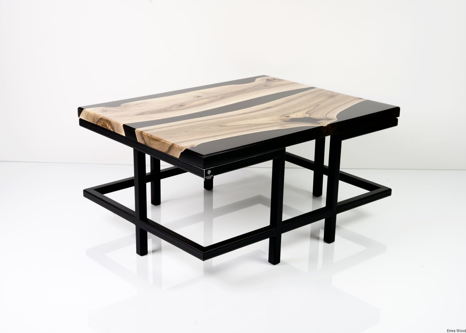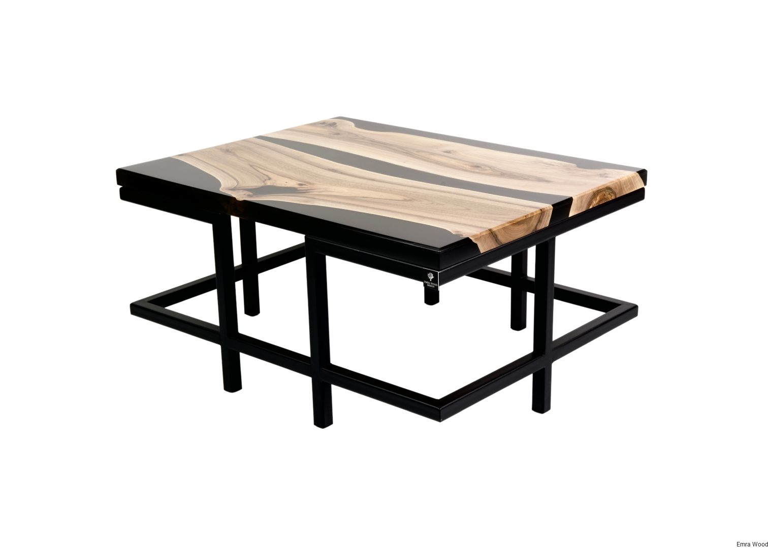 STOLIK KAWOWY / Stelaż Stal Czarna Malowana Proszkowo / Blat Lite Drewno DĄB z Żywicą model STK-52