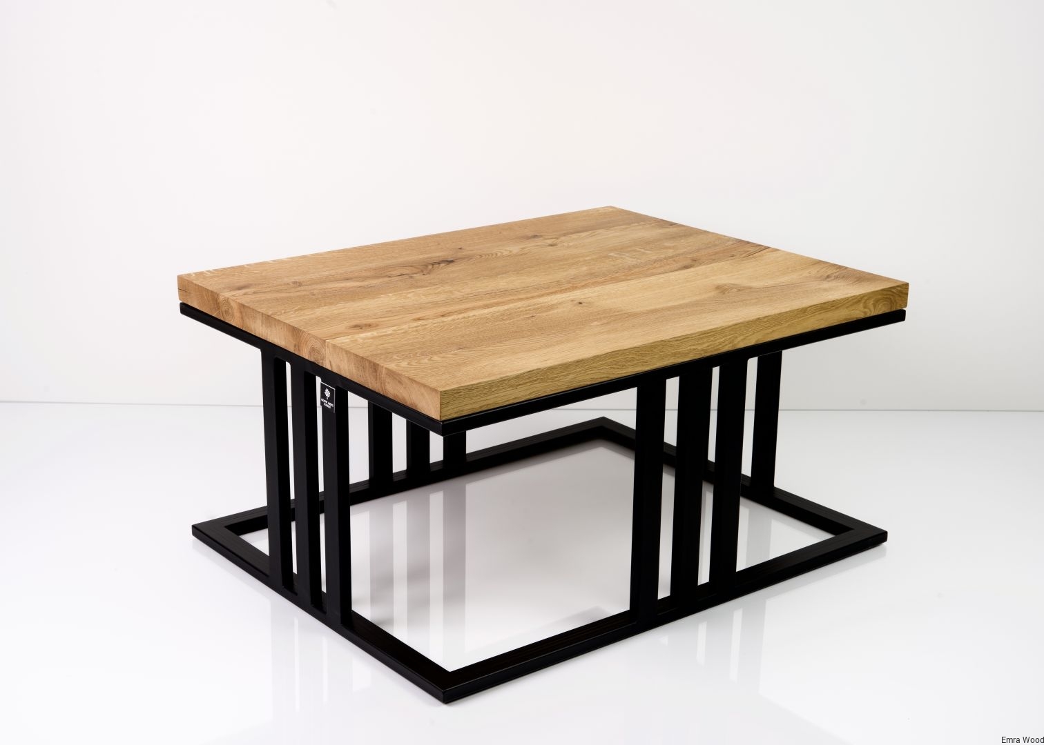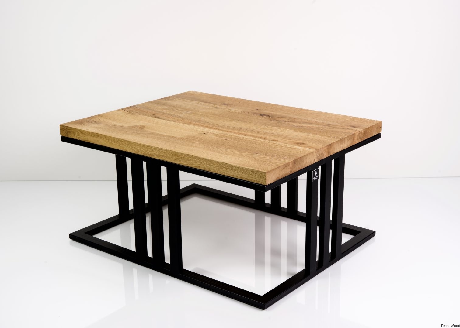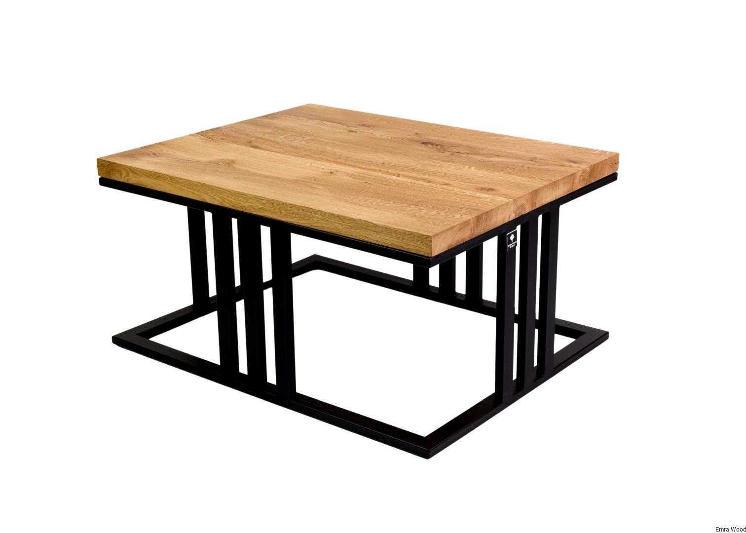STOLIK KAWOWY / Stelaż Stal Czarna Malowana Proszkowo / Blat Lite Drewno DĄB model STK-61