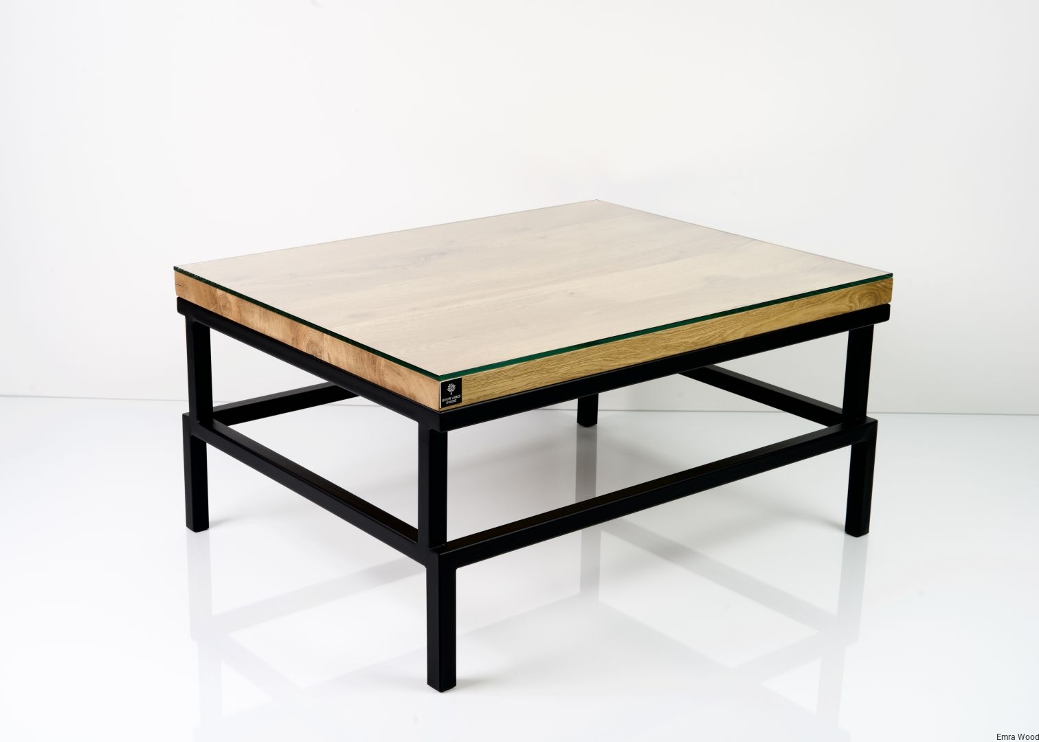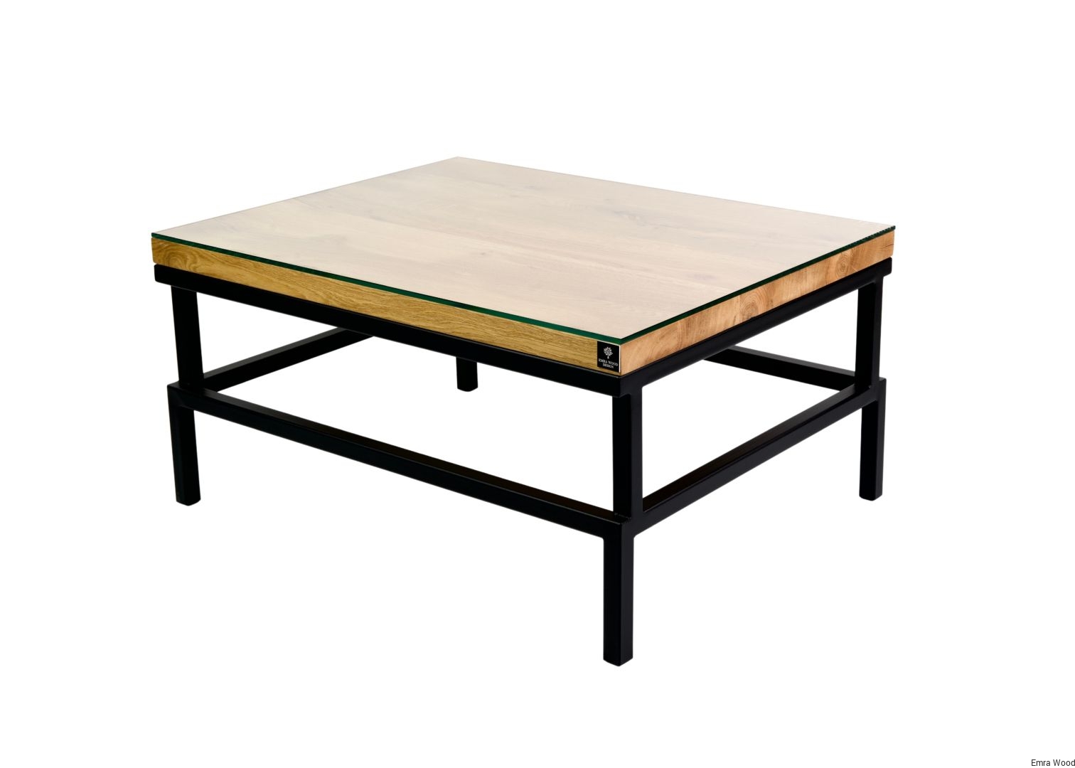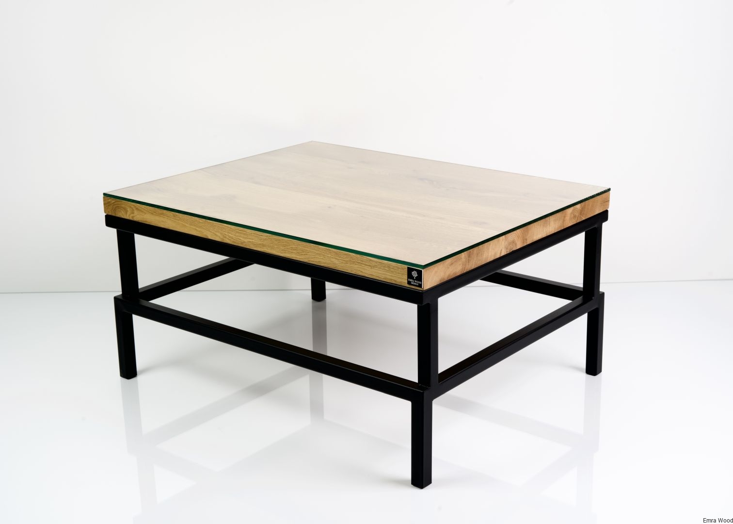 STOLIK KAWOWY / Stelaż Stal Czarna Malowana Proszkowo / Blat Lite Drewno DĄB z Szybą model STK-65