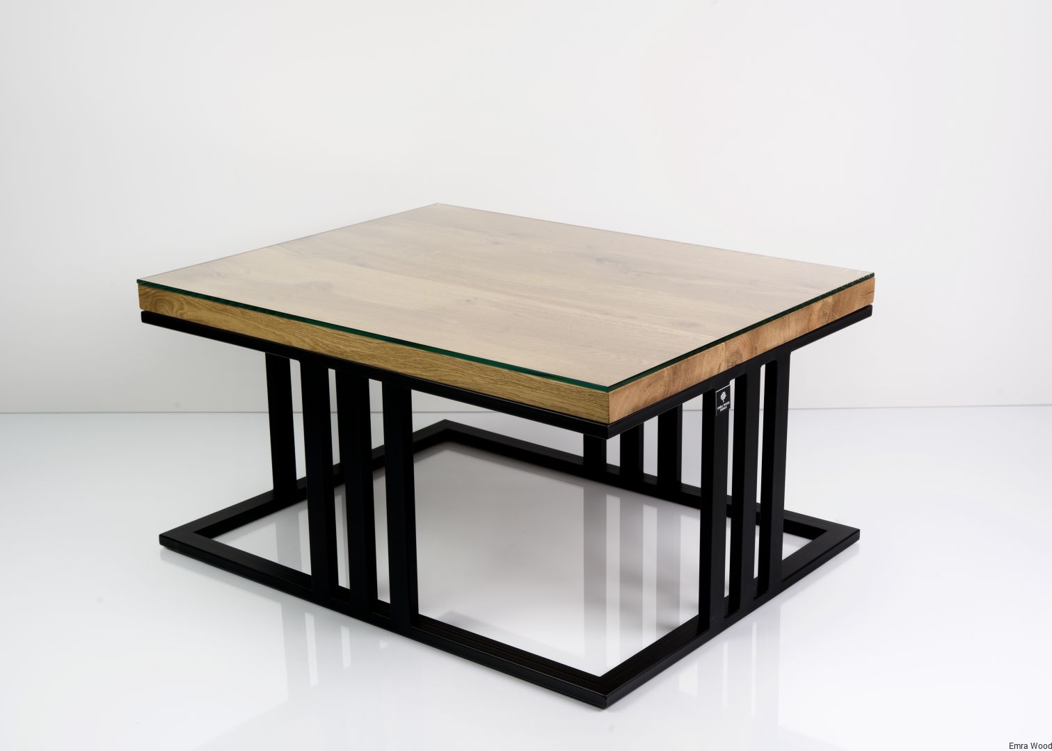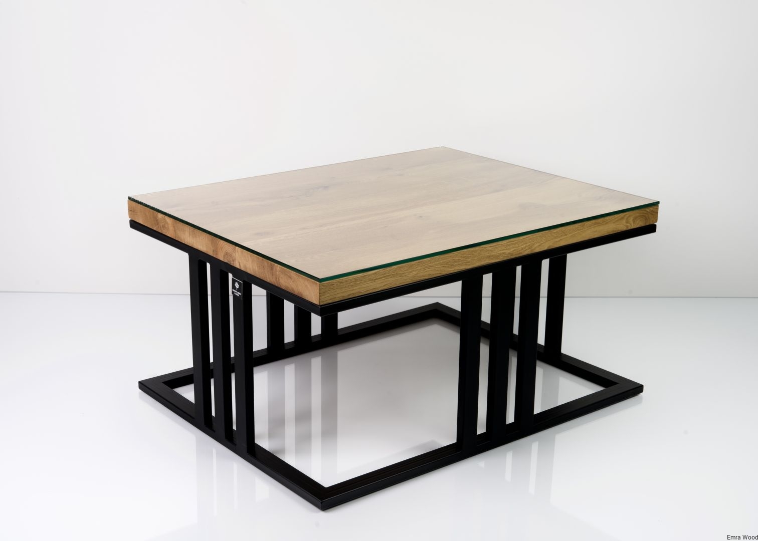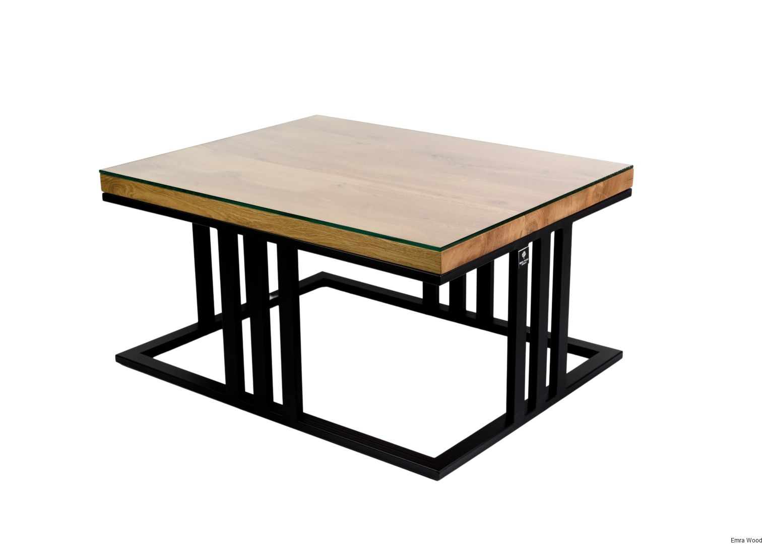 STOLIK KAWOWY / Stelaż Stal Czarna Malowana Proszkowo / Blat Lite Drewno DĄB z Szybą model STK-66