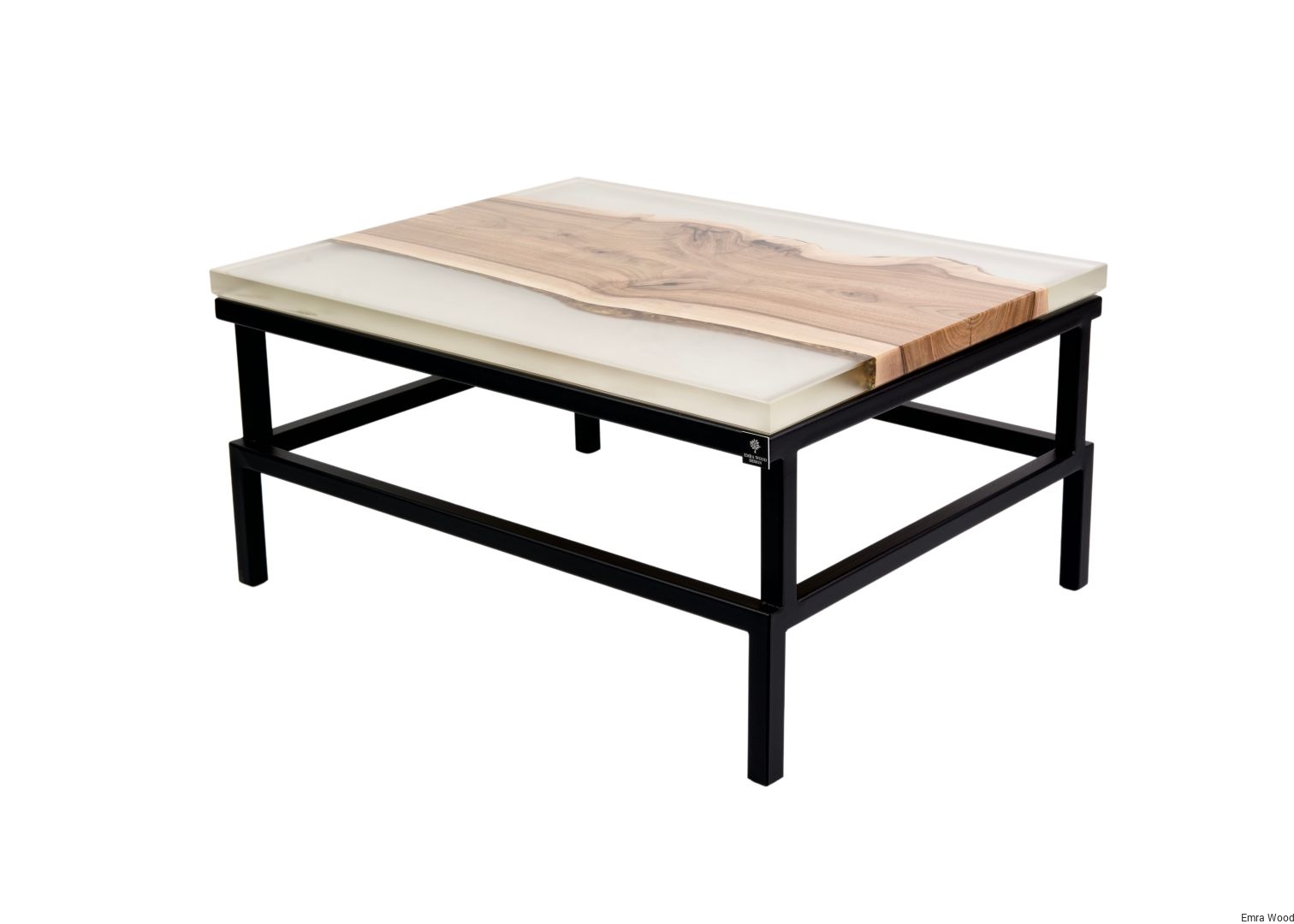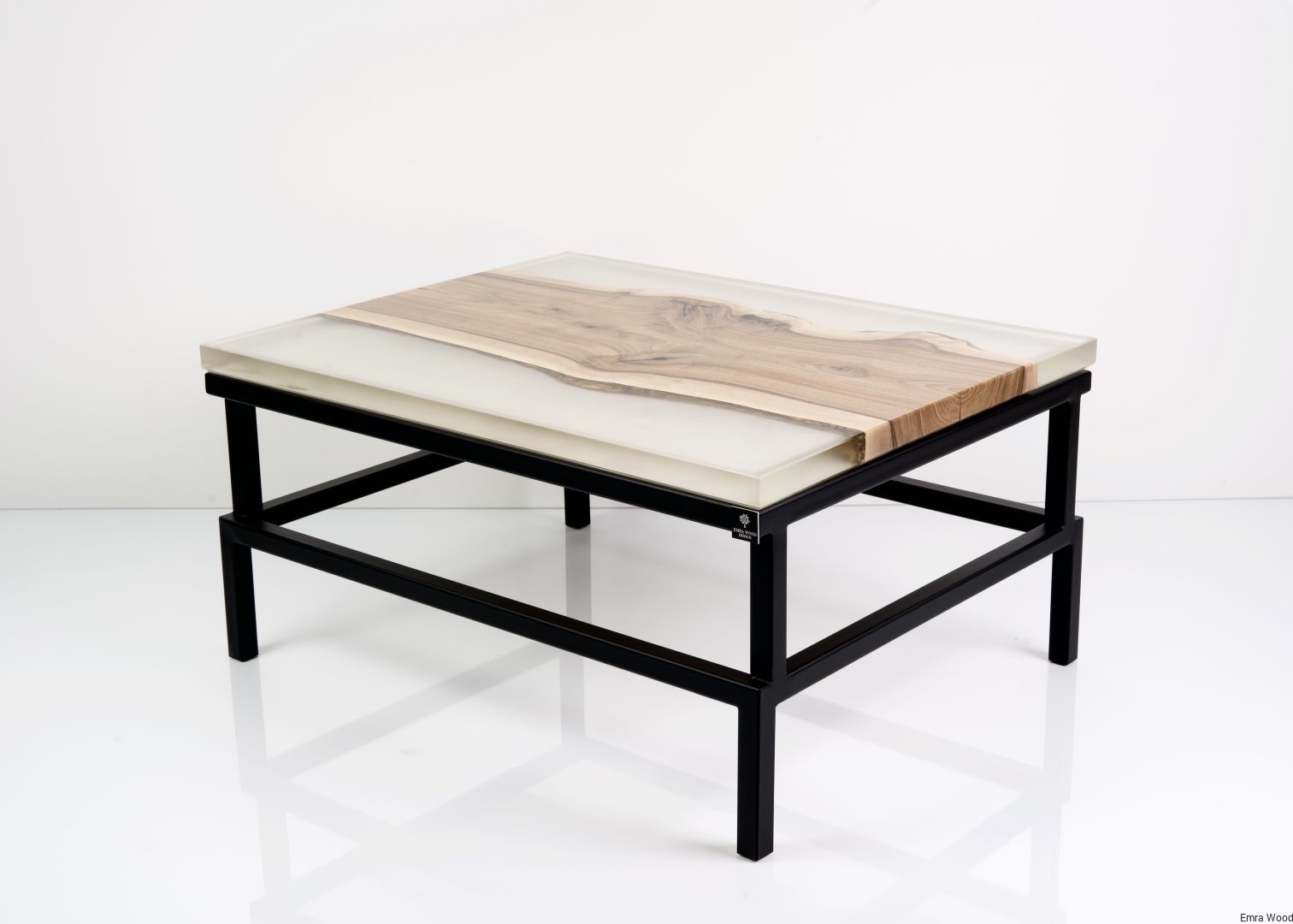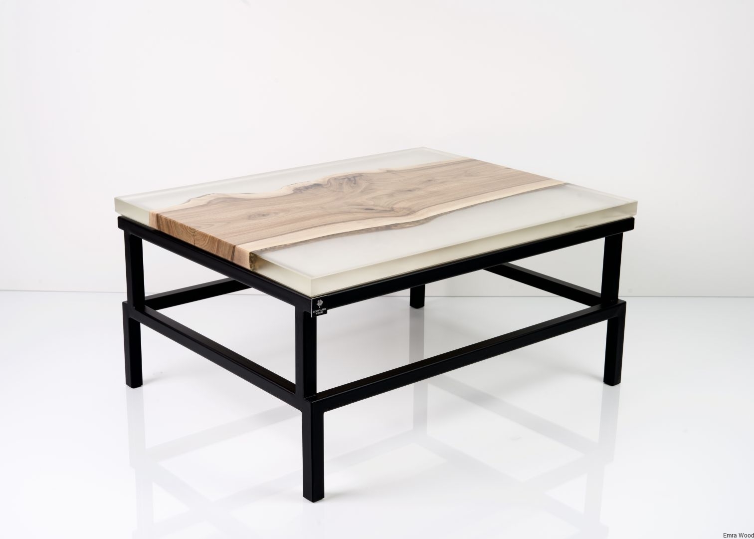 STOLIK KAWOWY / Stelaż Stal Czarna Malowana Proszkowo / Blat Lite Drewno DĄB z Żywicą model STK-77