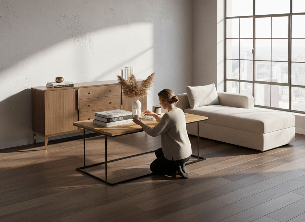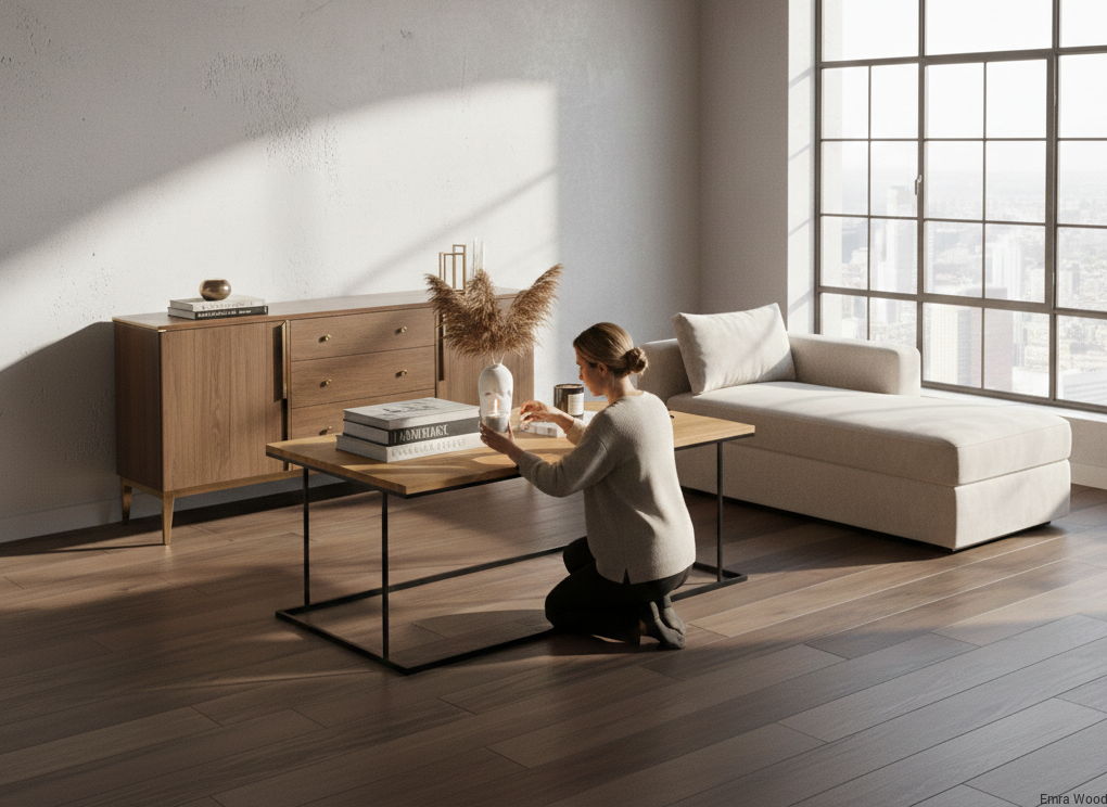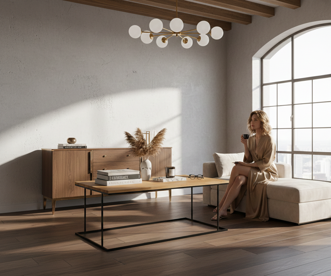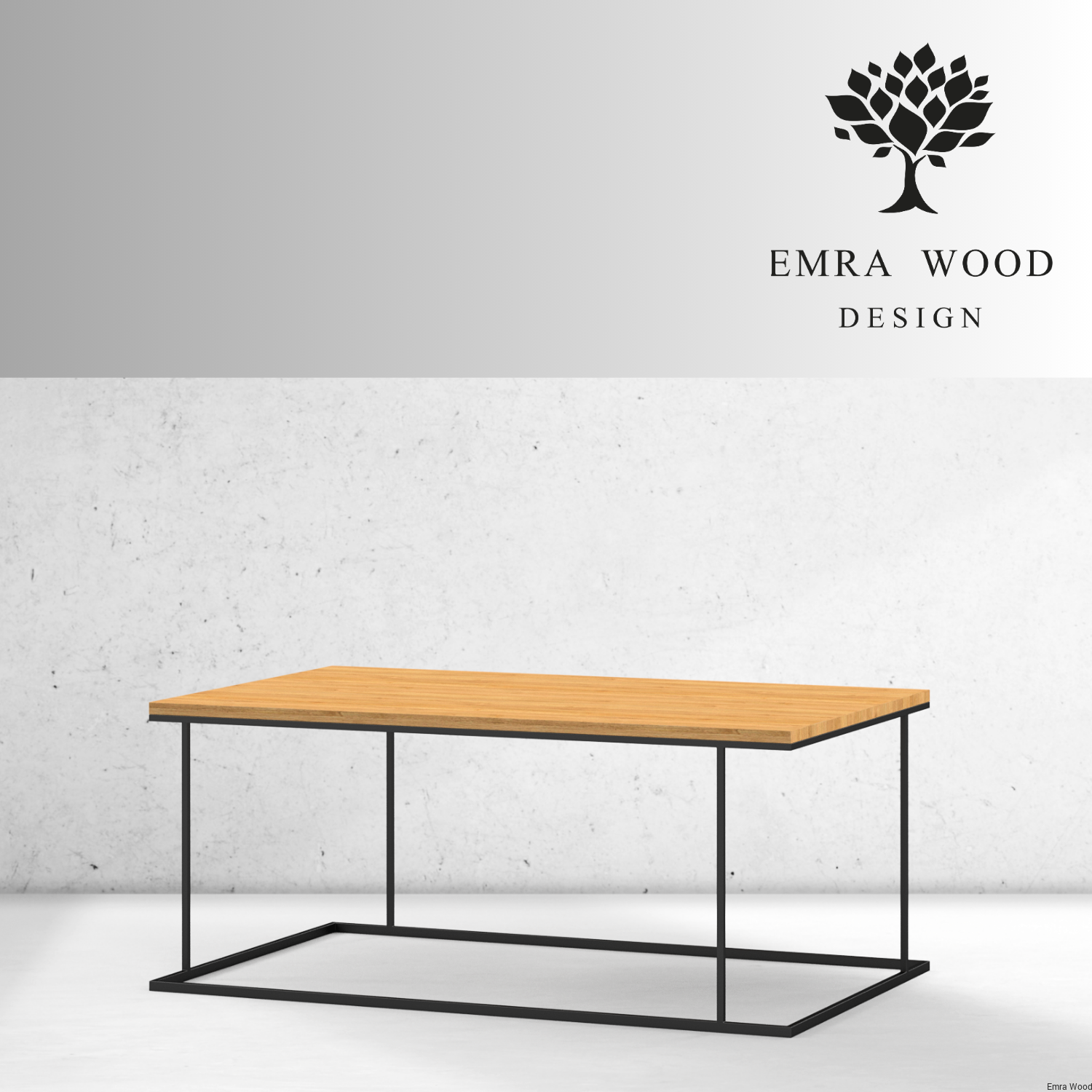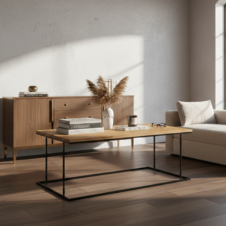 STOLIK KAWOWY / Stelaż Stal Czarna Malowana Proszkowo / Blat Lite Drewno DĄB model STK-941