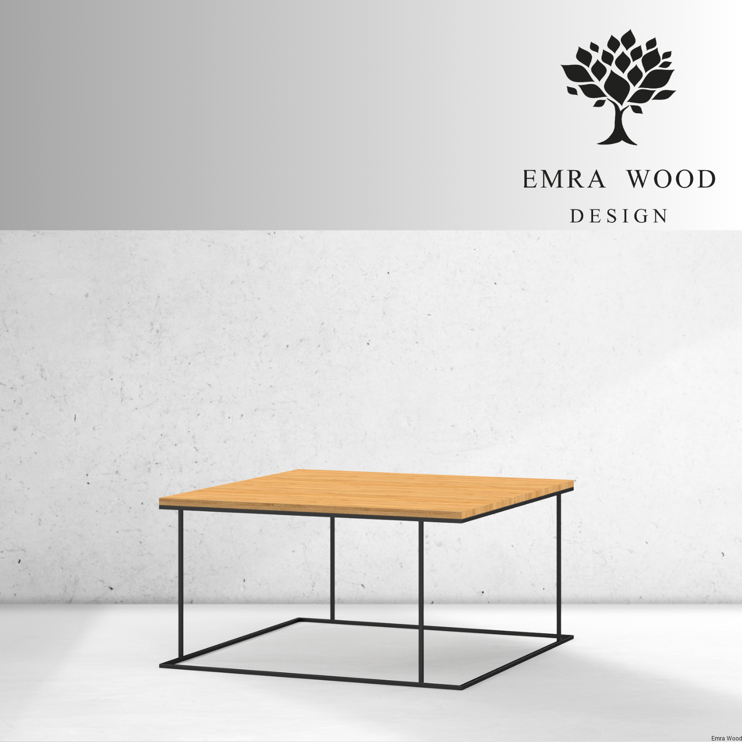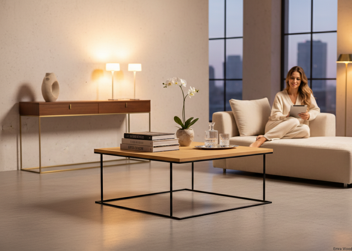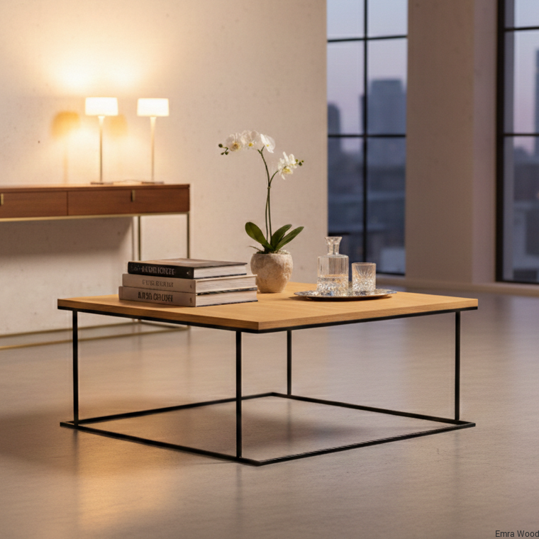 STOLIK KAWOWY / Stelaż Stal Czarna Malowana Proszkowo / Blat Lite Drewno DĄB model STK-942