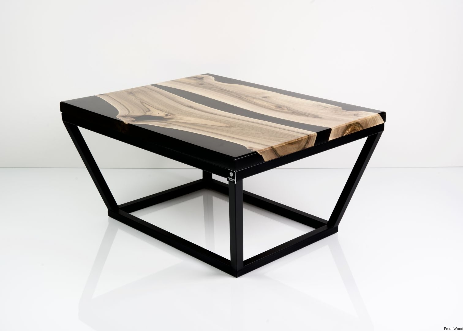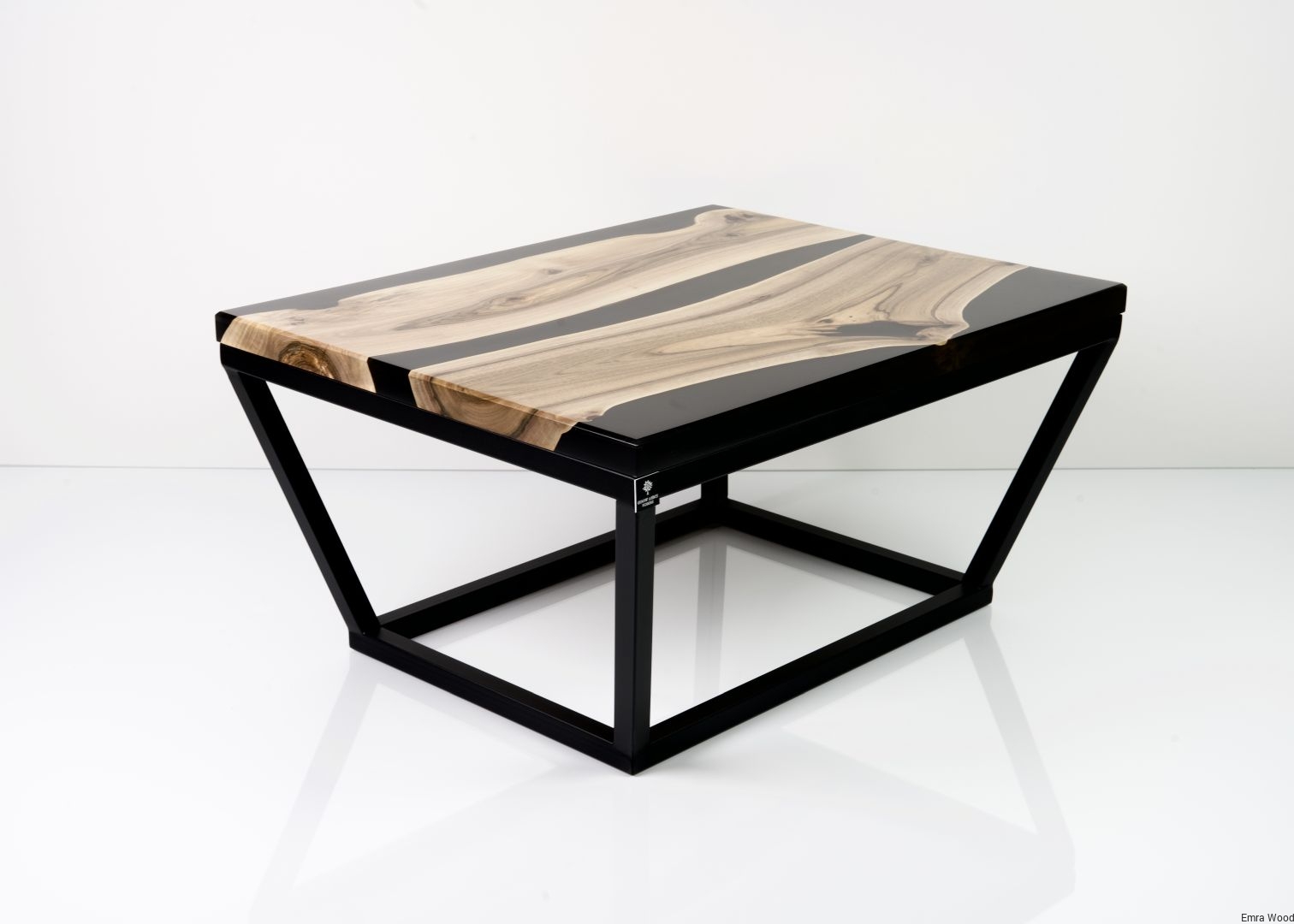 STOLIK KAWOWY / Stelaż Stal Czarna Malowana Proszkowo / Blat Lite Drewno DĄB z Żywicą model STK-36