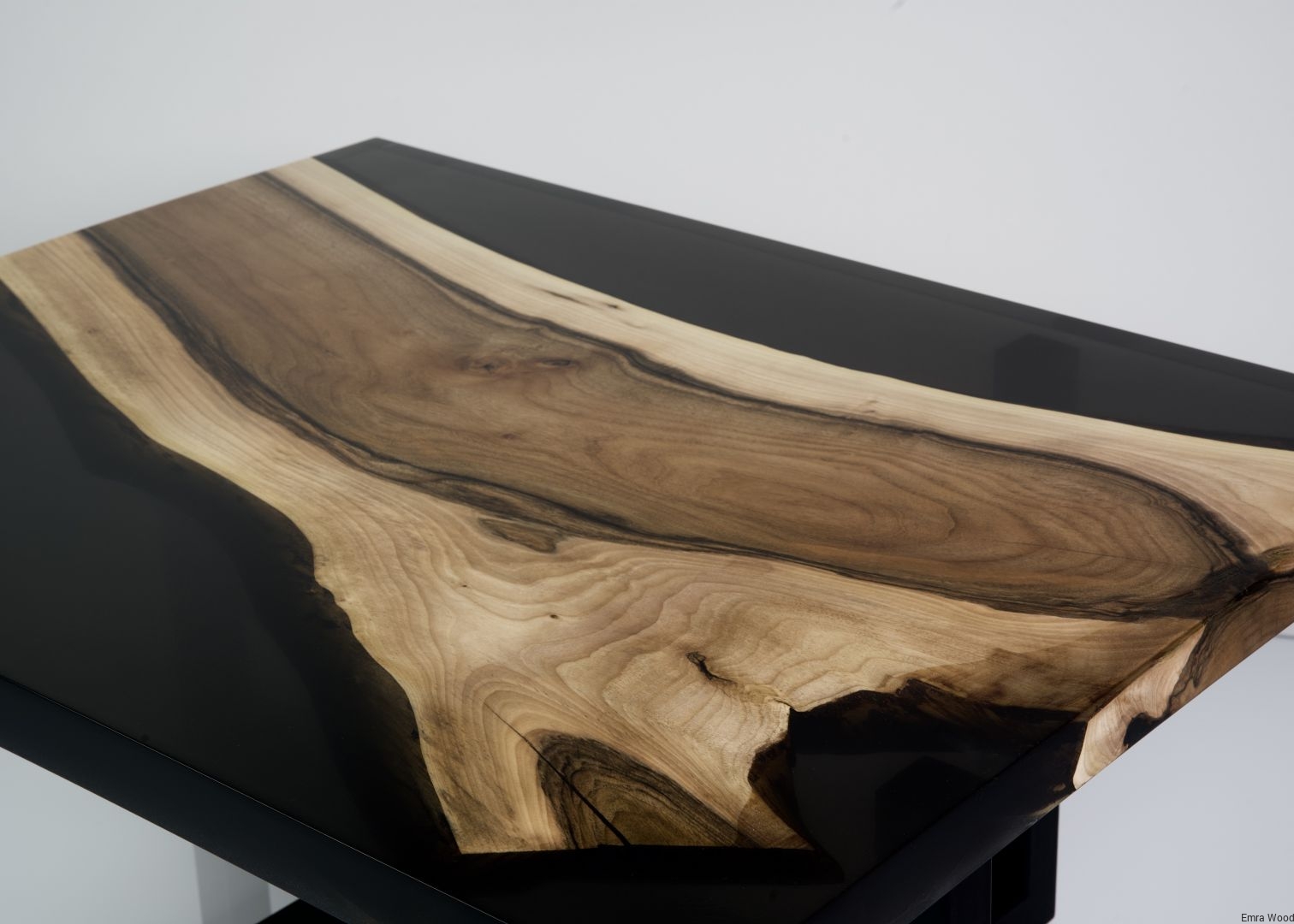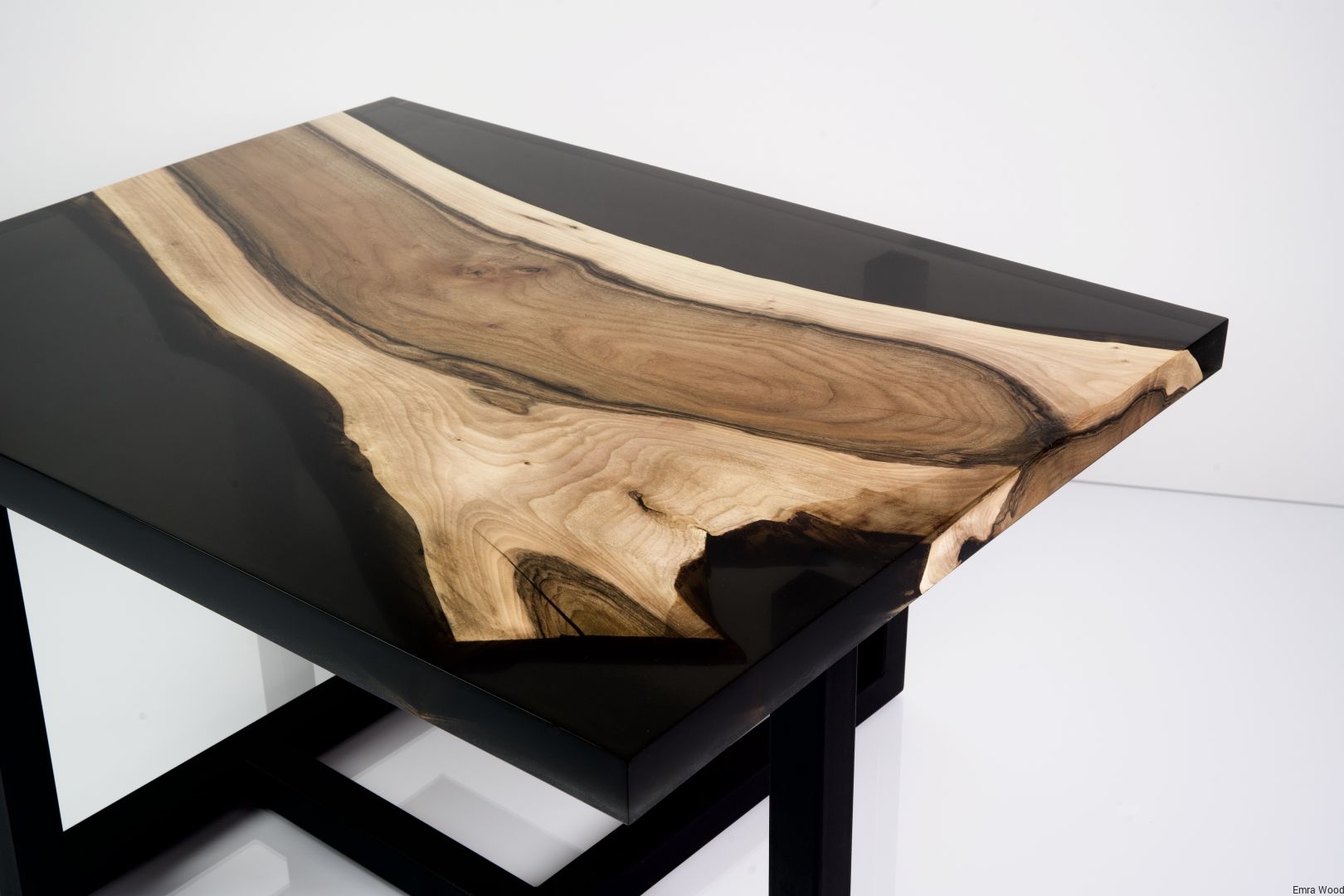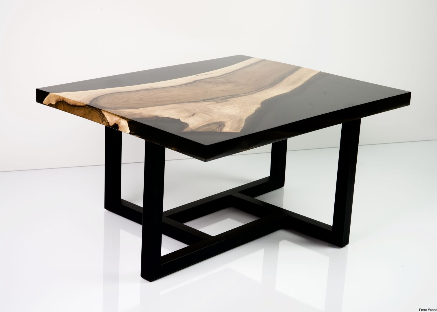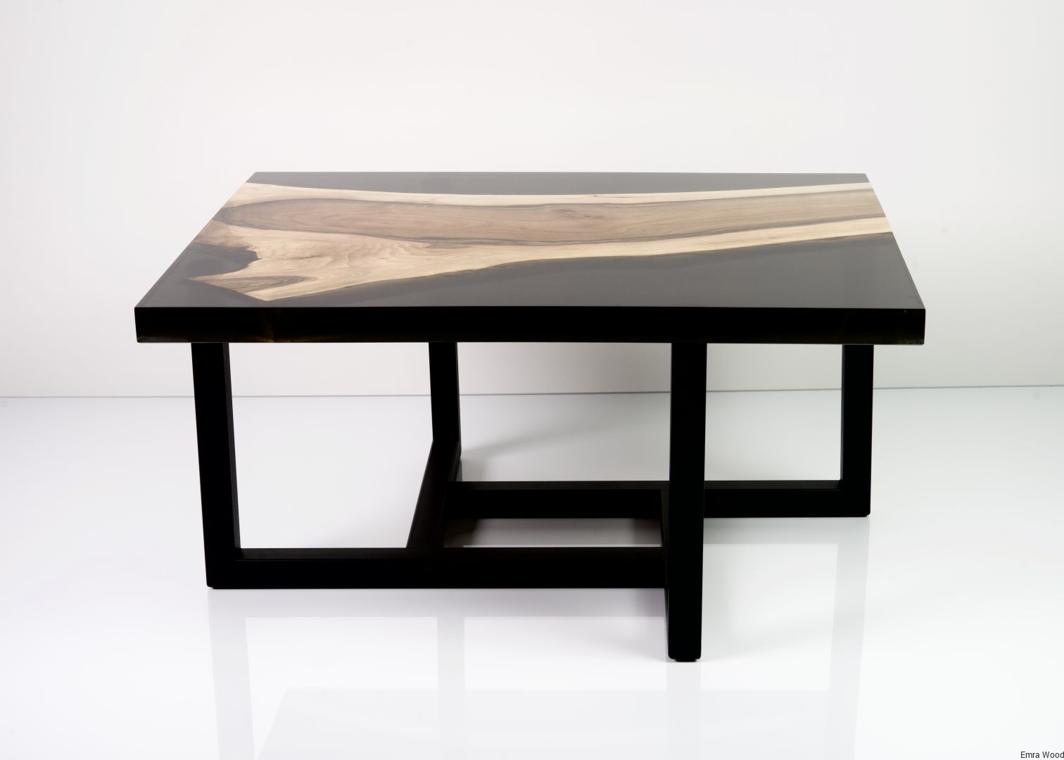 STOLIK KAWOWY / Stelaż Stal Czarna Malowana Proszkowo / Blat Lite Drewno DĄB z Żywicą model STK-6