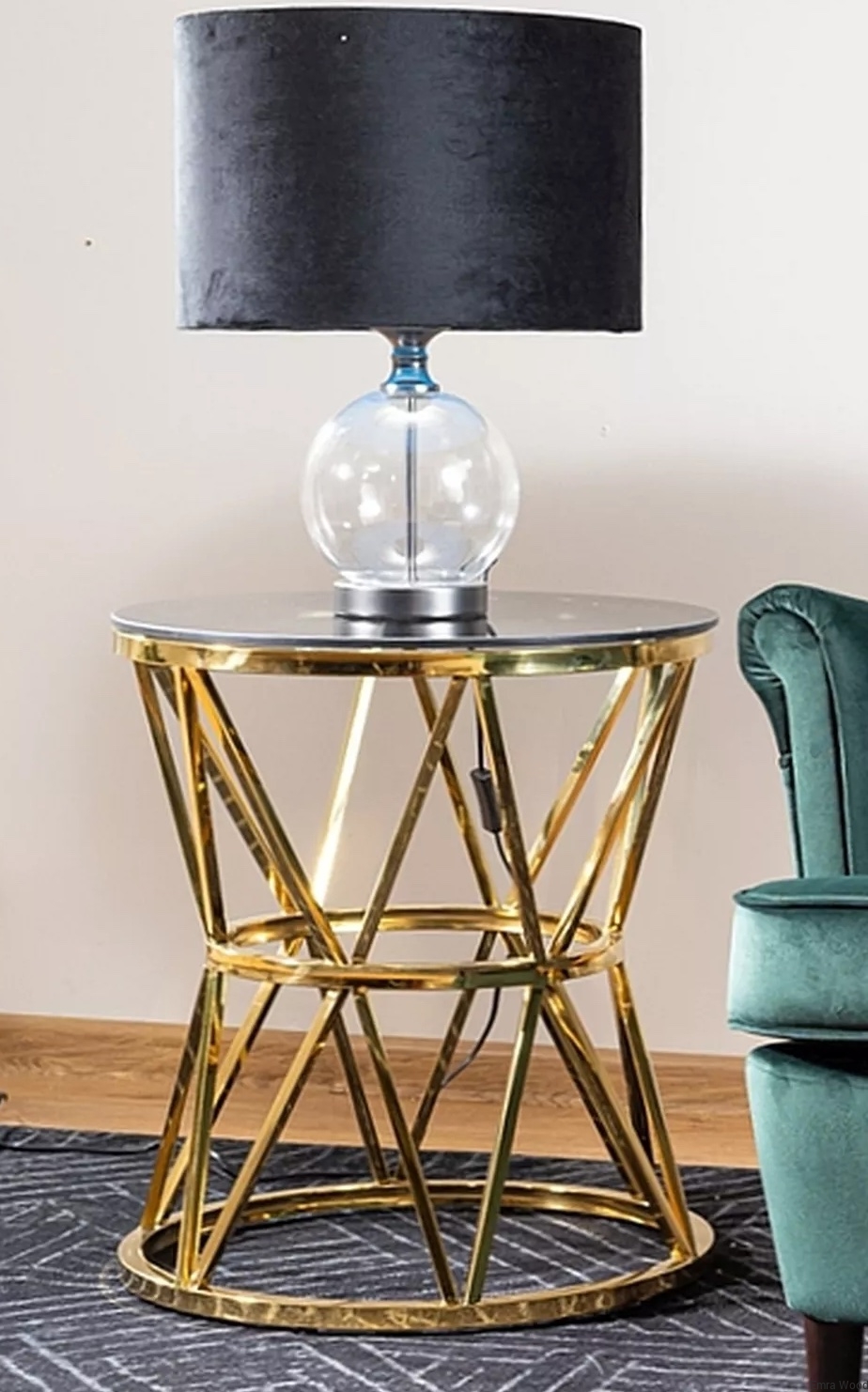 Stolik Kawowy Taurus Czarno Złoty  Blat - Szyba Hartowana Czarna