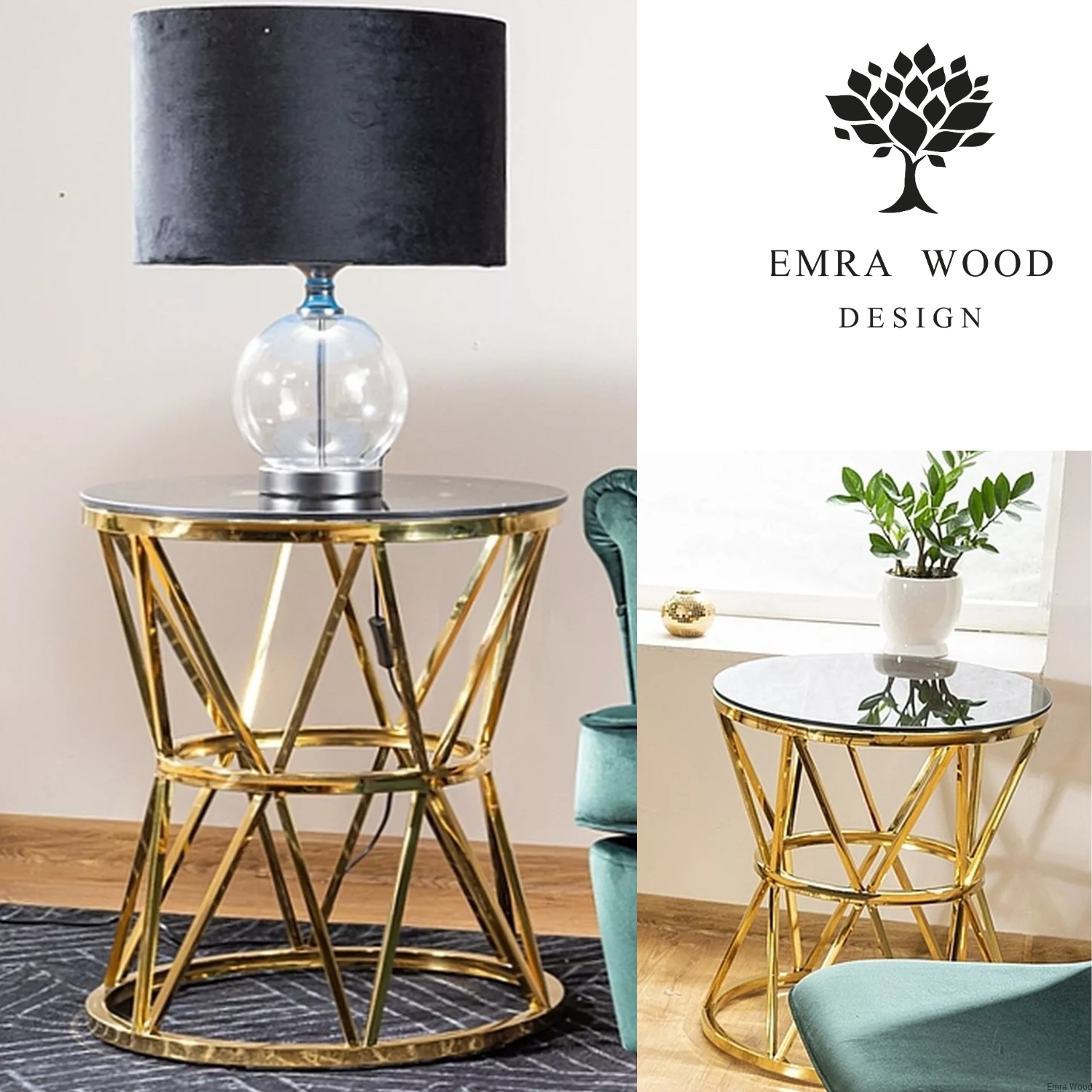 Stolik Kawowy Seti Złoto Szczotkowane Blat - Szyba Hartowana Czarna