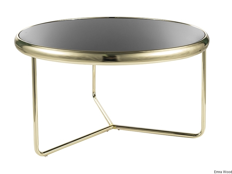 Stolik Kawowy Seti Złoto Szczotkowane Blat - Szyba Hartowana Czarna