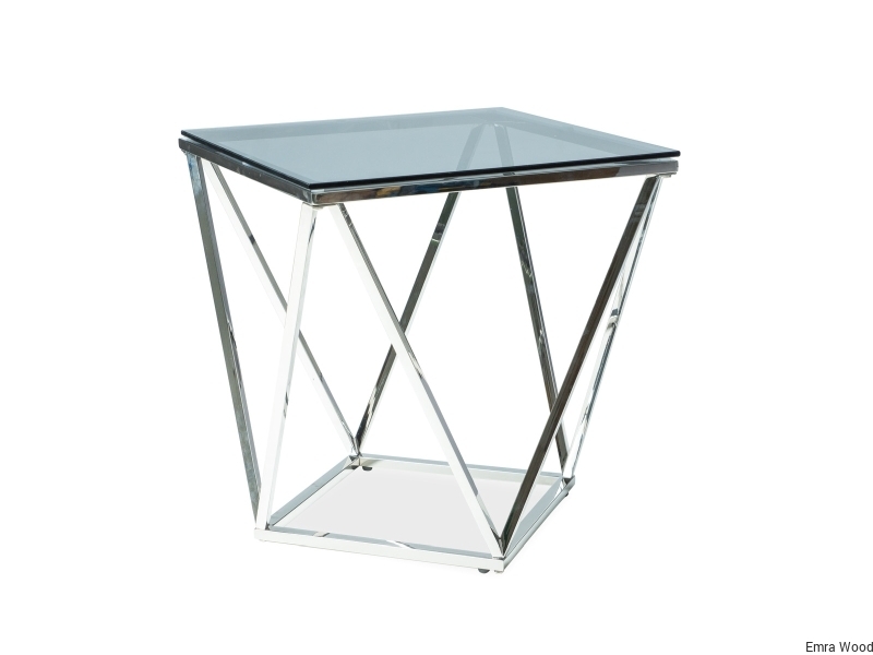 Ława, blat: szkło hartowane dymione, stelaż: metal, kolor: chrom.
