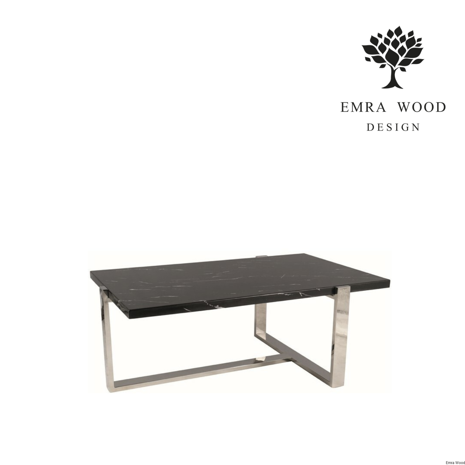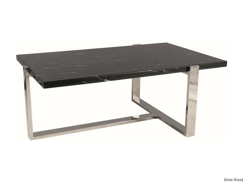 Ława, blat: marmur + okleina, stelaż: stal nierdzewna, kolor: czarny / srebrny.
