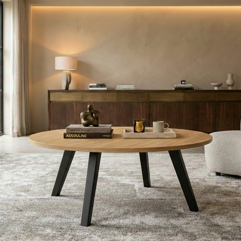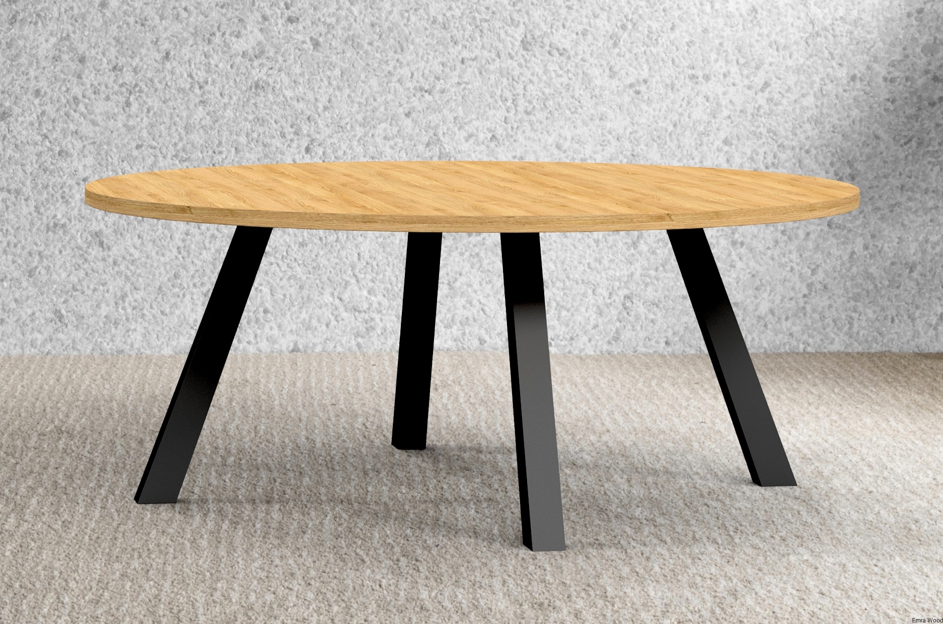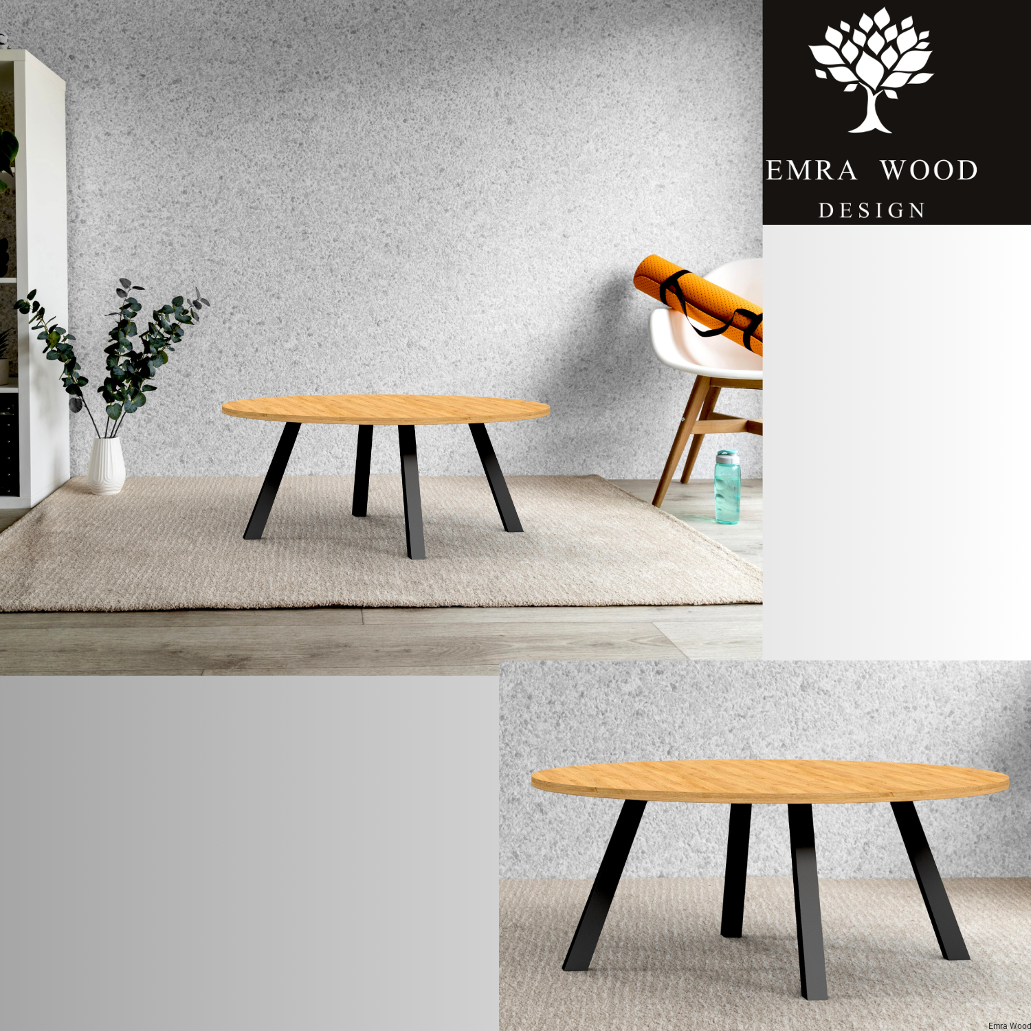 STOLIK KAWOWY wykonany na zdjęciu z drewna dębowego /  kolor naturalny lakier / noga czarna metalowa  model STK-900