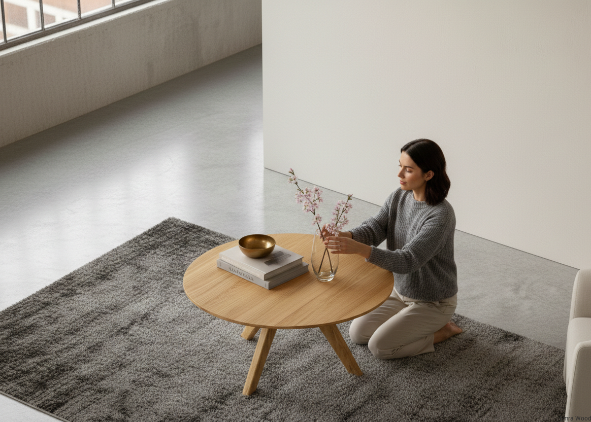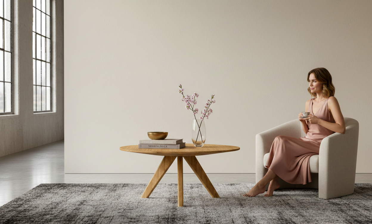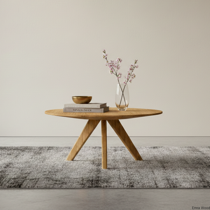 Stolik STK-908 to nowoczesny  okrągły stolik kawowy wykonany z litego drewna dębowego lub jesionowego , który wkomponuje się w każde wnętrze.