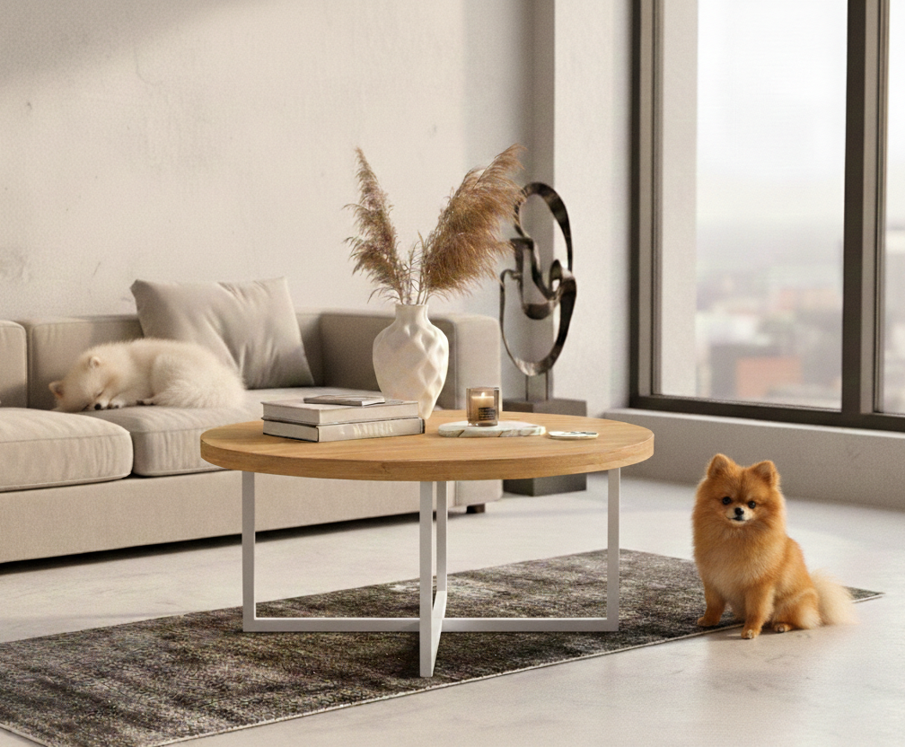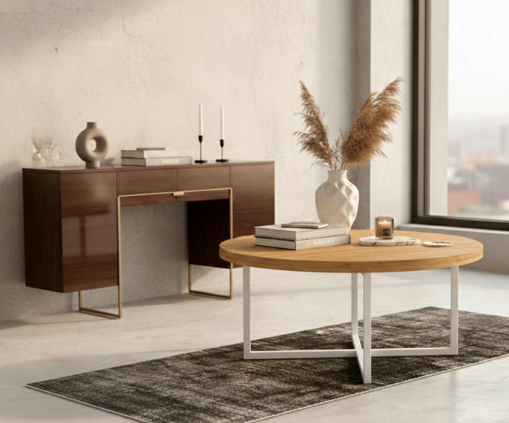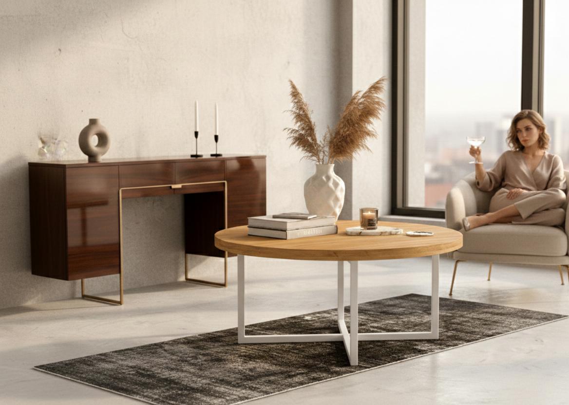STOLIK KAWOWY z Drewna Litego Dębowego Blat Biały Płyta MDF  STK-939