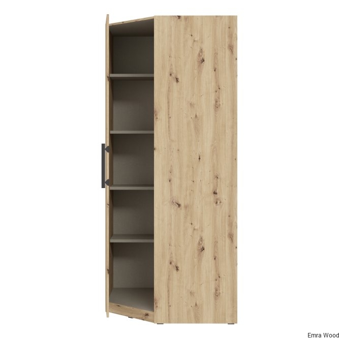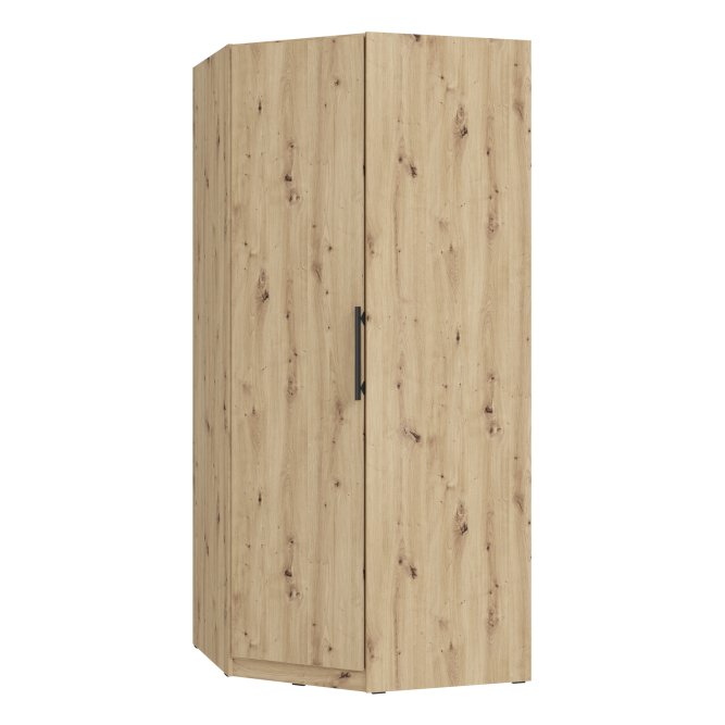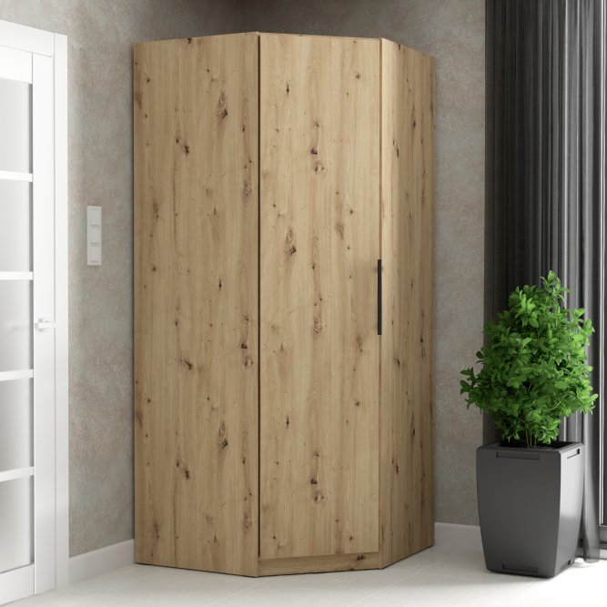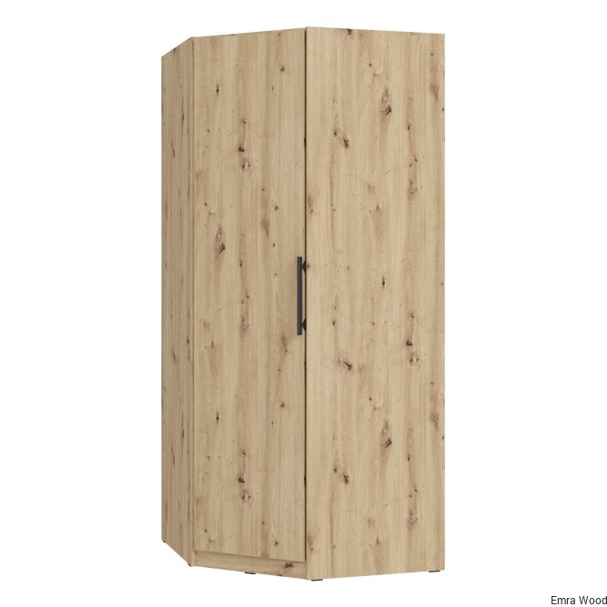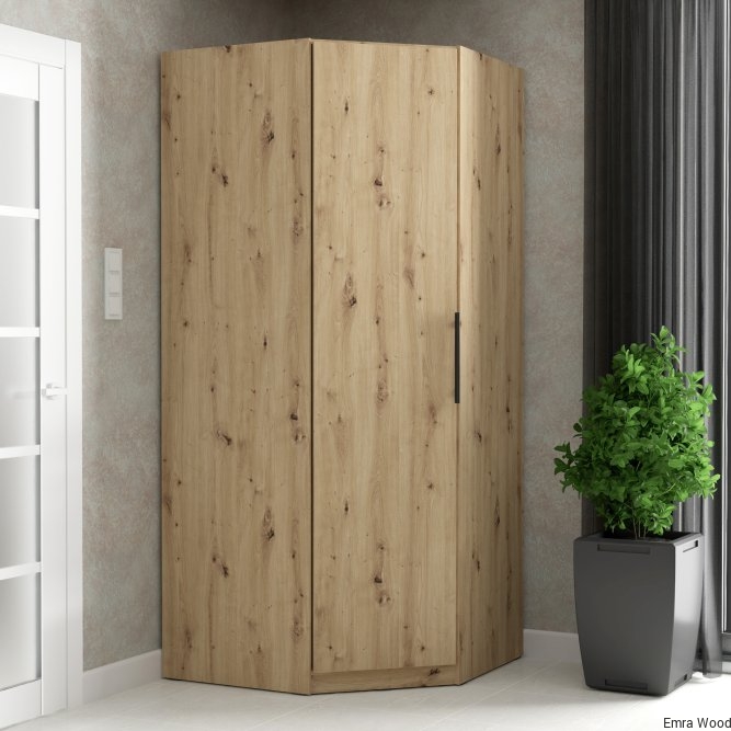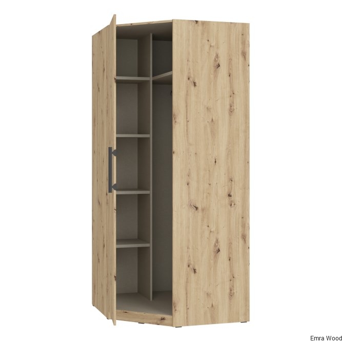 Narożna szafa to niezwykle funkcjonalny element wystroju, który pozwoli na optymalne wykorzystanie i zorganizowanie przestrzeni. Wnętrze szafy oferuje dużo miejsca do komfortowego przechowywania ubrań, pościeli oraz innych rzeczy osobistych. Dzięki eleganckiemu wyglądowi oraz ciepłej kolorystyce szafa urozmaici wygląd pomieszczenia i doda mu przytulnego charakteru.
