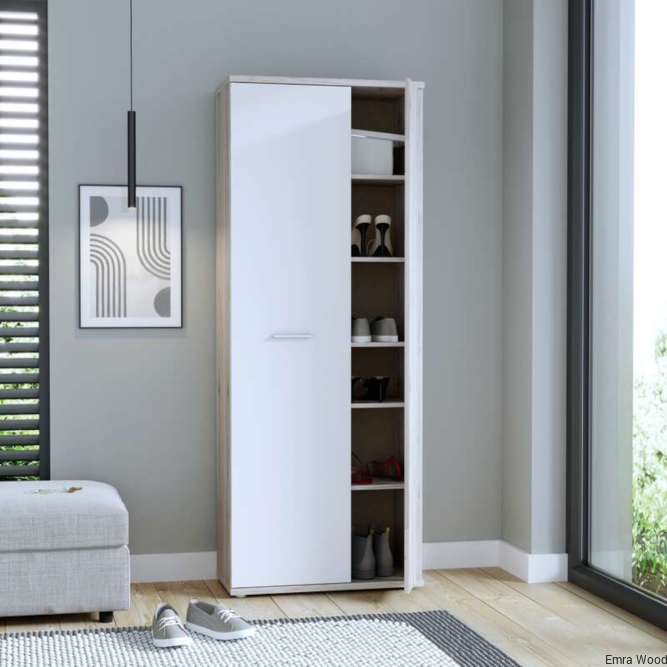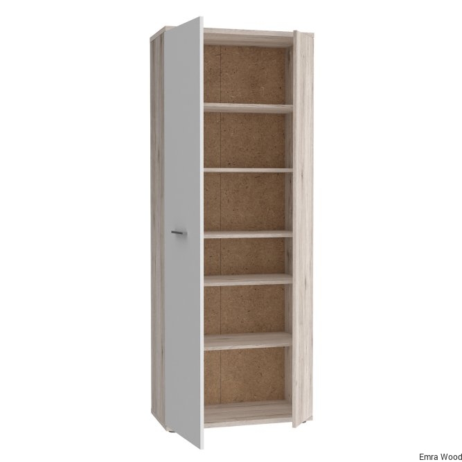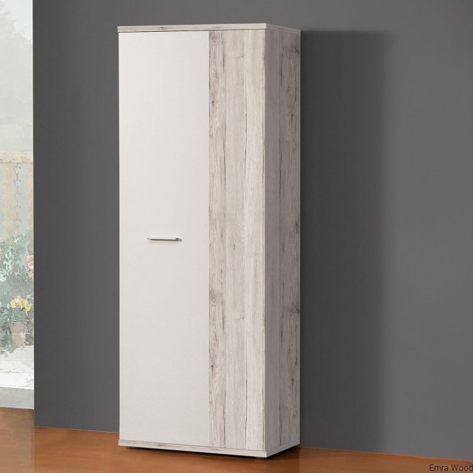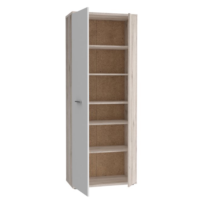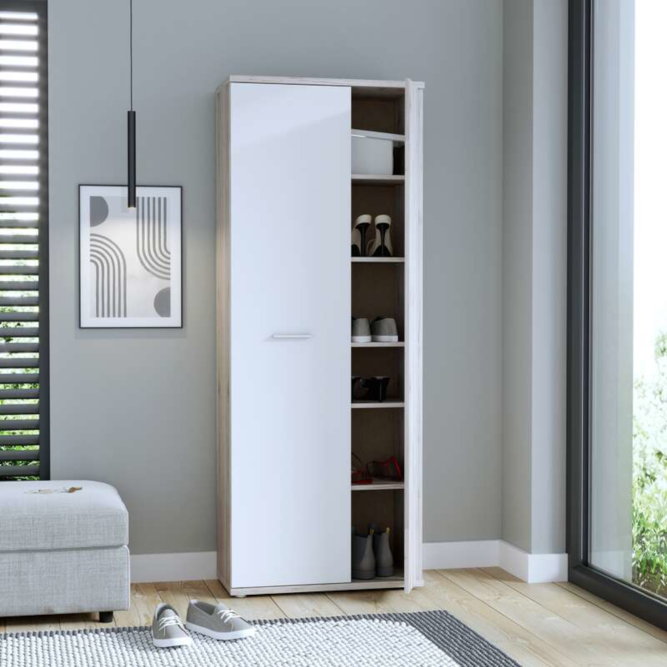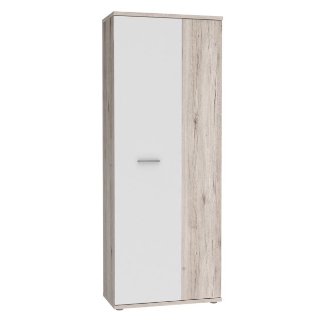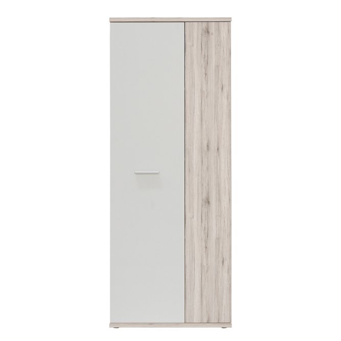 Szafa na buty jest funkcjonalnym meblem w każdym stylowo urządzonym przedpokoju. Wykonana w połączeniu dwóch jasnych dekorów- Bieli i Dębu Piaskowego odświeży każde wnętrze, nada pomieszczeniu elegancji i świetnie dopasuje się do każdej aranżacji wnętrz.