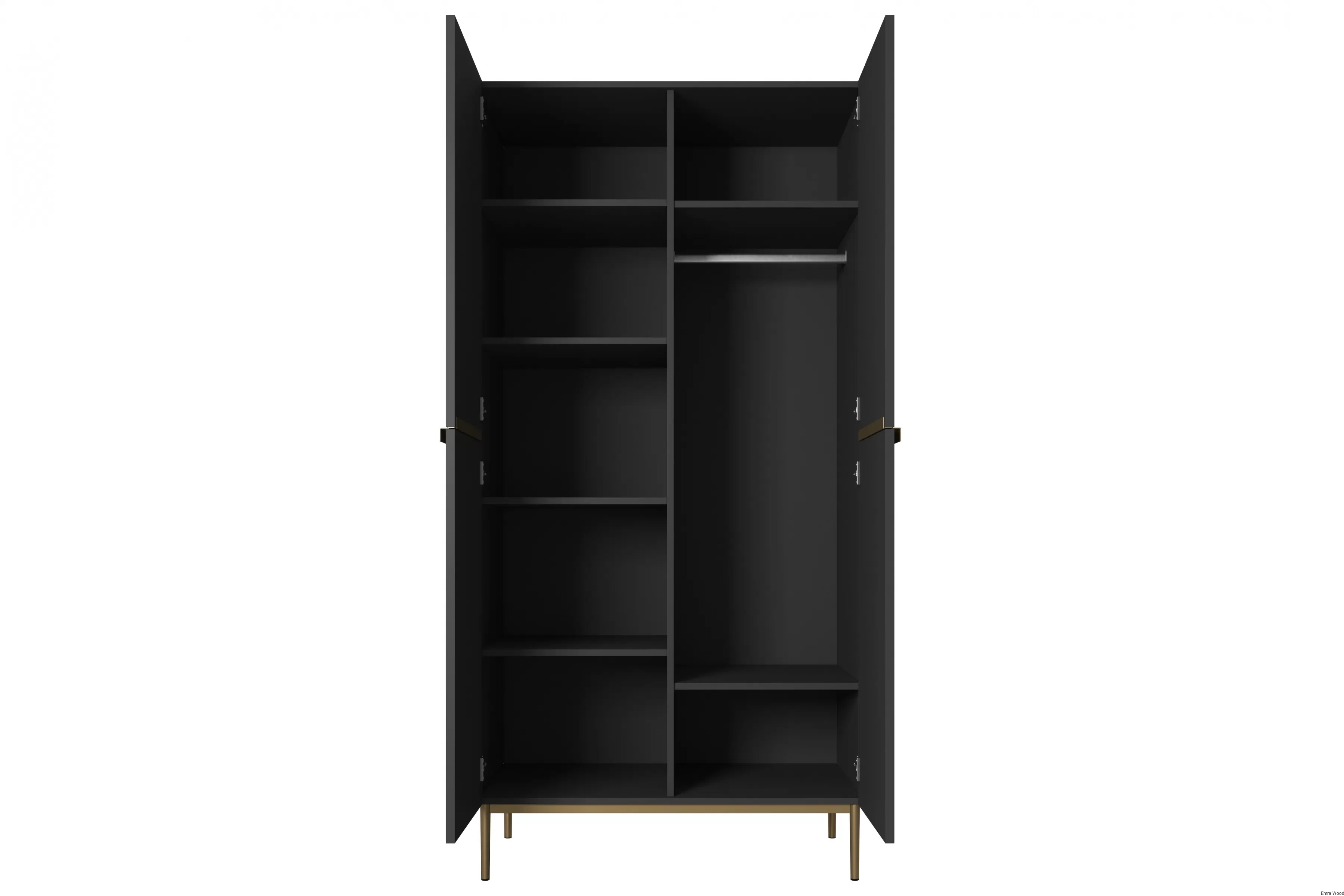 Szukasz eleganckiej szafy, która doda szyku Twojemu wnętrzu? Poznaj produkt Szafa Nicole 100 cm z półkami - czarny mat / złote nóżki.