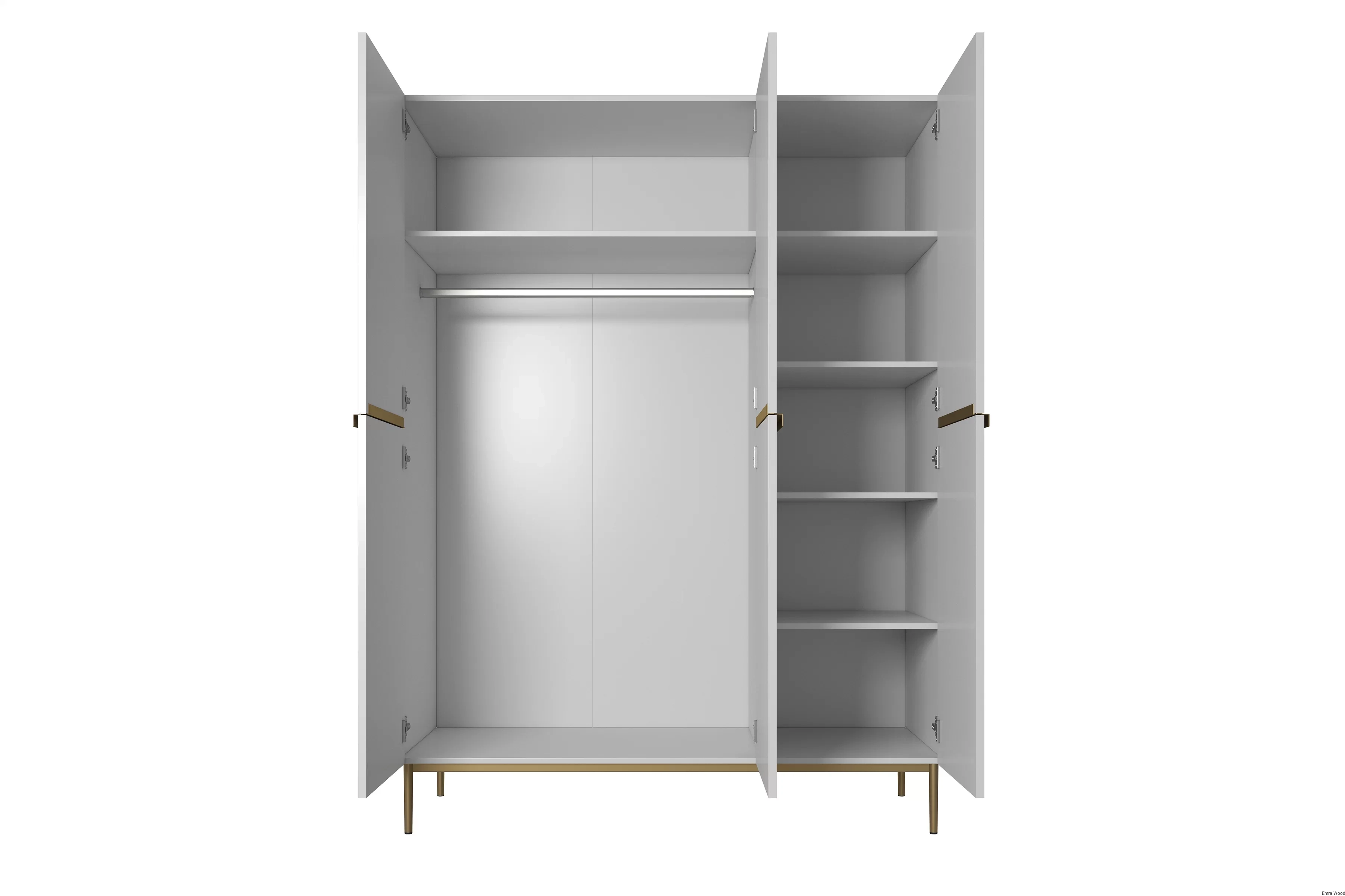 Czy szukasz stylowej, funkcjonalnej i przestronnej szafy, która doda klasy Twojemu wnętrzu? Nasza Szafa Nicole na metalowych nogach 150 cm - biały mat / złote nóżki, to wszystko, czego potrzebujesz.