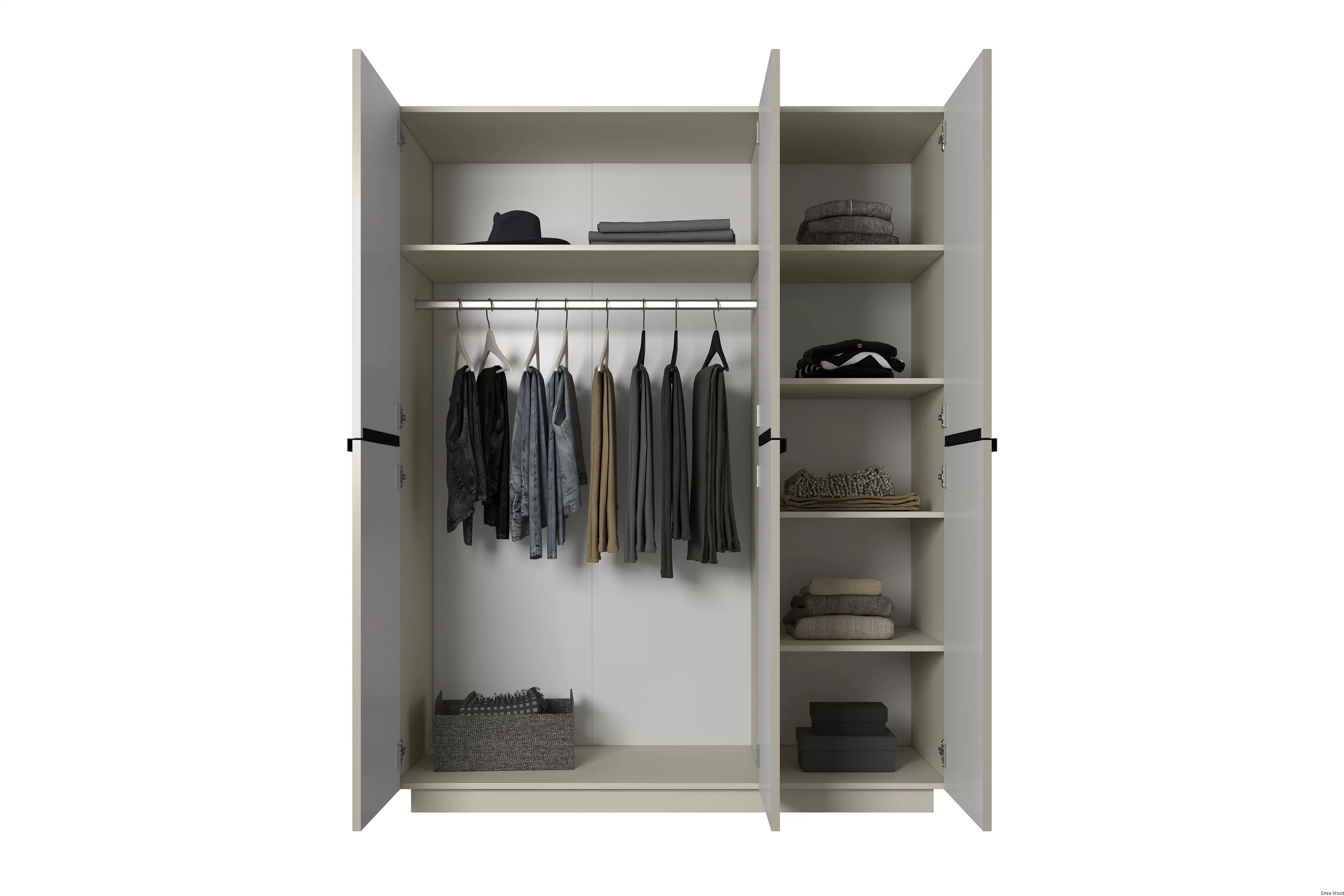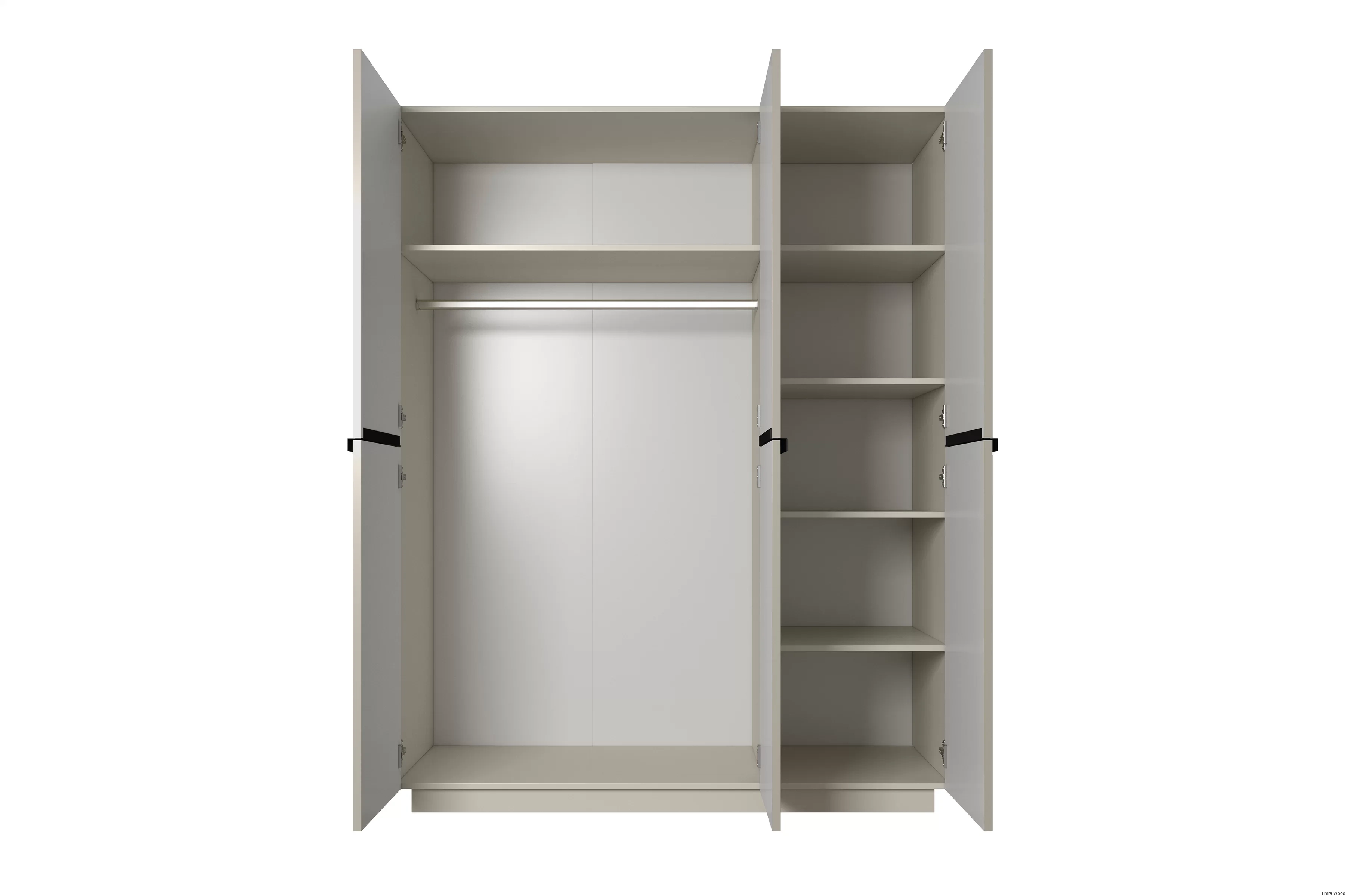 Wyobraź sobie, jak ta szafa o kolorze kaszmiru dodaje ciepła i elegancji Twojemu wnętrzu. Jej nowoczesny, ale jednocześnie ponadczasowy design sprawia, że będzie pasować do wielu stylów aranżacji. Czarne, metalowe uchwyty dodają jej charakteru i są doskonałym kontrastem dla jasnej kolorystyki.