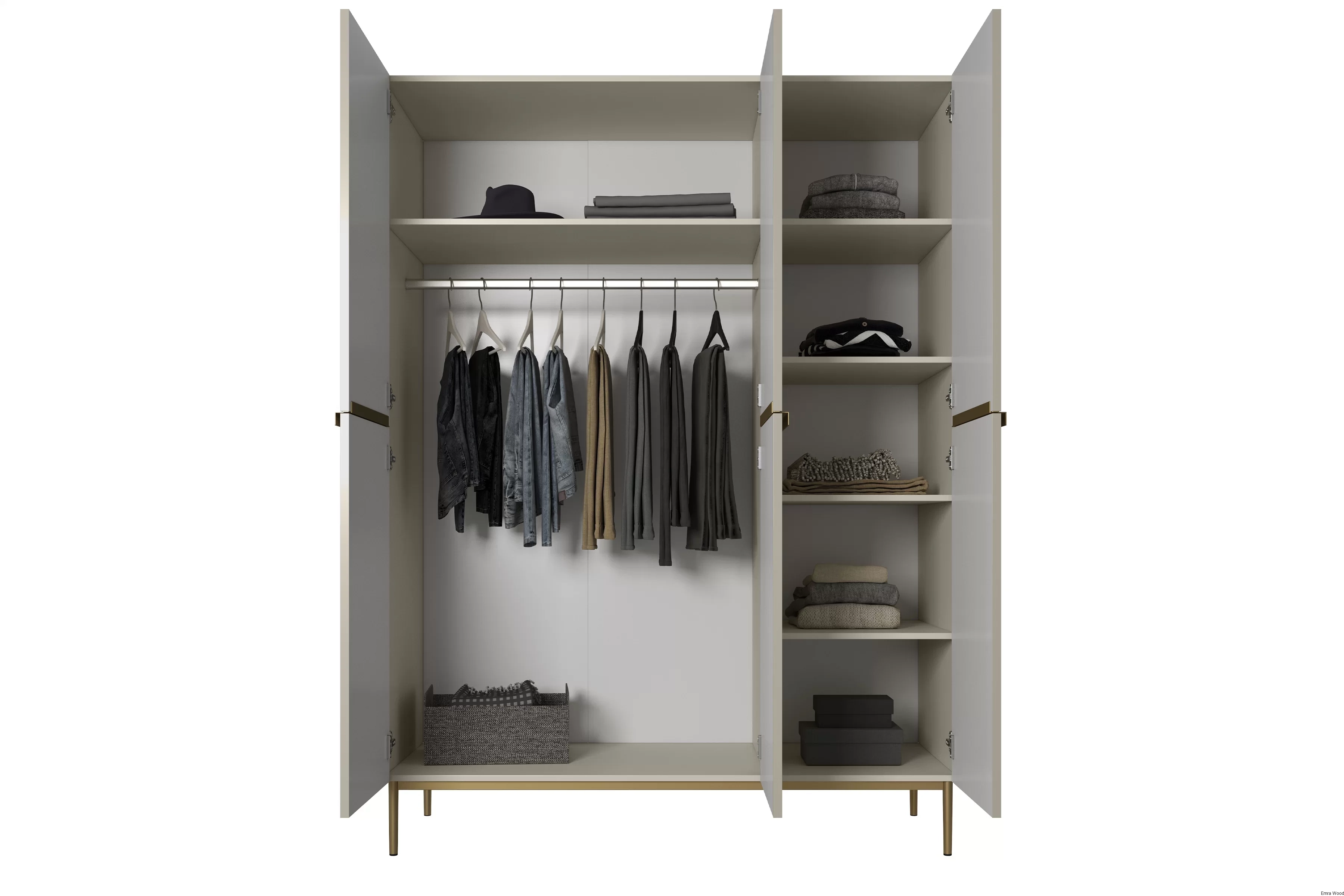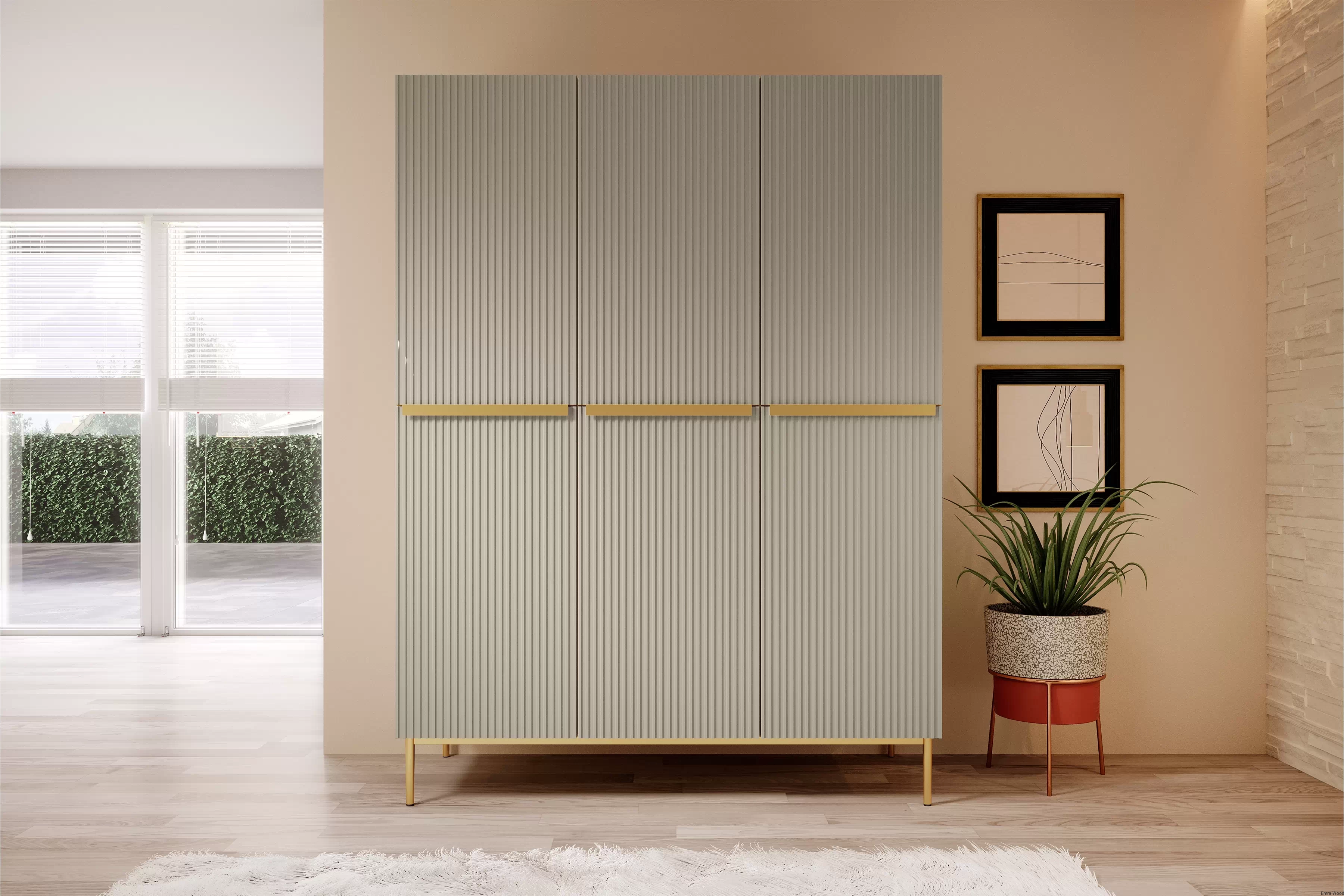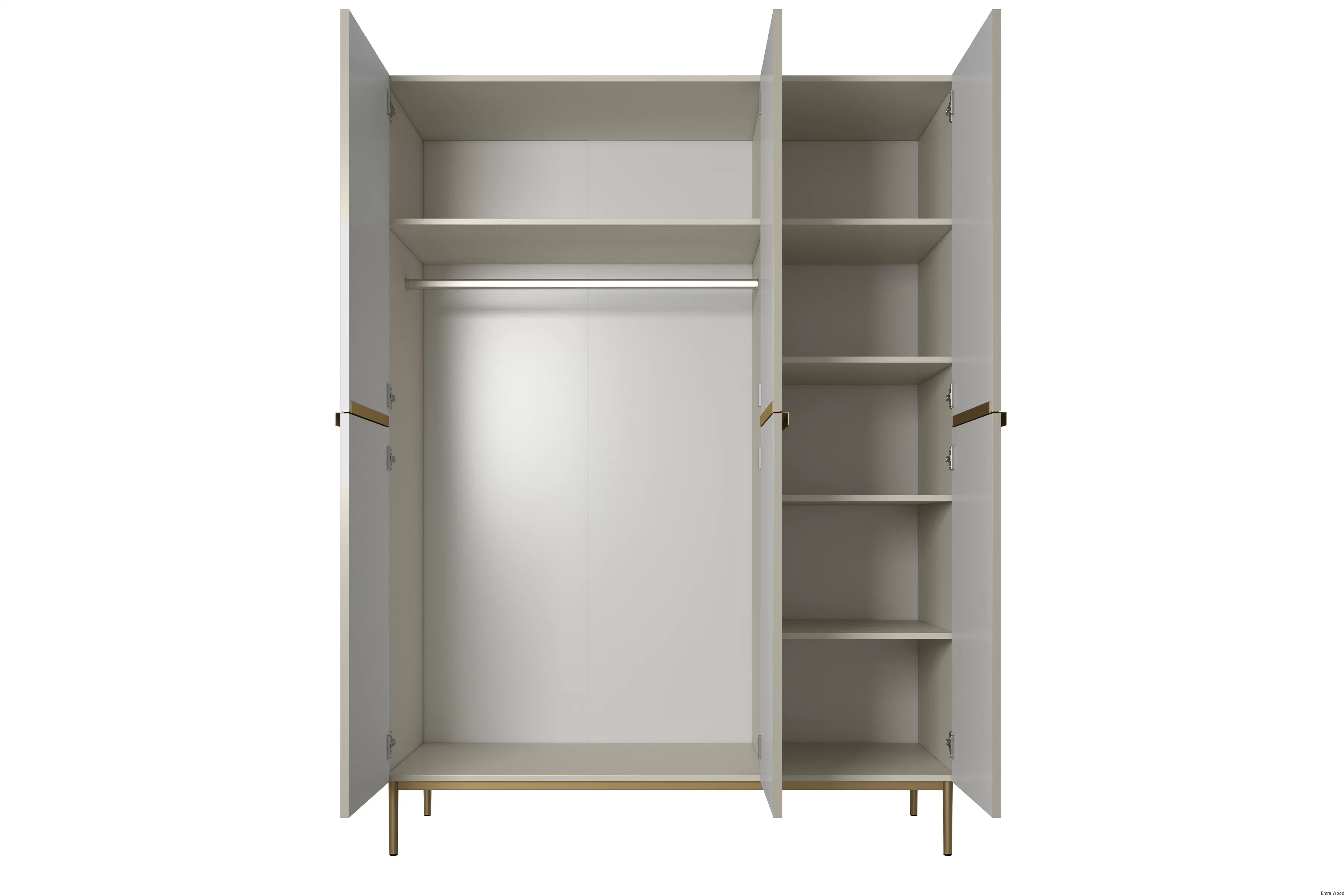 Czy marzyłeś o szafie, która nie tylko pomieści wszystkie Twoje rzeczy, ale też będzie wyglądać stylowo i elegancko? Szafa trzydrzwiowa Nicole na metalowych nogach 150 cm - kaszmir / złote nóżki to to, czego potrzebujesz.