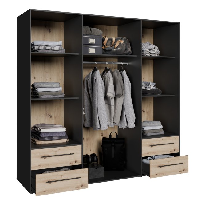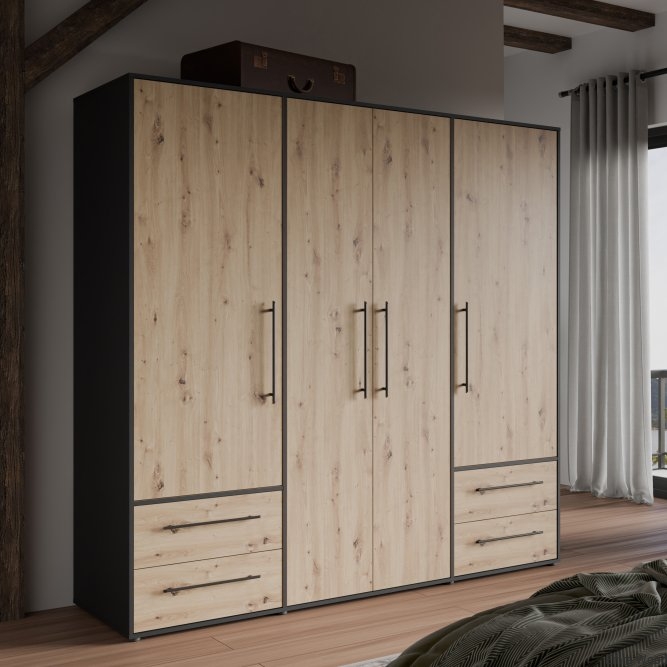 Szafa 210 cm JUPITER będzie funkcjonalnym i wyróżniającym się elementem wystroju Twojego mieszkania. Połącz z innymi meblami z kolekcji, aby stworzyć spójną aranżację wnętrza.