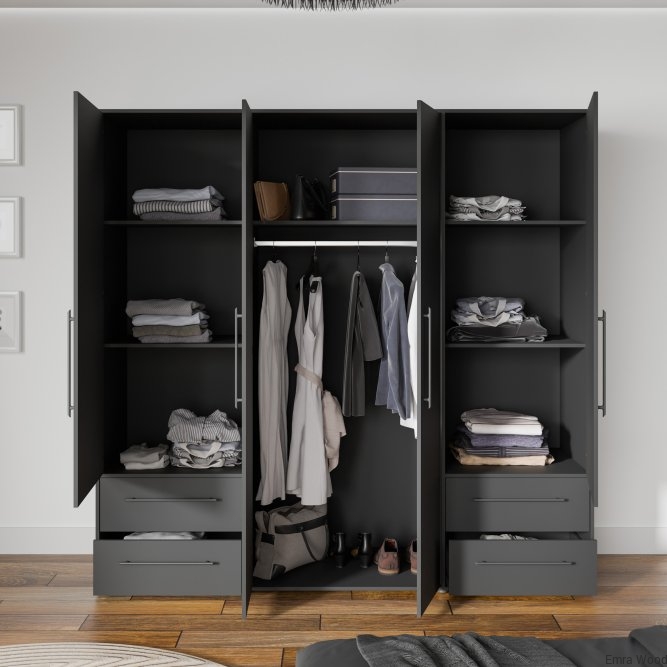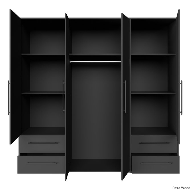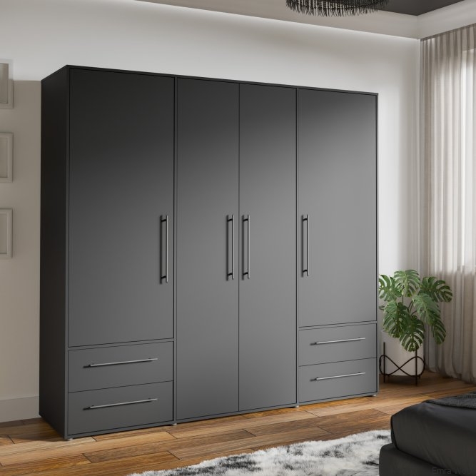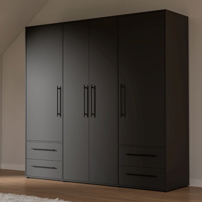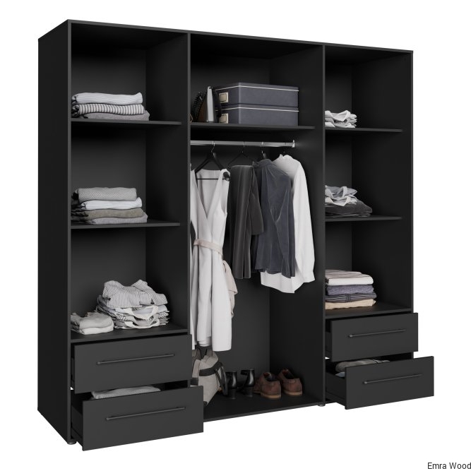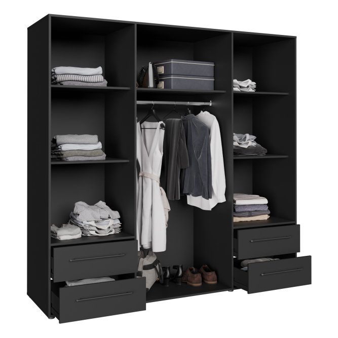 Czarna szafa 210 cm JUPITER będzie funkcjonalnym i wyróżniającym się elementem wystroju Twojego mieszkania. Połącz z innymi meblami z kolekcji, aby stworzyć spójną aranżację wnętrza.