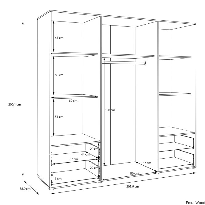 Wymiary: 205.9 x 200.1 x 58.8 cm