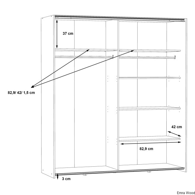 • Konfigurację półek można dostosować podczas montażu szafy