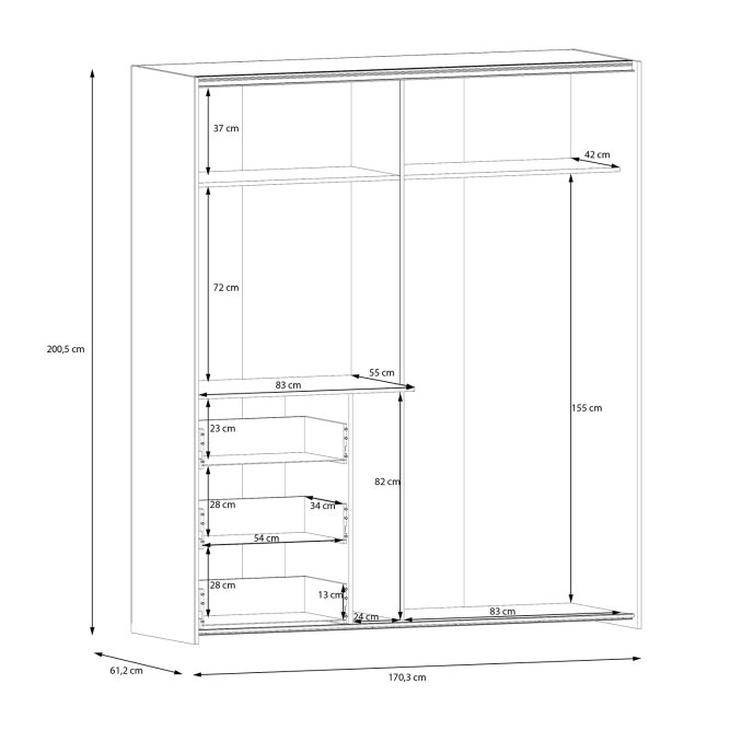 Wymiary: szerokość: 170,3 cm x wysokość: 200,5 cm x głębokość: 61,2 cm